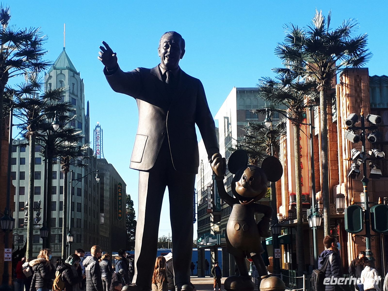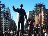 Da ist das große wunderschöne Disney-Hotel, das einen nach dem Eingang in den Disneyland-Park empfängt. Man läuft über die so liebevoll im Detail gestaltete Main Street, eine amerikanische Western-Straße um 1900, wo man gar nicht weiß, wo man zuerst hinschauen soll – zum Rathaus, zum Bahnhof, von dessen Balkon menschengroße „lebendige“ Mickey-Mäuse die Besucher begrüßen, zu den vielen Geschäften und Restaurants, einer Pferde-Straßenbahn oder bis ins FANTASYLAND mit seinem phantasievollen Märchenschloss, einem verzauberten Dornröschenschloss, das auch als Wahrzeichen dieses Parks gilt. Im FANTASYLAND kann man unter dem Dornröschenschloss in eine Drachenhöhle eintauchen und mit der Gondelbahn Peter Pans Flug über die Dächer von London nachvollziehen. Und wer möchte, kann auch Pinocchios Reise miterleben. Um das Schloss herum sind weitere Themenbereiche angeordnet.