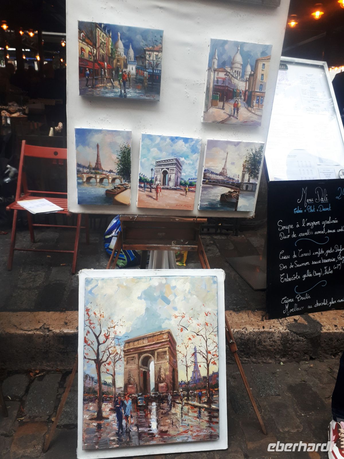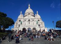 Anschließend fuhr uns der Bus an den Fuß des Montmatre, wo wir den 2. Teil unseres Paris-Ausflugs begannen. Nach dem Treppenaufstieg bzw. der Auffahrt mit der Standseilbahn, dem Funiculaire – je nach Wunsch der Gäste – konnten wir den wunderschönen Blick von Sacre Coeur über Paris genießen. Anschließend erlebten wir das historische Montmatre-Zentrum, den Place du Tertre, beobachteten die vielen Maler bei der Arbeit und bewunderten ihre realistischen Landschafts-und Paris-Bilder, aber vor allem die schönen oder auch satirischen Porträts. Wir erlebten das einmalige Flair des Stadtviertels Montmatre und hätten uns auch porträtieren lassen können, aber wir hatten ja noch einiges vor an diesem Tag. Doch zunächst nahmen wir uns Zeit für eine Mittagspause, bevor wir unseren Montmatre-Rundgang fortsetzten und am Moulin Rouge beendeten. Per Metro fuhren bzw. liefen wir dann von derMetro-Station „Blanche“ zum Eiffelturm und zum Bootsanleger Bateaux Parisienne. Die verbleibende Zeit wurde sowohl zum Aufstieg auf den Eiffelturm (2. Plattform) als auch für eine Schifffahrt auf der Seine genutzt - oder zum Flanieren auf der Champs Elysees.