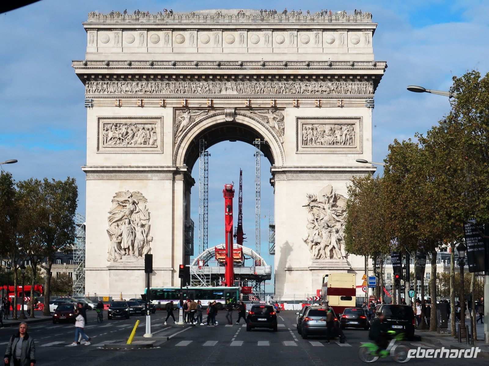 Heute stand unser Ausflug nach Paris auf dem Programm. Der Bus brachte uns zur Opera Garnier, einem sehr schönen neobarocken Gebäude aus der 2. Hälfte des 19. Jahrhunderts, dem Treffpunkt mit unserer netten und kompetenten Stadtführerin Katrin. Die reichlich 2 Stunden Stadtrundfahrt durch Paris vergingen wie im Fluge. Über die Rue de la Paix im Luxusviertel von Paris mit vielen Juweliergeschäften, vorbei am Hotel Riz, wo Prinzessin Diana einst logierte, führte uns die Fahrt durch das japanische Viertel zur Comédie-Française und zum Louvre, der ehemaligen Residenz der französischen Könige - heute das größte Kunstmuseum der Welt. Danach passierten wir den großen liebevoll gestalteten Garten „Jardin des Tuileries“ und erreichten schließlich den größten Platz von Paris, den Place de la Concorde, mit dem Obelisk aus dem Tempel von Luxor. Anschließend zeigte uns Katrin die berühmte Sichtachse zum Triumphbogen mit anschließender Champs Elysees; wir sahen den Invalidendom mit seiner golden leuchtenden Kuppel und fuhren mit Blick auf das Musée d’Orsay an der Seine entlang - zur ältesten Steinbrücke, der Pont Neuf. Wir sahen natürlich die Ile de la Cité mit der Kirche Notre Dame – nach dem dramatischen Brand 2019 im Reparaturmodus mit Kränen im Hintergrund. Wir gelangten in den Stadtteil Saint Germain, der als geistiges Zentrum von Paris gilt, zum Hauptgebäude der Sorbonne mit seiner grünen Kuppel, und zum Trocadero-Platz, wo wir einen Fotostop zum Fotografieren des gegenüberliegenden Eiffelturms einlegten.
