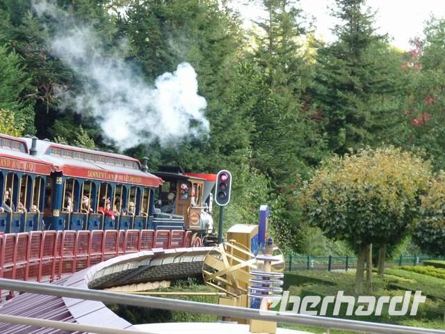 Ein Zug fuhr um das ganze Gelände und man konnte sich einen Überblick zwischen den 5 Themenparks (Main Street USA, Frontier- Adventure-, Discovery- und Fantasyland) verschaffen.