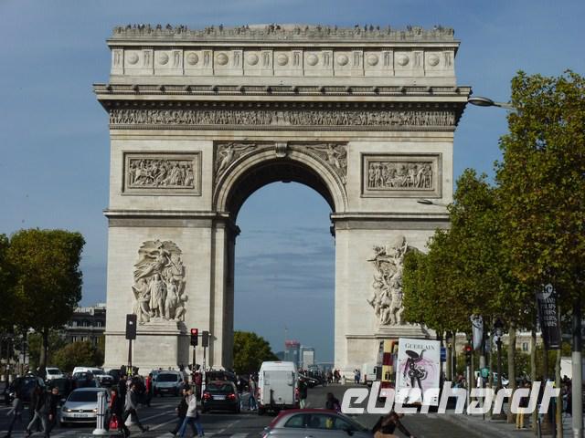 Vorbei am Palais Royal, der Alten Oper (man erzählt sich, dass hier das Phantom der Oper zu Hause ist), der Kirche La Madeleine, Place de la Concorde, weiter auf der 2 km langen Prachtstraße Champs-Élysèes zum gigantischen Triumphbogen.
