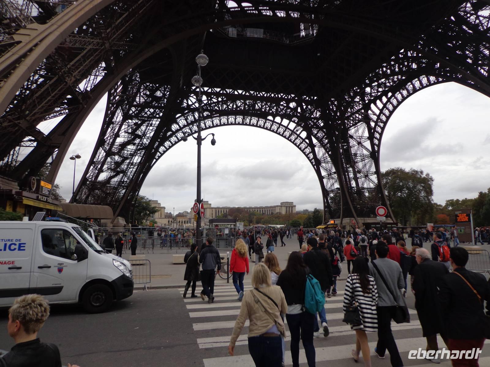 Eine Stunde Paris vom Wasser aus. Ein herrliches Erlebnis, das dem Blick vom Eiffelturm schon das Wasser reichen konnte. Dafür erlebten wir unter dem Eiffelturm die polizeiliche Sprengung eines herrenlosen Rucksacks. Viel Polizei und wenige Besucher standen so für einen kurzen Moment unter dem Turm, ehe wieder die Normalität einsetzte.