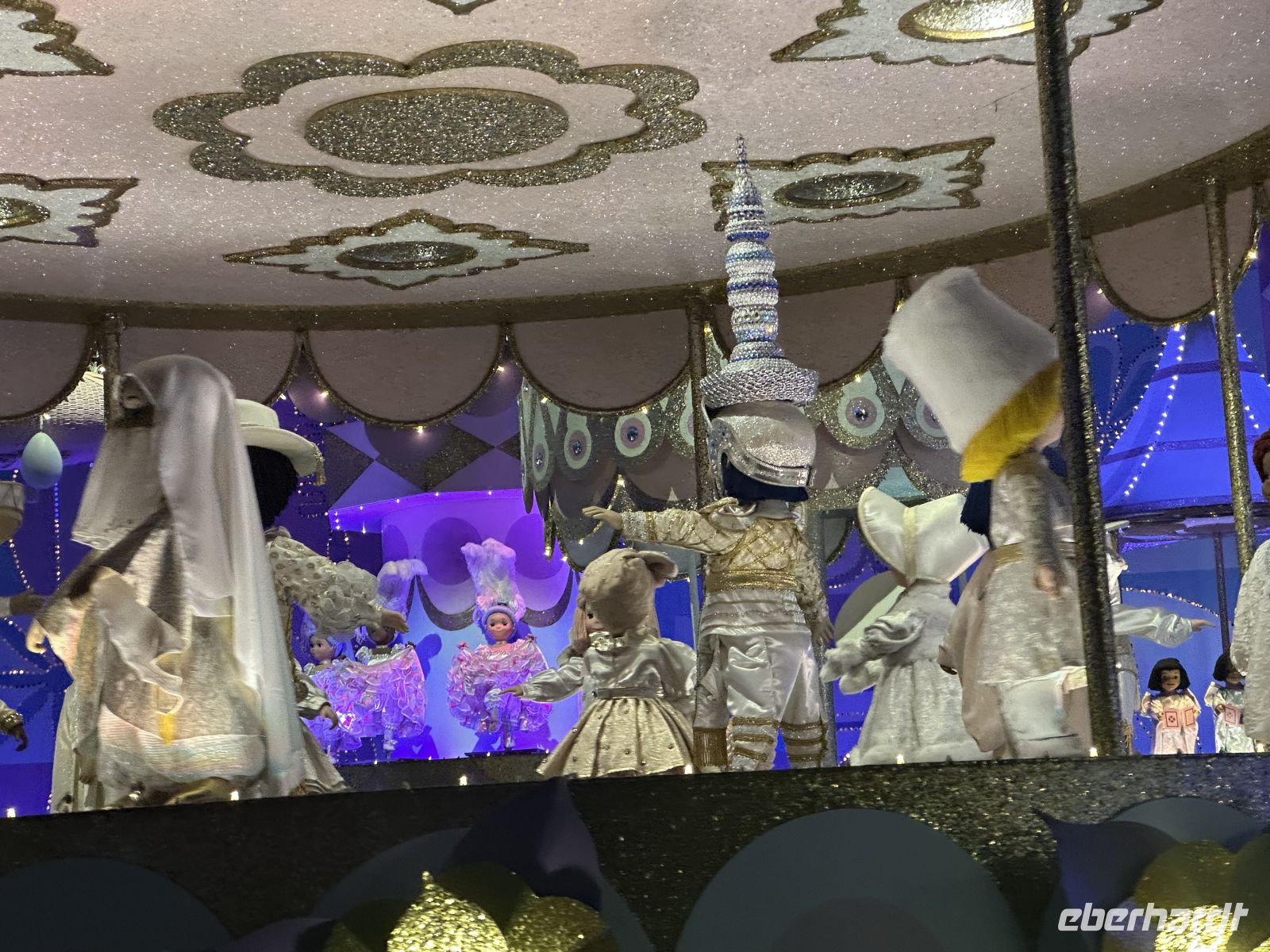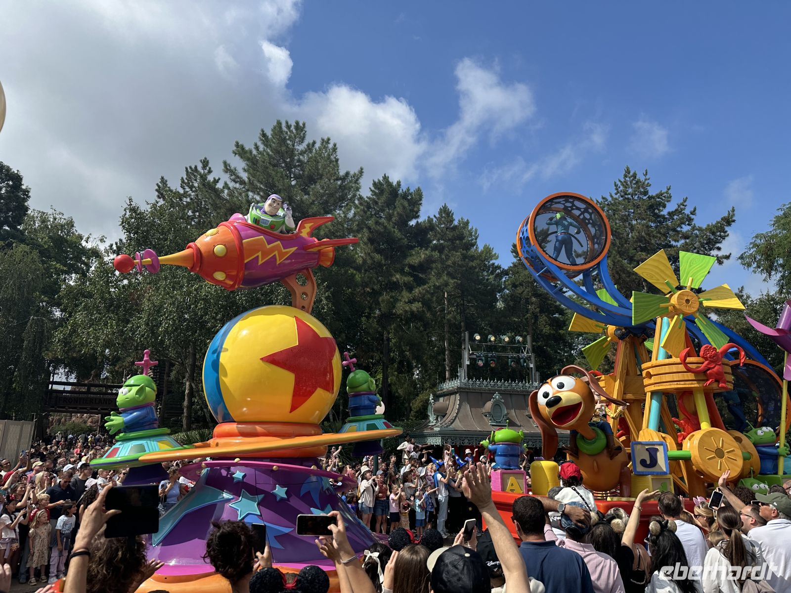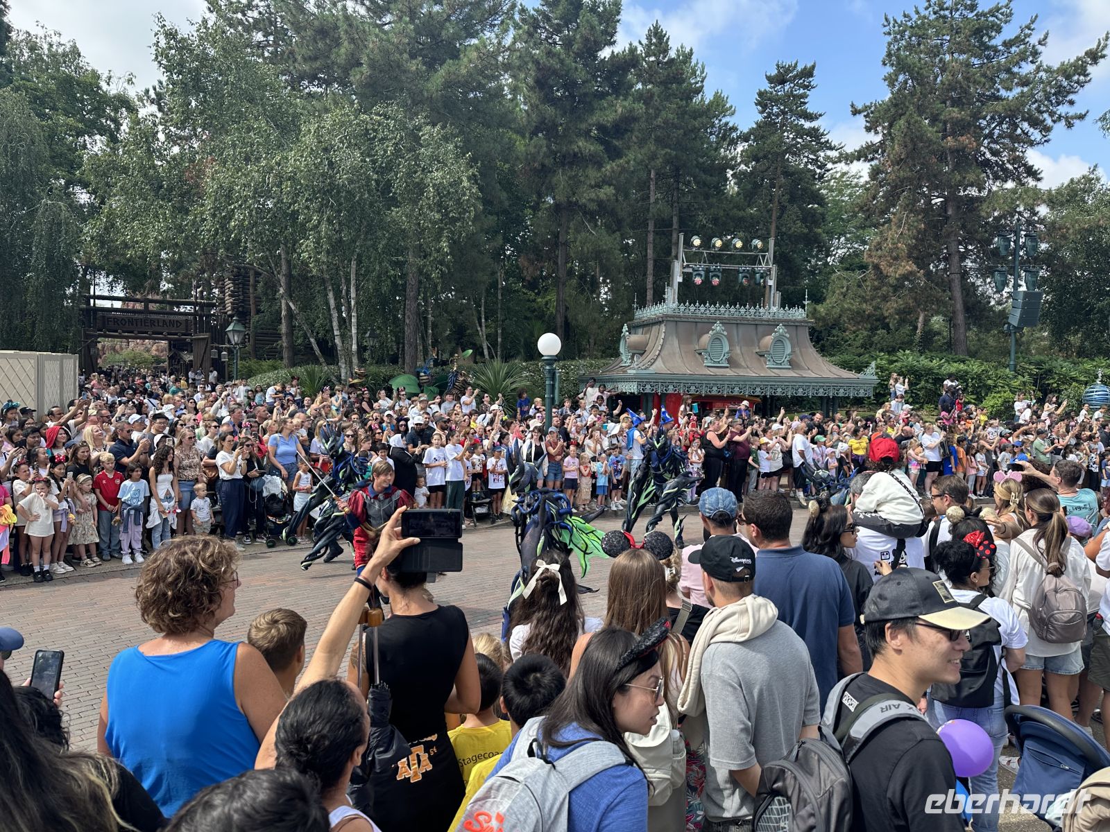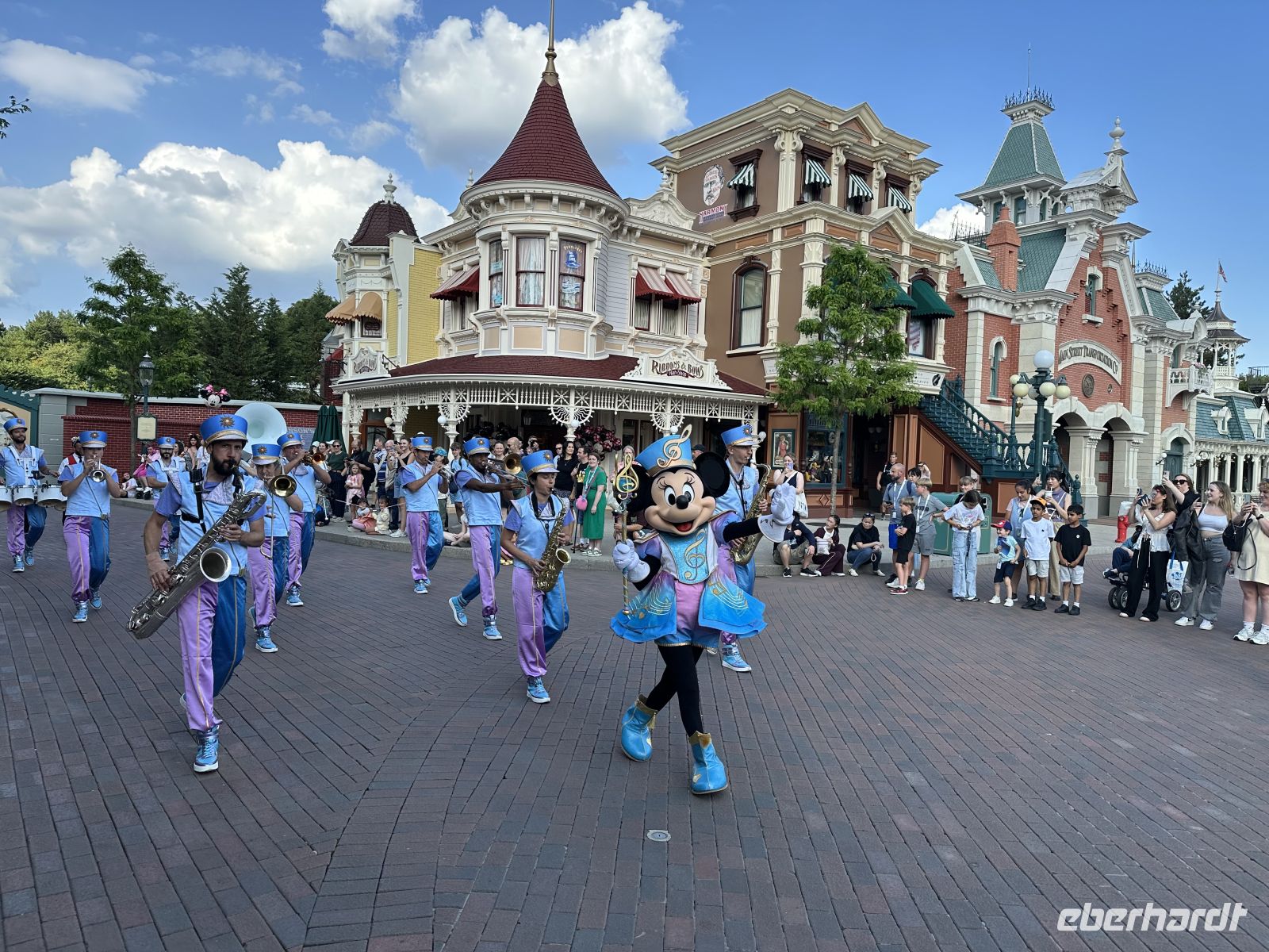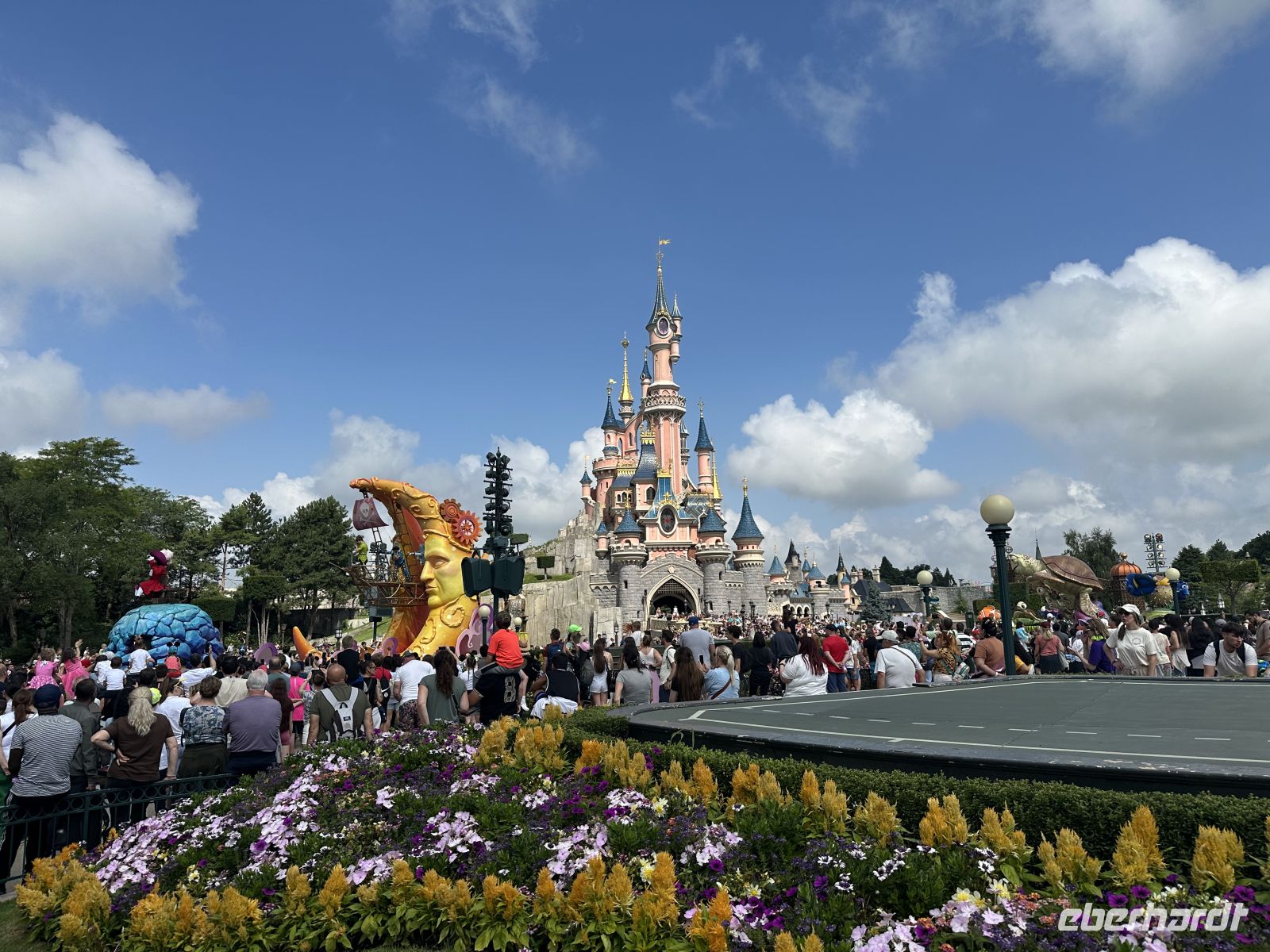 Aus der App kann man ebenfalls erfahren, wann die große Disneyparade stattfindet. An unserem Besuchstag war es 11.30 Uhr. Hier ist es ratsam, sich rechtzeitig gute Plätze zu sichern. Ab einer Stunde vor Paradenbeginn sind die Bordsteinkanten und Bänke entlang der Route belegt. Steht man nicht in vorderster Reihe, gibt es trotzdem einiges zu sehen, denn viele Disneyfiguren kommen auf großen Wagen gefahren.
