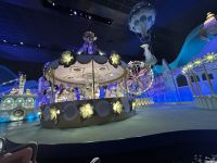 Jetzt war es so weit. Wir konnten nicht mehr laufen. Zum Glück gibt es im Discoveryland die Attraktion "Mickey's PhilharMagic", die im Discoveryland Theater gezeigt wird. Endlich sitzen! Wir setzen unsere 3-D-Brillen auf und machen es uns im Theater gemütlich. Zu unserer Überraschung wird es sogar ein 4-D-Erlebnis. Die Geschichte dreht sich um Donald Duck, der den Zauberhut von Micky Maus findet und sich entscheidet, eine Musikaufführung zu dirigieren. Doch dabei geht alles schief. Der Hut erwacht zum Leben und Donald wird auf eine magische Reise durch verschiedene Disney-Filme geschickt, um den Hut wiederzufinden. Neben den lustigen 3-D-Effekten weht durch das Theater ein stürmischer Wind, die Sitze wackeln, es gibt Wasserspritzer und Gerüche. Die Show ist eine musikalische Hommage an die Disney-Geschichte. Donald Duck fliegt auf seinem Abenteuer durch verschiedene Welten und Lieder. Neben Micky Maus und Donald Duck treten viele weitere beliebte Disney-Figuren auf der Leinwand auf, darunter Aladdin, Arielle, Simba, Peter Pan und Jasmin. Das Erlebnis im Discoveryland Theater ist eine liebevolle und witzige Show, die vor allem durch die Kombination von 3D-Animation, klassischen Disney-Liedern und speziellen Effekten im Theatersaal besticht. Es ist eine tolle Attraktion für die ganze Familie und bietet eine kurze Pause vom Trubel des Parks.
