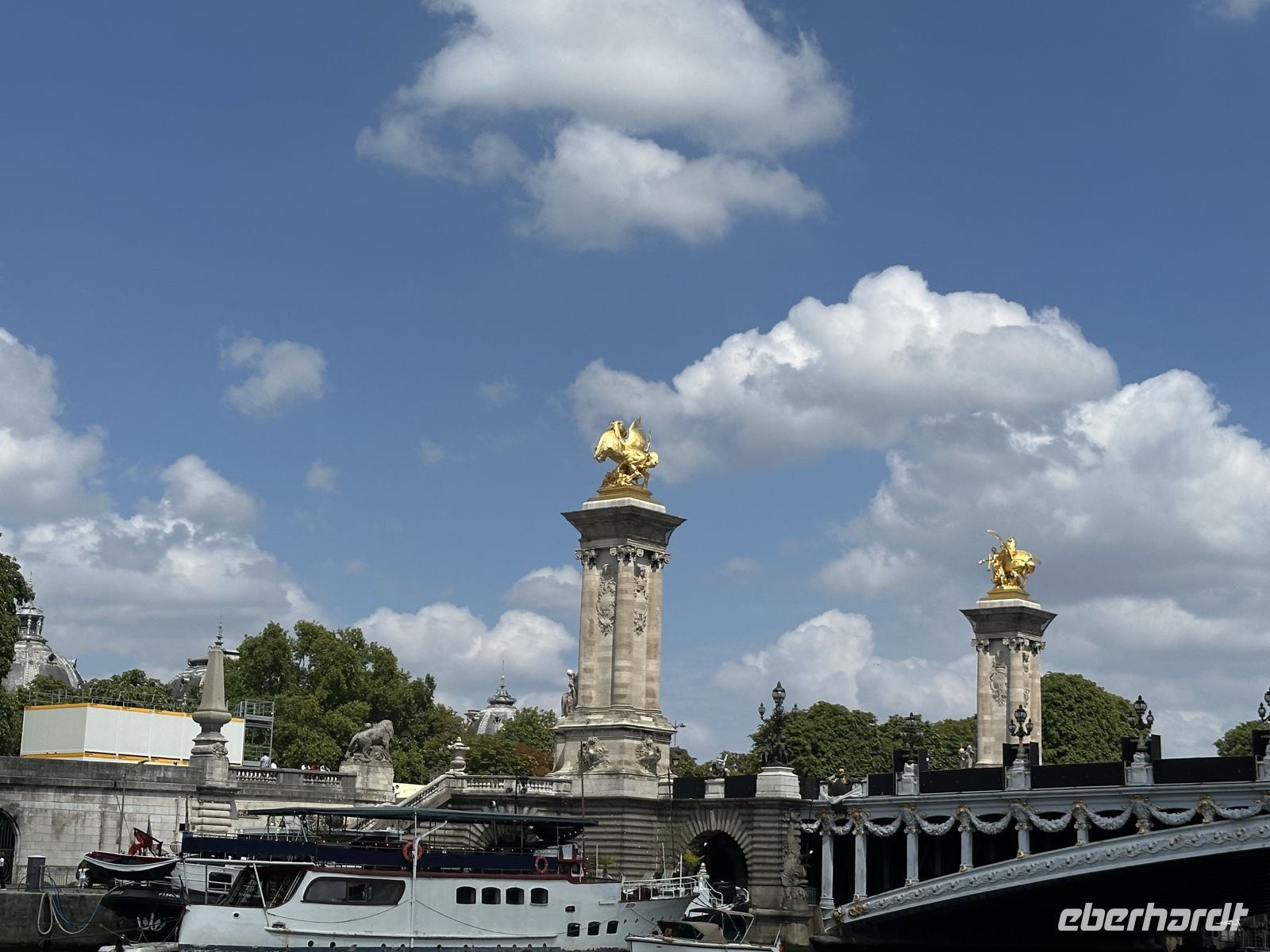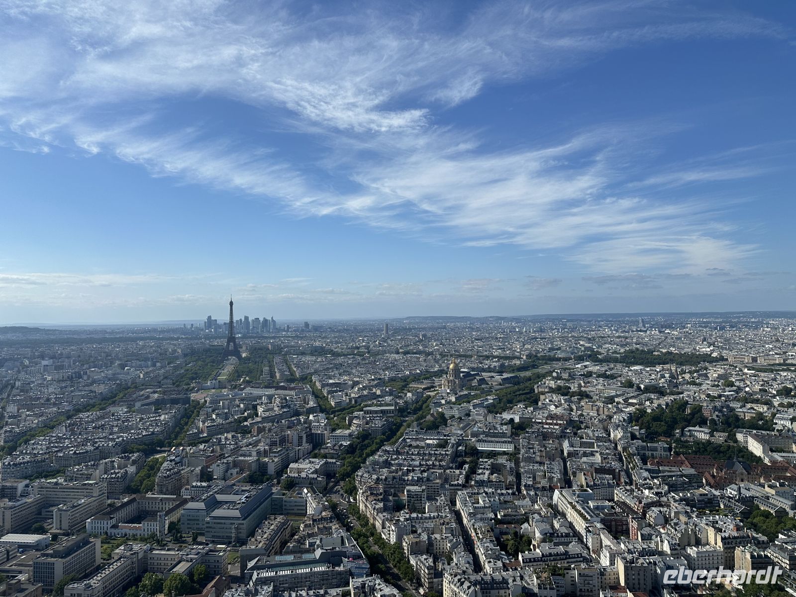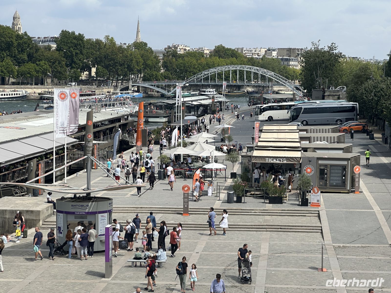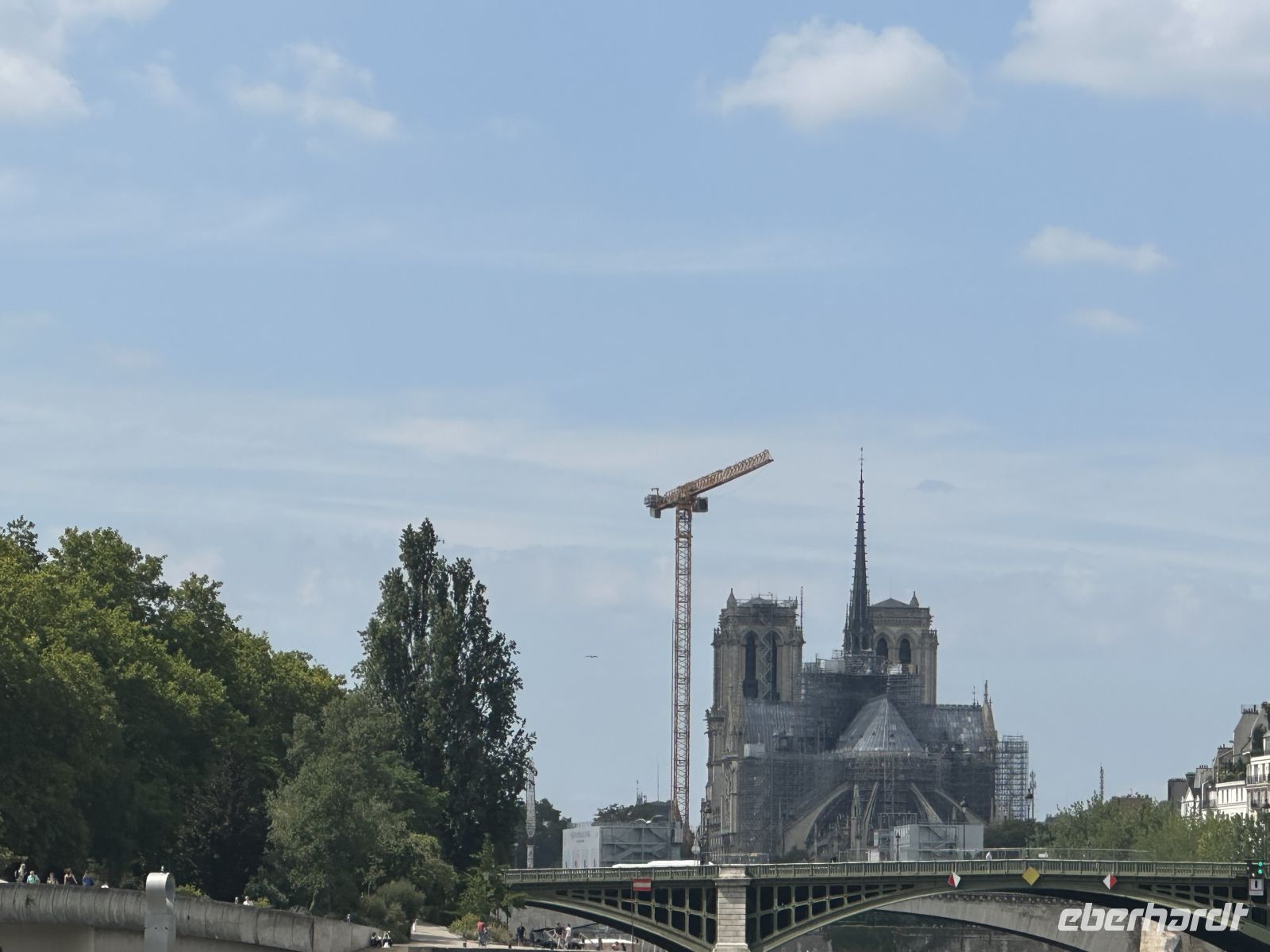 Unser Tag beginnt mit dem köstlichen Frühstück im Paxton Hotel. 08.15 Uhr fahren wir mit unserem Bus nach Paris und treffen hier auf unseren Stadtführer Francoir. Wir durchqueren die Straßen von Paris und sehen Bekanntes oder Unbekanntes, je nachdem, ob man schon in Paris war oder nicht. Es gehören unter anderem dazu die Pariser Oper, das Kaufhaus Lafayette, der Obelisk, der Louvre und vieles mehr. Auch in Montmartre wollen wir einen Stopp einlegen, was jedoch aufgrund der angespannten Parksituation misslingt. Am Park Luxemburg steigen wir aus und unternehmen einen kleinen Spaziergang. Anschließend geht es auf die Champs Élysée und wir fahren Richtung Arc de Triumph, kehren dort um und beenden unsere Stadtrundfahrt am Eiffelturm. Nun bleibt etwas Zeit zur eigenen Verfügung. Erst um 15 Uhr treffen wir uns zur Bootsfahrt auf der Seine wieder. Hier herrscht heute großer Andrang und wir müssen uns ein bisschen gedulden. Ein Wunder ist es nicht, es ist Wochenende, Ferien und schönstes Sommerwetter. Ein Boot nach dem anderen verlässt den Kai und bald dürfen auch wir einsteigen. Maximal könnten 599 Passagiere mitfahren. Doch das Personal ist gut drauf und stopft die Schiffe nicht so voll. Viele Gäste möchten an Deck sitzen, allerdings ist es wirklich heiß und die Sonne scheint kräftig. Zum Glück ist im unteren Bereich Platz, so dass es möglich ist, zwischen den Decks zu wechseln. Was es an den Ufern zu sehen gibt, wird per Mikrofon in Französisch, Englisch und Spanisch angesagt. Für uns bleiben nur zwei Varianten. Über einen QR-Code, der überall aushängt, können wir eine App der Reederei laden und über diese einen Streckenkommentar lesen oder anhören. Alternative gibt es im unteren Deck eine Art Telefonhörer, über den man ebenfalls den Streckenkommentar in verschiedenen Sprachen, auch Deutsch, abhören kann. Alles ist eigentlich recht mühsam, einfacher ist es, die Bootsfahrt zu genießen und die Stadtlandschaft an sich vorbeiziehen zu lassen. Nach einer Stunde kehrt unser Boot zum Ausgangspunkt zurück. Jan wartet bereits mit dem Bus und wir fahren zum Turm Montparnasse. Es ist eigentlich kein Turm, sondern ein Hochhaus, von dem wir eine schöne Aussicht haben werden. Das Haus an sich ist erst einmal keine Schönheit, das wissen auch die Pariser und Francois erzählte uns, dass eine Änderung der Fassade geplant ist. Wir sind eine halbe Stunde zu früh. Die Mitarbeiter am Eingang sind sehr freundlich und nach dem Hinweis, dass eine halbe Stunde kein Problem sei, wir beim nächsten Mal aber keinesfalls noch früher kommen sollen, dürfen wir hinauf fahren (natürlich erst nach der Taschenkontrolle). Einer von 25 Fahrstühlen bringt uns hinauf in die 56. Etage. Hier haben wir einen 360 Grad Rundblick auf Paris. Heute ist es besonders schön, weil die Sonne scheint und die Aussicht phantastisch ist. Auf dieser Etage gibt es das WC und einen kleinen Souvenirladen. Das Café hat geschlossen. An verschiedenen Stellen können wir uns mittels 3-D-Brille in die Vergangenheit Paris zurückversetzen lassen. Außerdem gibt es einen kurzen Film über die Geschichte von Paris auf einem großen Bildschirm. Treppauf geht es zur Aussichtsterrasse. Ein Schriftzug mit einem Herz und I love Paris lädt zum fotografieren ein. Es gibt ein paar Sitzmöbel und QR-Codes, mit denen wir Informationen abrufen können. Nach diesem erlebnisreichen Abschluss unseres Tages in Paris fahren wir zurück zum Hotel.