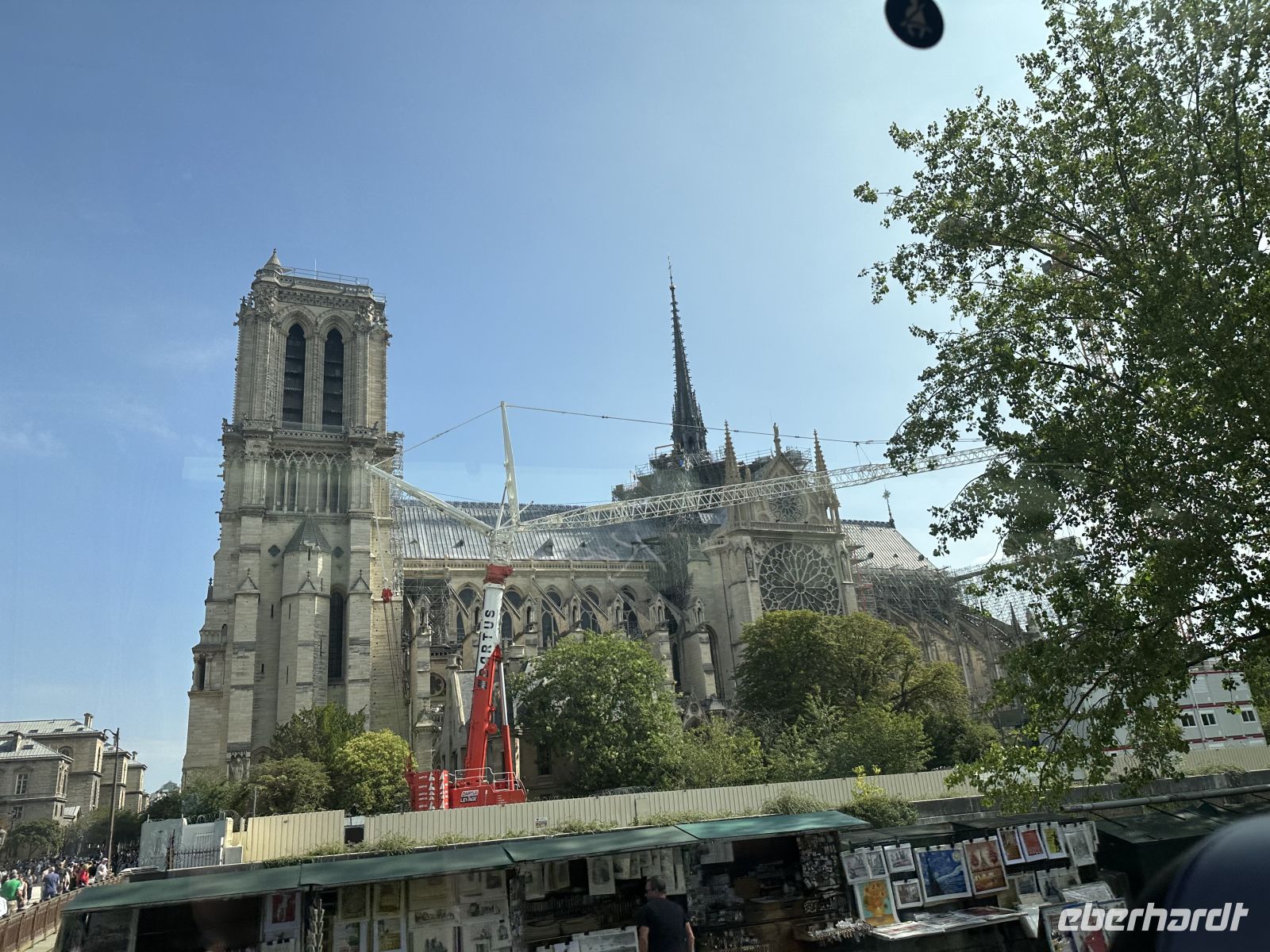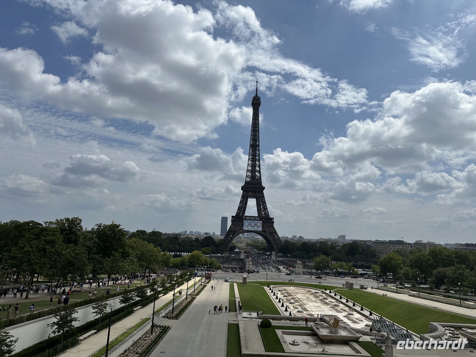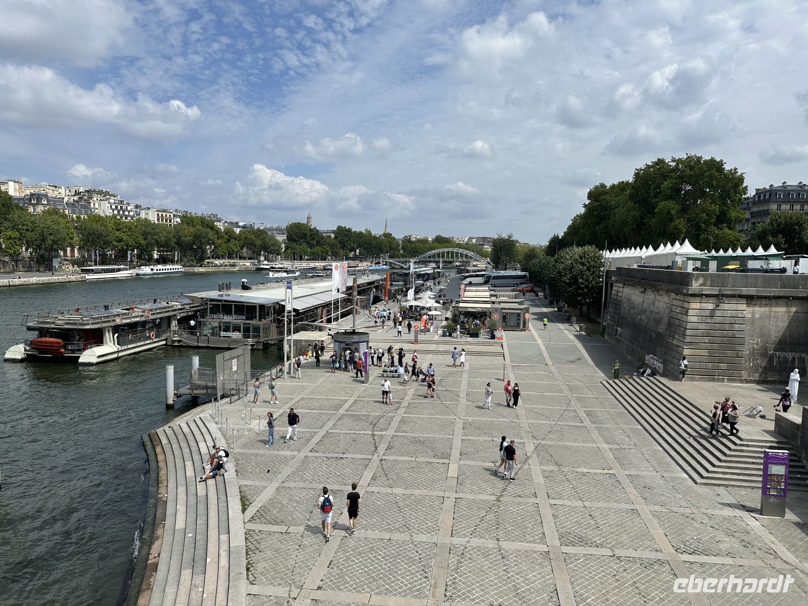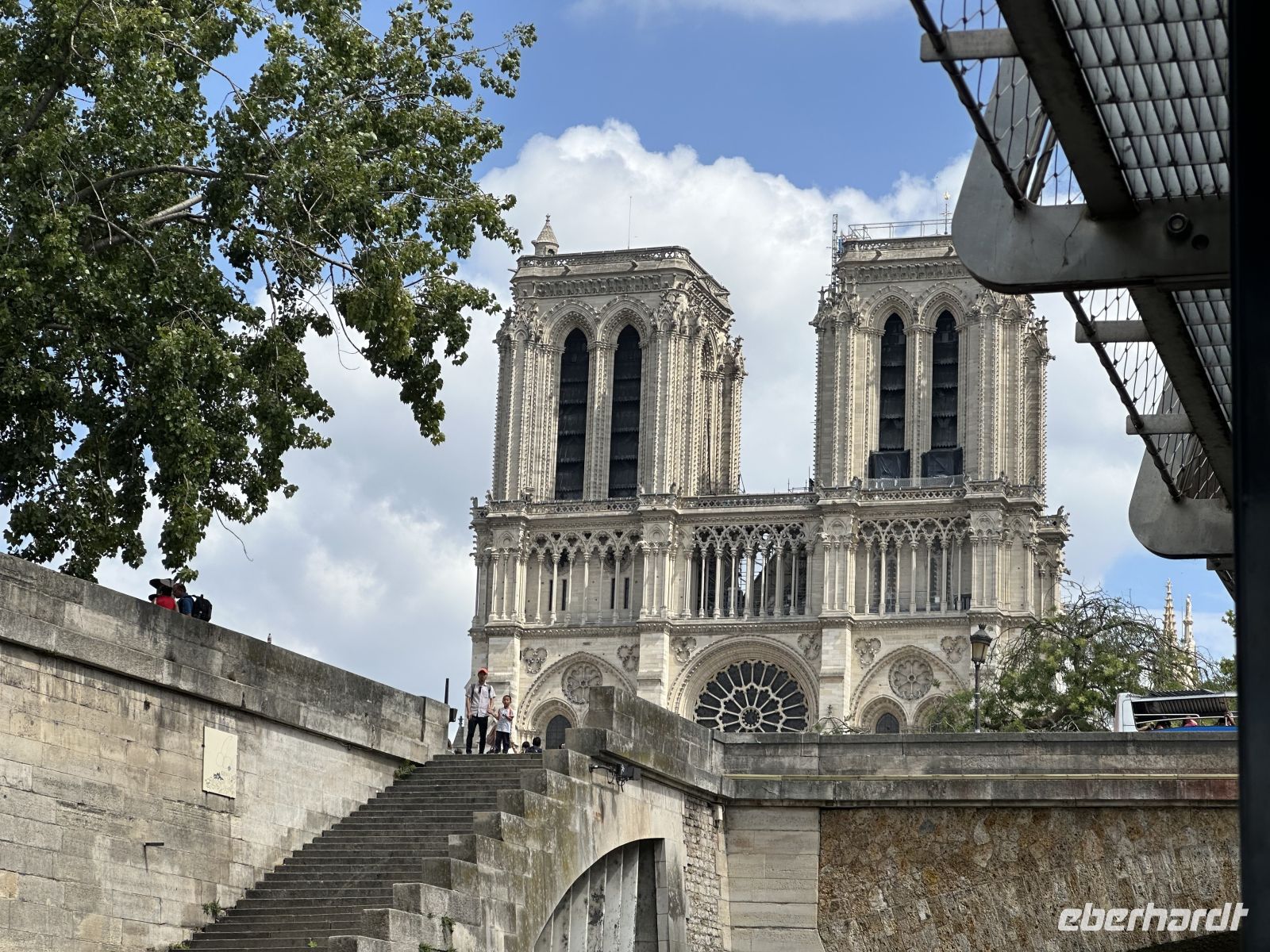 Unser Tag beginnt mit dem köstlichen Frühstück im Paxton Hotel. 08.15 Uhr fahren wir mit unserem Bus nach Paris und treffen hier auf unseren Stadtführer Francoir. Wir durchqueren die Straßen von Paris und sehen Bekanntes oder Unbekanntes, je nachdem, ob man schon in Paris war oder nicht. Es gehören unter anderem dazu die Pariser Oper, das Kaufhaus Lafayette, der Obelisk, der Louvre und vieles mehr. Auch in Montmartre wollen wir einen Stopp einlegen, was jedoch aufgrund der angespannten Parksituation misslingt. Am Park Luxemburg steigen wir aus und unternehmen einen kleinen Spaziergang. Anschließend geht es auf die Champs Élysée und wir fahren Richtung Arc de Triumph, kehren dort um und beenden unsere Stadtrundfahrt am Eiffelturm. Nun bleibt etwas Zeit zur eigenen Verfügung. Erst um 15 Uhr treffen wir uns zur Bootsfahrt auf der Seine wieder. Hier herrscht heute großer Andrang und wir müssen uns ein bisschen gedulden. Ein Wunder ist es nicht, es ist Wochenende, Ferien und schönstes Sommerwetter. Ein Boot nach dem anderen verlässt den Kai und bald dürfen auch wir einsteigen. Maximal könnten 599 Passagiere mitfahren. Doch das Personal ist gut drauf und stopft die Schiffe nicht so voll. Viele Gäste möchten an Deck sitzen, allerdings ist es wirklich heiß und die Sonne scheint kräftig. Zum Glück ist im unteren Bereich Platz, so dass es möglich ist, zwischen den Decks zu wechseln. Was es an den Ufern zu sehen gibt, wird per Mikrofon in Französisch, Englisch und Spanisch angesagt. Für uns bleiben nur zwei Varianten. Über einen QR-Code, der überall aushängt, können wir eine App der Reederei laden und über diese einen Streckenkommentar lesen oder anhören. Alternative gibt es im unteren Deck eine Art Telefonhörer, über den man ebenfalls den Streckenkommentar in verschiedenen Sprachen, auch Deutsch, abhören kann. Alles ist eigentlich recht mühsam, einfacher ist es, die Bootsfahrt zu genießen und die Stadtlandschaft an sich vorbeiziehen zu lassen. Nach einer Stunde kehrt unser Boot zum Ausgangspunkt zurück. Jan wartet bereits mit dem Bus und wir fahren zum Turm Montparnasse. Es ist eigentlich kein Turm, sondern ein Hochhaus, von dem wir eine schöne Aussicht haben werden. Das Haus an sich ist erst einmal keine Schönheit, das wissen auch die Pariser und Francois erzählte uns, dass eine Änderung der Fassade geplant ist. Wir sind eine halbe Stunde zu früh. Die Mitarbeiter am Eingang sind sehr freundlich und nach dem Hinweis, dass eine halbe Stunde kein Problem sei, wir beim nächsten Mal aber keinesfalls noch früher kommen sollen, dürfen wir hinauf fahren (natürlich erst nach der Taschenkontrolle). Einer von 25 Fahrstühlen bringt uns hinauf in die 56. Etage. Hier haben wir einen 360 Grad Rundblick auf Paris. Heute ist es besonders schön, weil die Sonne scheint und die Aussicht phantastisch ist. Auf dieser Etage gibt es das WC und einen kleinen Souvenirladen. Das Café hat geschlossen. An verschiedenen Stellen können wir uns mittels 3-D-Brille in die Vergangenheit Paris zurückversetzen lassen. Außerdem gibt es einen kurzen Film über die Geschichte von Paris auf einem großen Bildschirm. Treppauf geht es zur Aussichtsterrasse. Ein Schriftzug mit einem Herz und I love Paris lädt zum fotografieren ein. Es gibt ein paar Sitzmöbel und QR-Codes, mit denen wir Informationen abrufen können. Nach diesem erlebnisreichen Abschluss unseres Tages in Paris fahren wir zurück zum Hotel.
