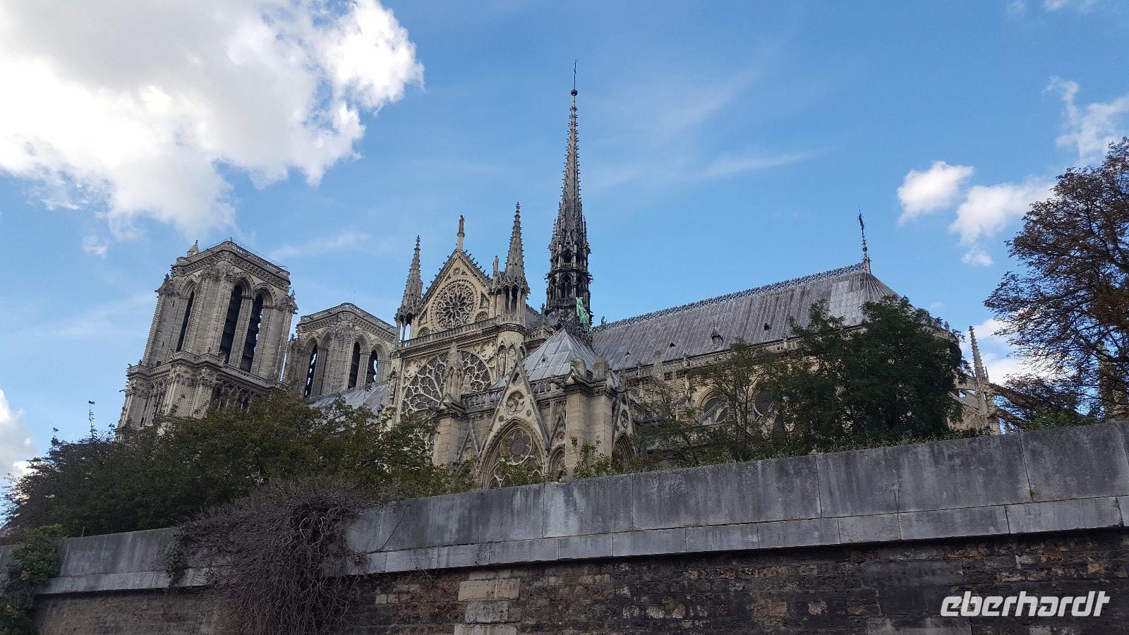 Bei beruhigender französischer Musik, lassen wir Paris an uns langsam vorbei ziehen. Auch zu Füßen von der Kathedrale Notre Dame fahren wir vorbei.
