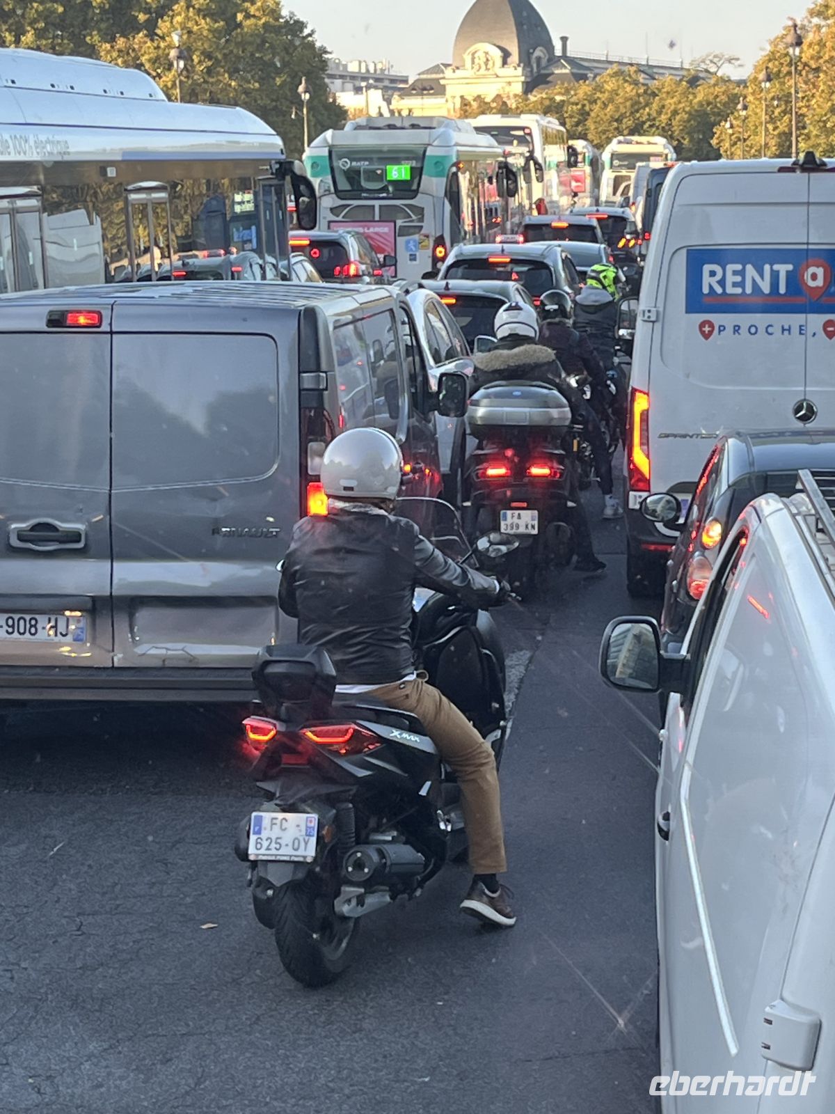 Die Reise durch die Stadt der Liebe ging los. Auto an Auto, zwischen durch drängelten sich noch die Motorrad- und Fahrradfahrer.