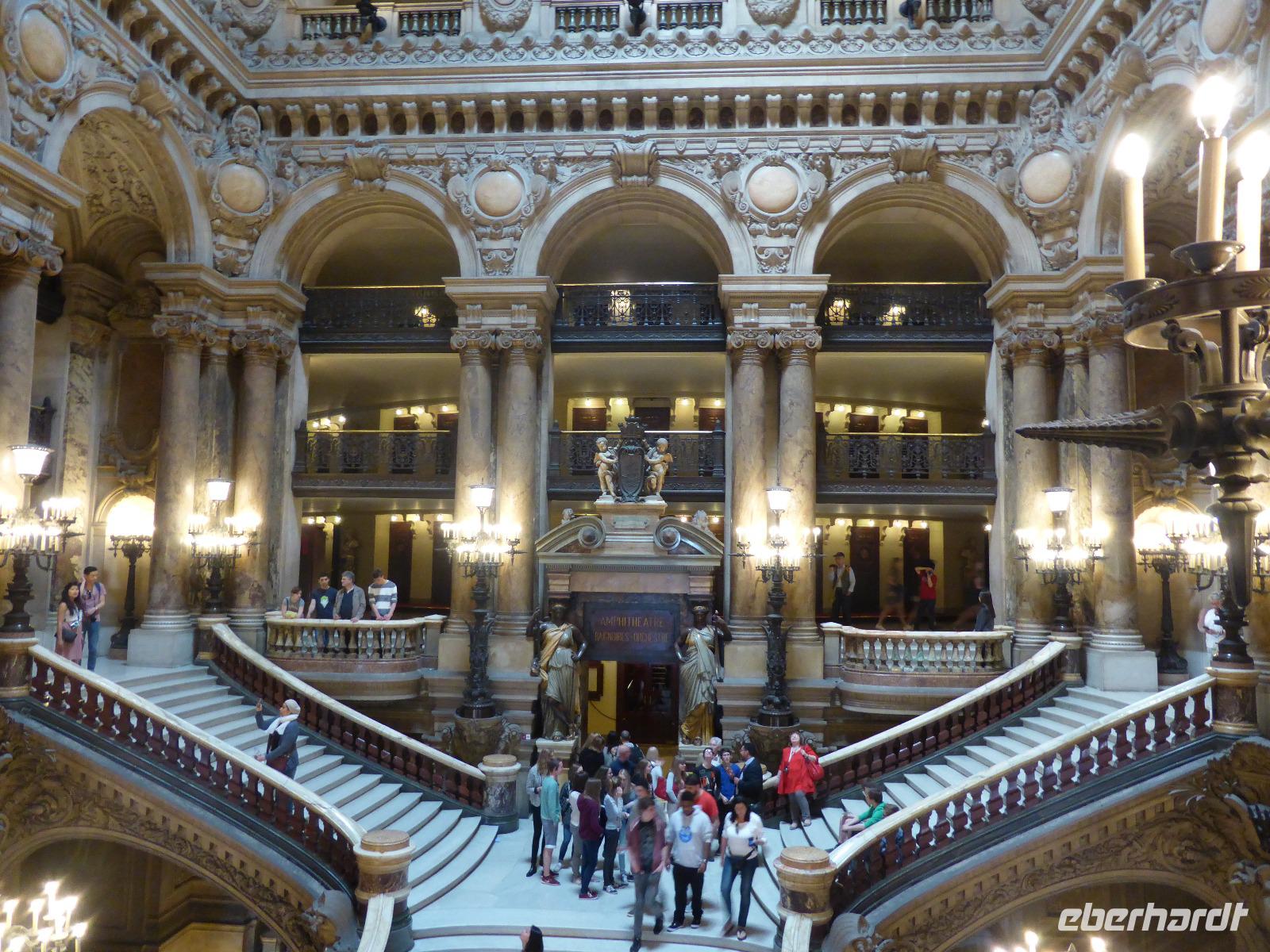 Am Nachmittag stand eine weitere exklusive Besichtigung auf dem Programm - der Besuch der Opera Garnier. Dieser prunkvolle Bau von Charles Garnier aus dem Jahr 1875 beeindruckte uns durch die prächtige Innenausstattung mit farbigem Marmor. Das Große Treppenhaus, der Zuschauerraum sowie das Große Foyer zählen zu den schönsten Räumen der Oper.