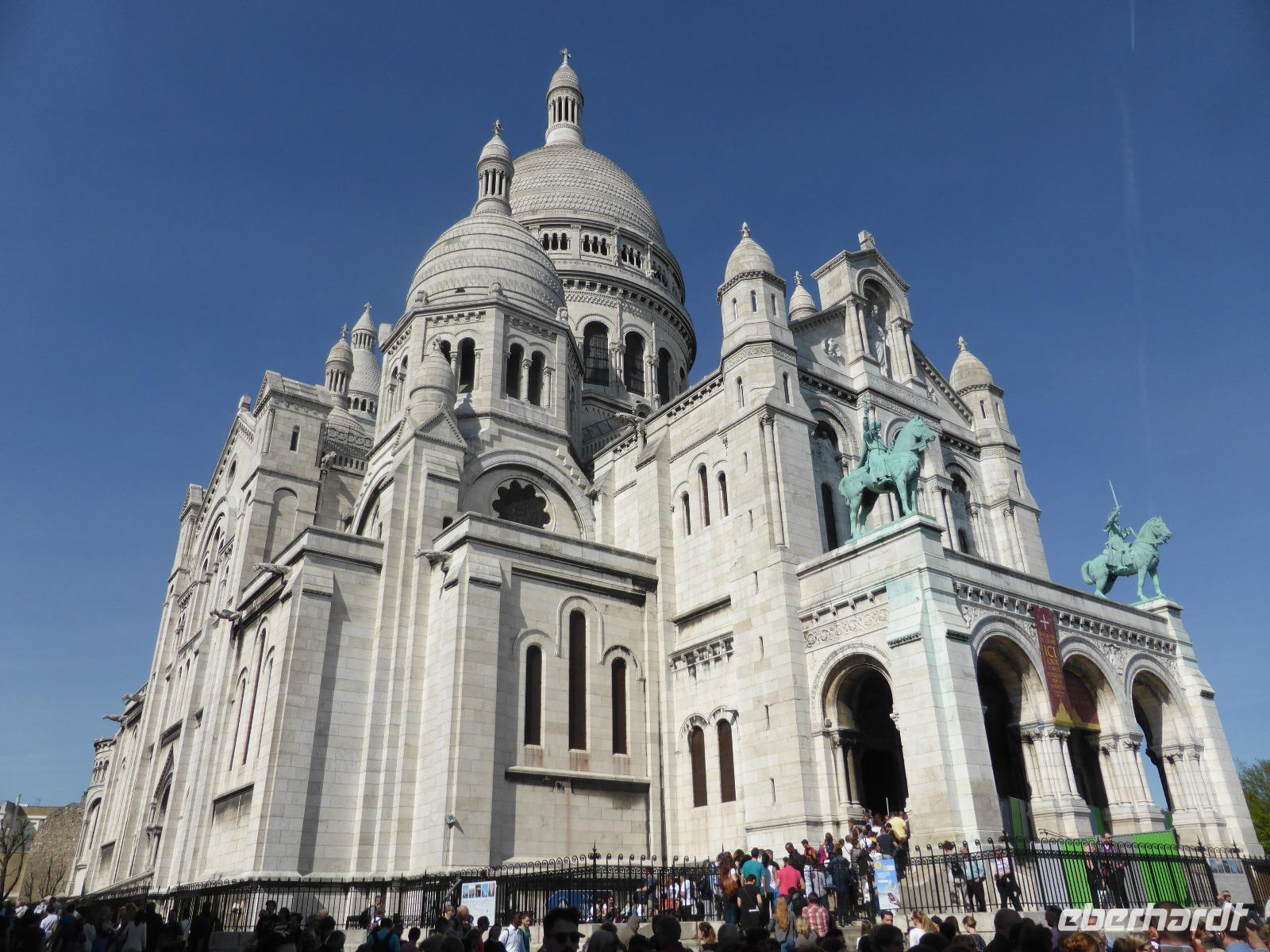 Den Montmartre Hügel erkundeten wir zu Fuß, den dieser Stadteil hat heute noch dörflichen Charakter. Er liegt auf einer sanften Erhebung (La Butte). Seinen Namen erhielt er von einem des Götterboten Merkur geweihten Tempel. Erst die frühen Christen nannten ihn „Berg der Märtyrer", nach dem Martyrium des heiligen Denis, dem ersten Bischof von Paris. Im 19. Jahrhundert wurde es zum Mekka für Maler, Schriftsteller, Dichter und Musiker, die sich der Atmosphäre des Cabarets und Tanzlokale angezogen fühlten. Unser Ziel war die Kirche Sacre Coeur. Als Wahrzeichen des ganzen Viertels erhebt sich ihre große weiße Kuppel mit einem Turm, der eine der schwersten Glocken der Welt trägt über das Häusermeer der Metropole. Im Deutsch-Französischen Krieg von 1870/71, der mit der demütigenden Niederlage des Kaiserreiches endete, wurde der Bau einer dem Herzen Jesu geweihten Kirche der Unsterblichkeit Frankreichs und seines katholischen Glaubens gelobt. Anschließend nutzten wir die Zeit, um uns ins Getümmel auf dem Place du Tertre zu begeben.