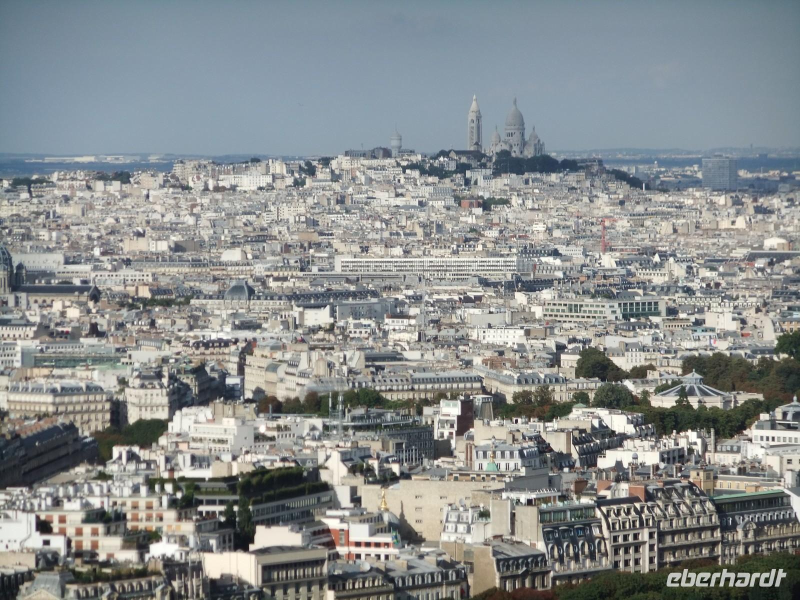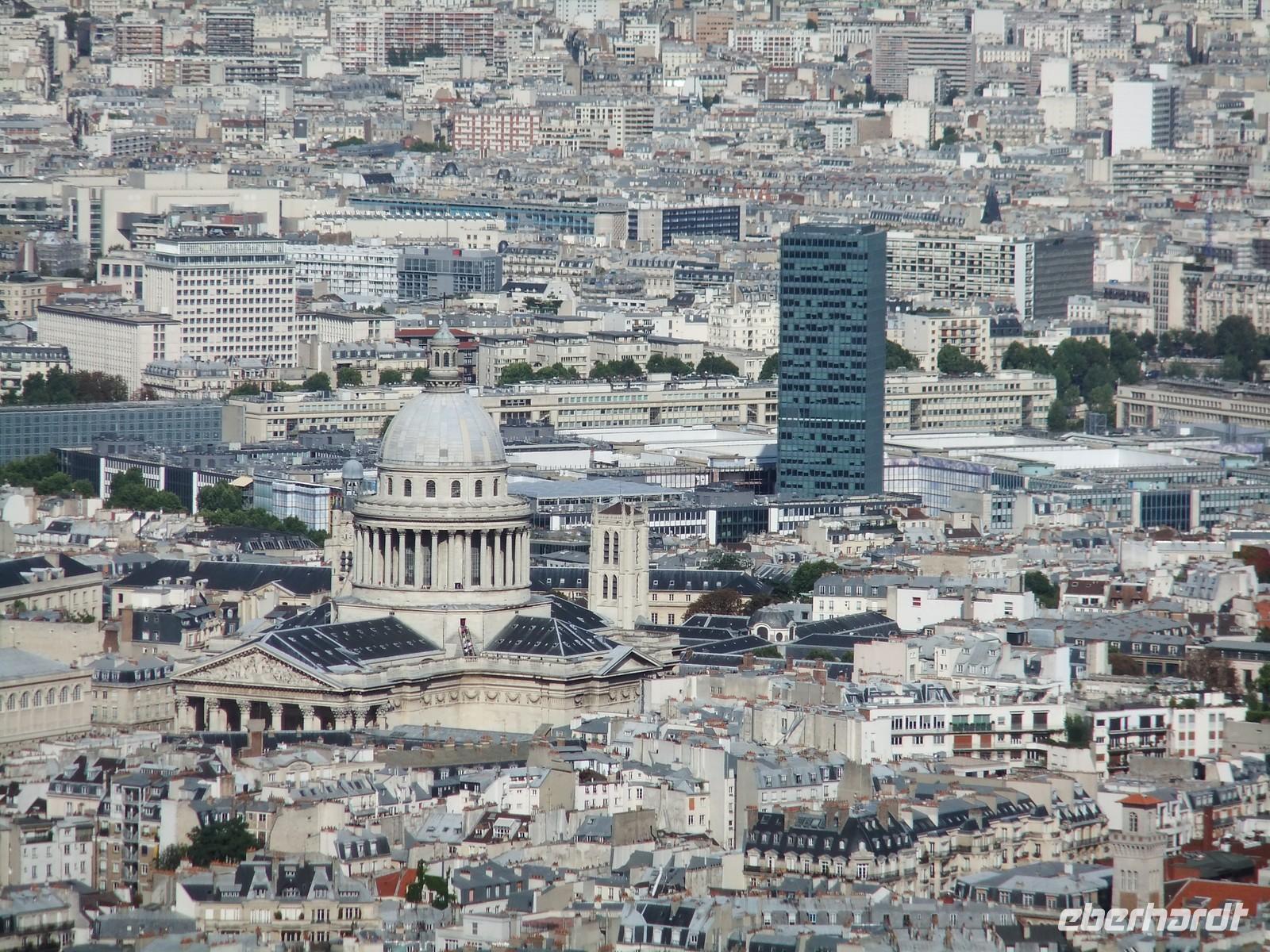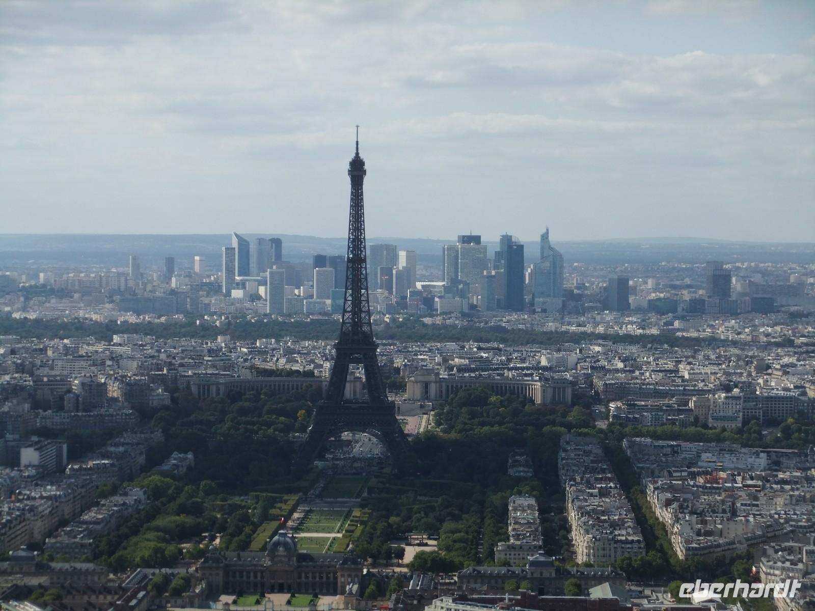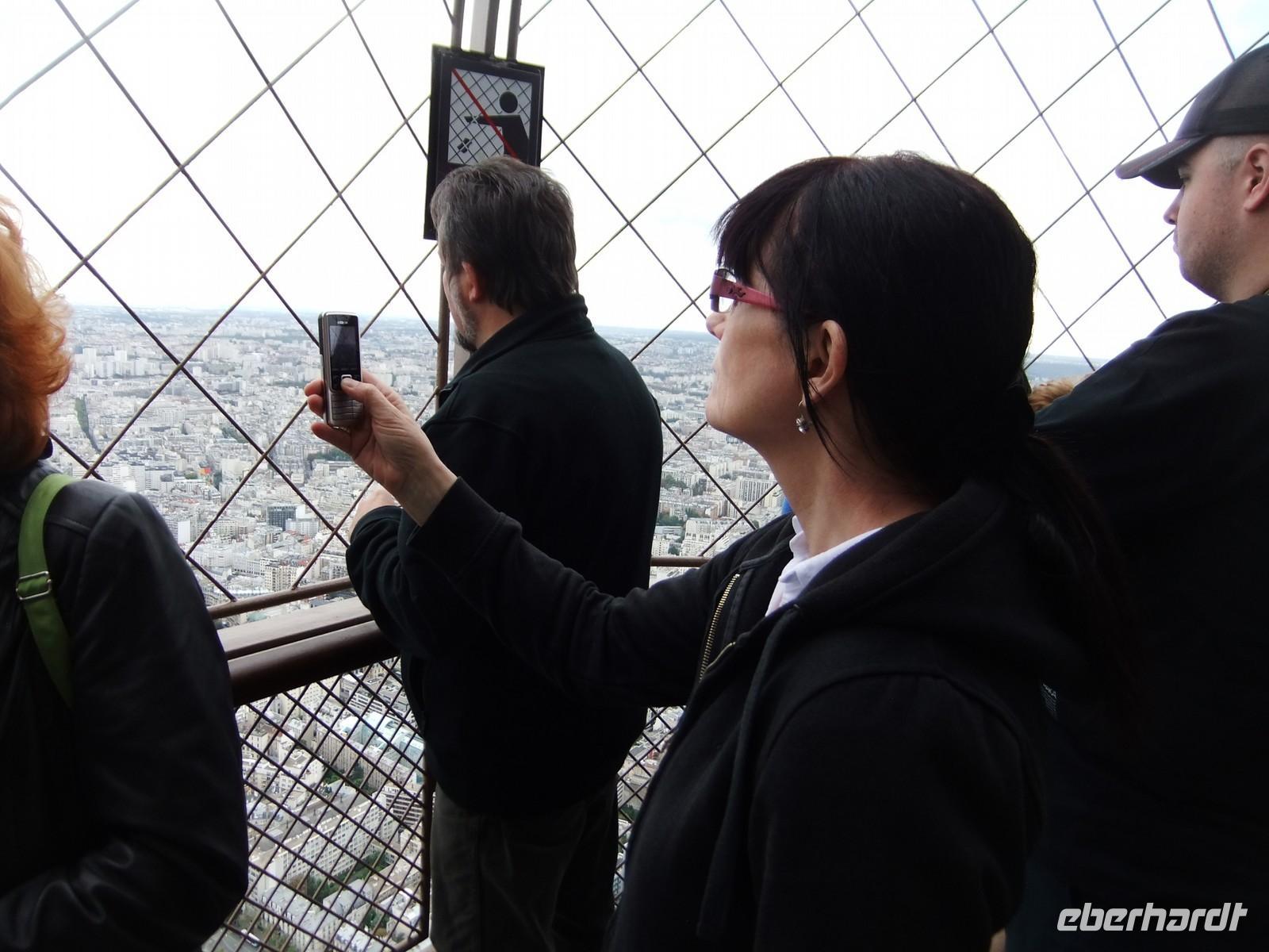 Nur gut, dass erst nach dem Bau des Tour Montparnasse ein Bauverbot auf Wolkenkratzer in Paris ausgesprochen wurde. So können wir von der seit einigen Monaten verglasten Dachterrasse aus über 200 m Höhe auf Paris herabschauen. In großer Vorteil ist der Einsatz des Reiseleiterfunks. Zwar gibt es noch einige Anlaufschwierigkeiten, aber nur so ist es mir möglich, das Stadtbild und seine markanten Sehenswürdigkeiten für alle hörbar zu erklären.