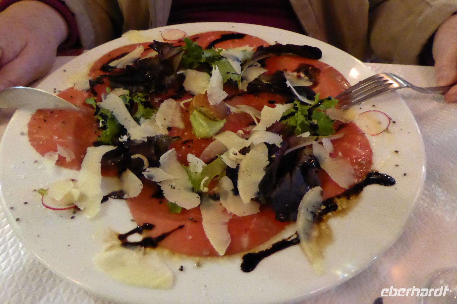 Nach so viel Geschichte freuten wir uns auf ein gemütliches Abendessen im `Le Vieux Bistrot´, wo wir herzlich empfangen wurden. Die Auswahl der leckeren Speisen fiel uns nicht leicht: Salat mit warmem Ziegenkäse, oder lieber eine typisch französische Pastete? Lachs, Rind oder Lamm? Hier findet jeder etwas nach seinem Geschmack, frisch zubereitet mit ausgewählten Beilagen, ist unser erstes gemeinsames Abendessen in Frankreich ein Genuss für alle. Ein köstliches Dessert darf bei einem französischen Essen natürlich nicht fehlen: Sorbet, Mousse au Chocolat, Crème brulée- schon die Namen zergehen auf der Zunge!