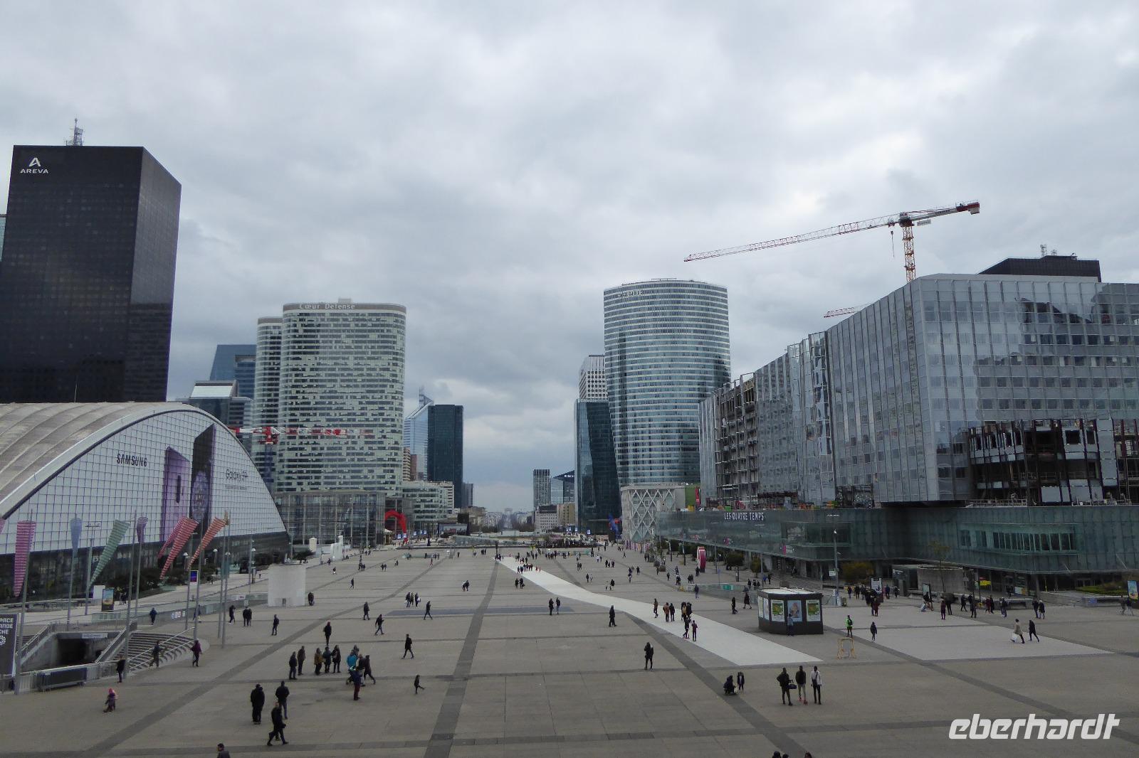 Ein krasser Gegensatz zu der fast planlos wirkenden Altstadt von Paris befindet sich im Westen, am anderen Ende der Stadt: La Défense. Geplant in den fünfziger Jahren als moderne Bürostadt, ist es nach seiner Aufwertung durch den `Grande Arche`, den großen Bogen, des dänischen Architekten Johann Otto von Spreckelsen, wieder in den Focus gerückt. Mit diesem Bauwerk bekam 1989 die historische Achse durch Paris, vom Louvre, über den Obelisken von Luxor, zum Arc de Triomphe, einen weiteren Meilenstein.