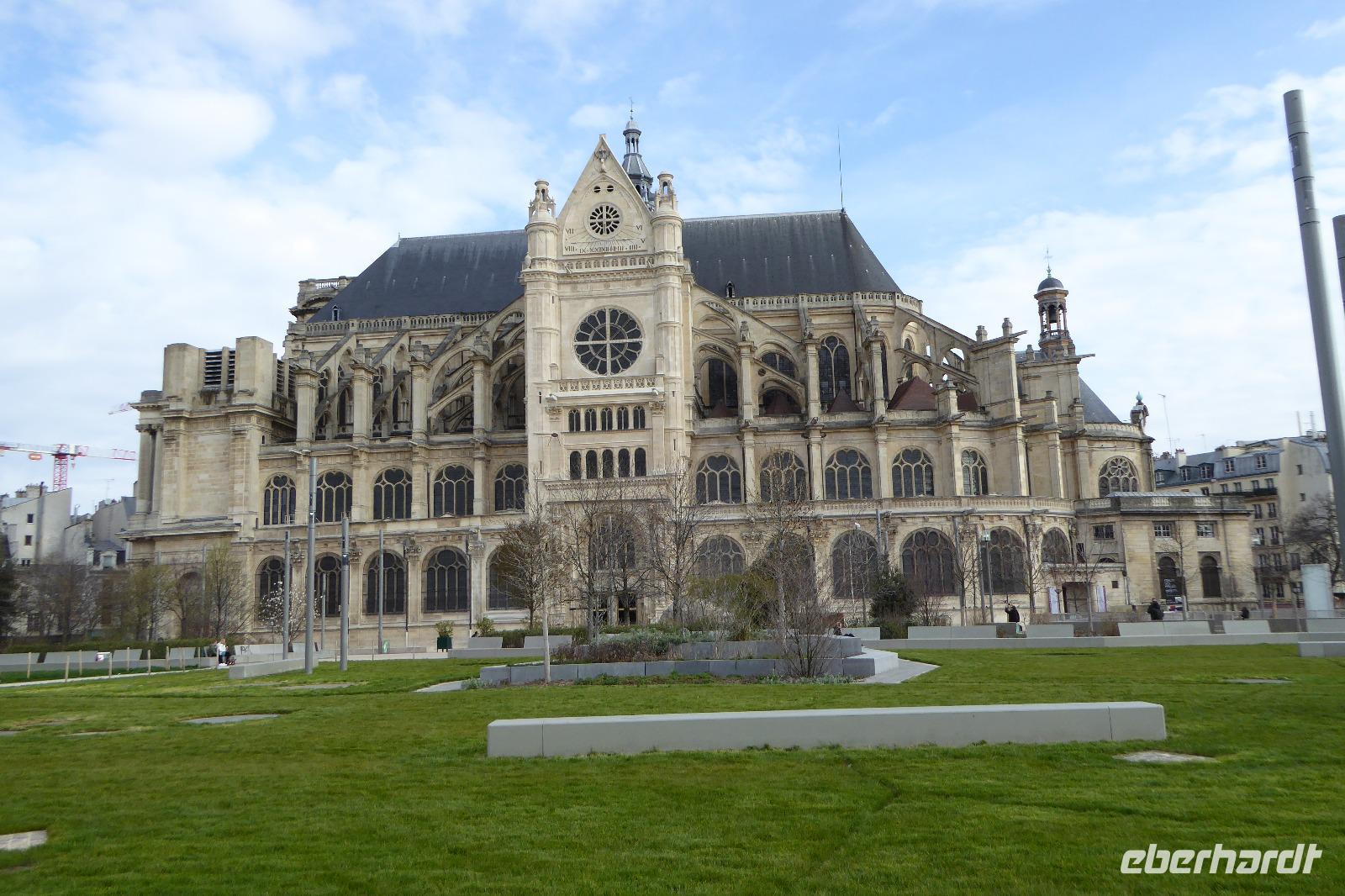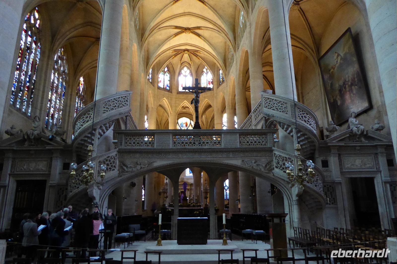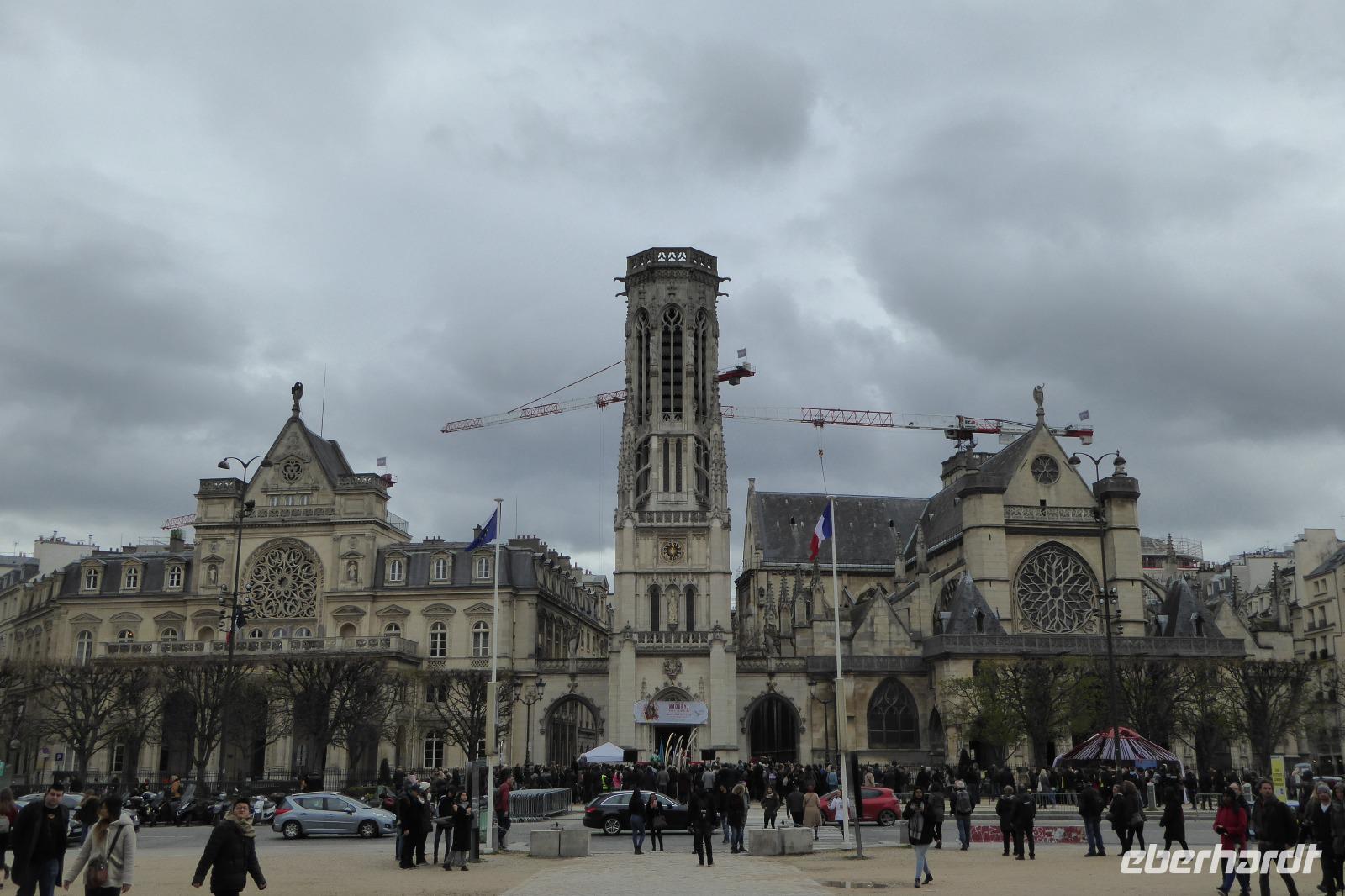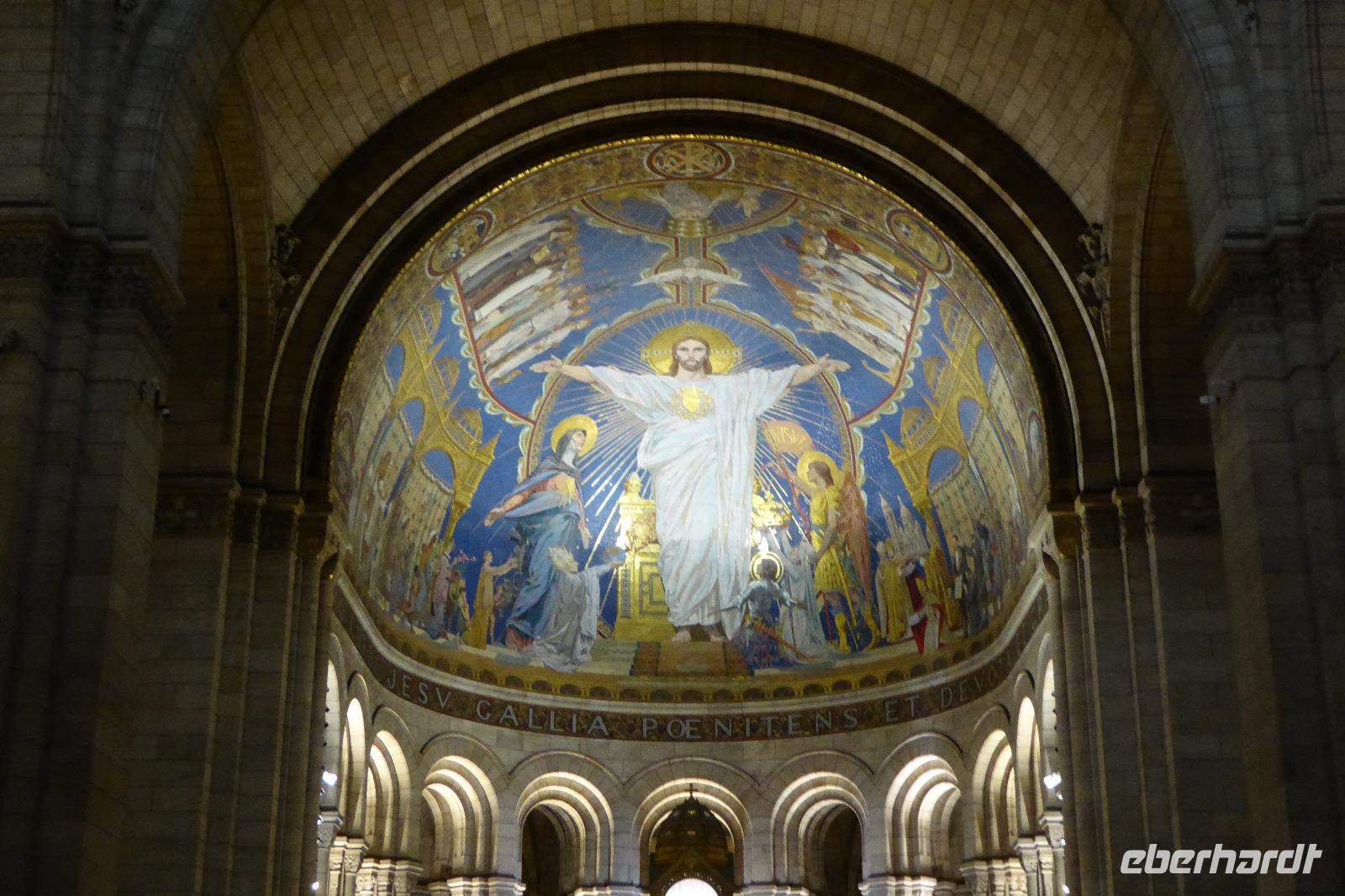 Die päpstliche Basilika Sacre Coeur ist eine im neobyzantinischen Stil gebaute Kreuzkuppelkirche und steht auf dem höchsten Berg von Paris. Das Christus Mosaik in der Kuppel ist mit 475m² eines der größten der Welt. Im Turm hängt die größte Glocke Frankreichs, die Savoyarde, deren Geläut uns in die Mittagspause begleitete.