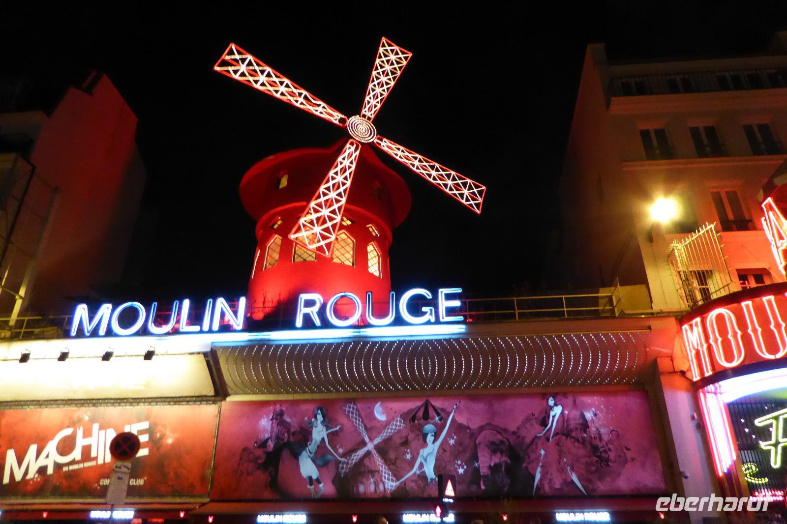 Und mit Champagner ging der Abend weiter: Der Besuch im Moulin Rouge ist sicher der krönende Höhepunkt jeder Parisreise. Ein farbenfroher glitzernder Auftakt, mit Überraschungseffekt sorgt gleich zu Beginn für erhöhte Pulsfrequenz! Man kann sich gar nicht sattsehen an den wirbelden Körpern der Tänzerinnen und Tänzer. Kraftstrotzende Akrobaten, bunte Clowns, Miniaturpferdchen und Rollschuhartisten verbreiten Zirkusatmosphäre. Piraten und Piratinnen entführen unsere Phantasie in ferne Welten und die atemberaubende Tanzschow mit bis zu 60 Akteuren erzählt leichtfüssig und barbusig die Geschichte von Montmartre. Eine Darbietung der Superlative, die in einem furiosen Can-Can gipfelt!