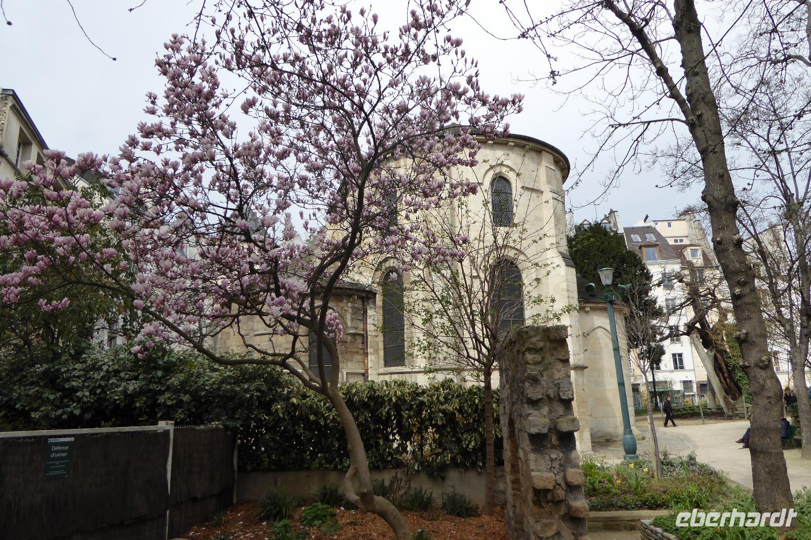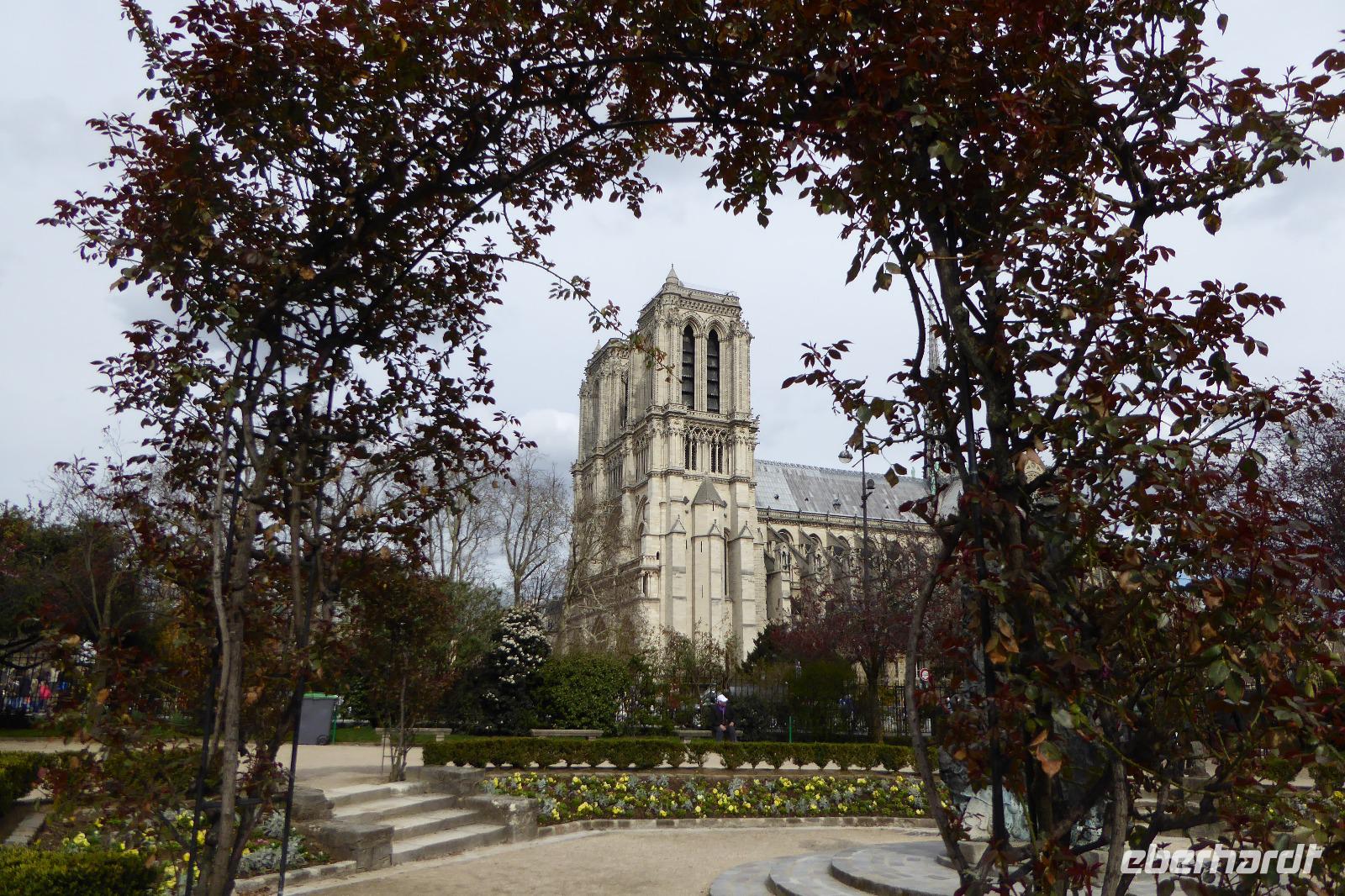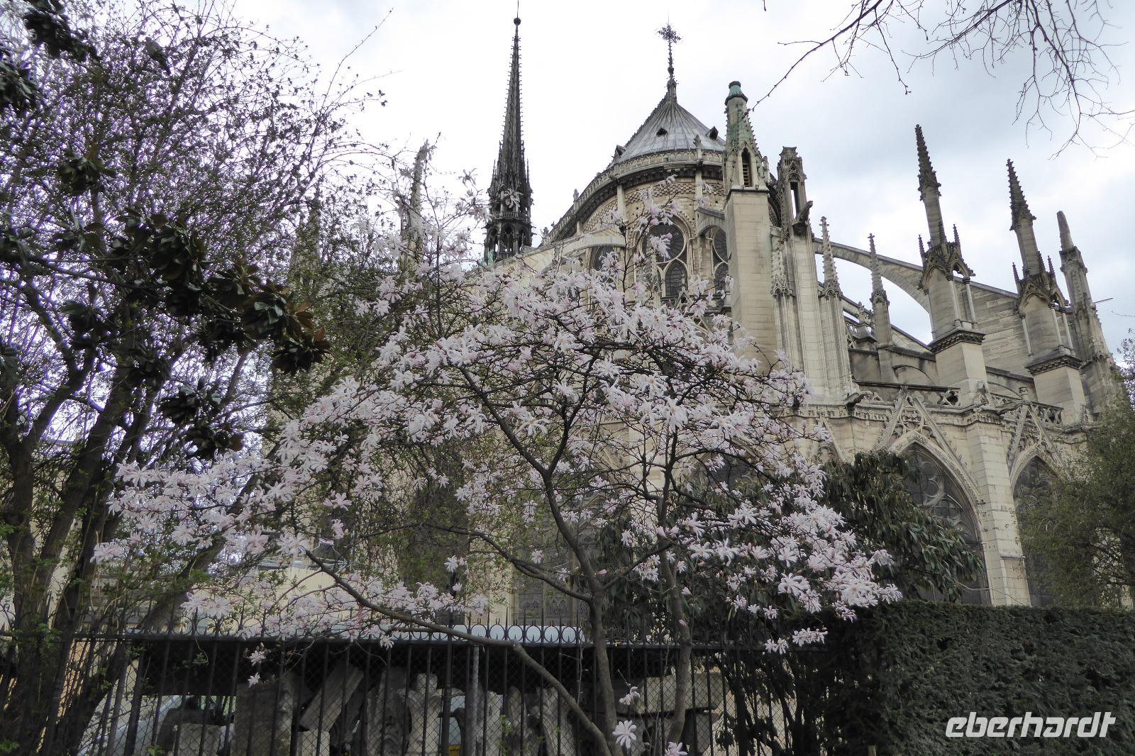 Das schöne Frühlingswetter lockte uns gleich nach der Ankunft in unserem gemütlichen Boutique Hotel, mitten im Quartier Latin, hinein in die quirligen Strassen. An der Kreuzung der beiden großen Strassen, des Boulevard Saint Michel und des Boulevard Saint Germain befinden sich die Reste einer imposanten römischen Therme, die einst die größte Badeanlage nördlich der Alpen war. Dort errichteten im 15. Jahrhundert die Äbte von Cluny ihren prächtigen Palast, der heute von einer kleinen Parkanlage umgeben ist. Eine Oase der Ruhe, inmitten des tosenden Strassenlärms. Hier spielen Kinder selbstvergessen unter blühenden Mandelbäumchen, gut bewacht von ihren `Bonnes`, den Dienstmädchen, die aus dem Alltag wohlhabender Franzosen nicht wegzudenken sind. Die engen Gassen des Quartiers sind voller Menschen aller Nationalitäten, die, wie wir, die bunte Vielfalt der internationalen Restaurants bestaunen. Große Kühltheken mit Meeresfrüchten, Käse und Schinken, leckere Süßspeisen und Gebäcke wecken erste Hungergefühle. Doch zuvor wollten wir Notre-Dame besuchen. Im Park gegenüber, steht der älteste Baum der Stadt. Von da hat man einen herrlichen Blick auf die beiden Zwillingstürme der Kathedrale. Victor Hugo und seiner tragischen Liebesgeschichte um die schöne Esmeralda und Quasimodo ist es zu verdanken, dass die Kirche im 19. Jahrundert restauriert wurde. Erst durch den Erfolg des Romanes erkannten die Pariser den wahren Wert des bis dahin vernachlässigten und baufälligen Gotteshauses! Das sonnige Wetter nutzend, spazierten wir über den Blumenmarkt, auf die andere Seite der Seine Insel, zur Conciergerie. Kirchenmacht und Staatsgewalt, die beiden wichtigen Säulen der vorrevolutionären Gesellschaft, liegen hier dicht nebeneinander.