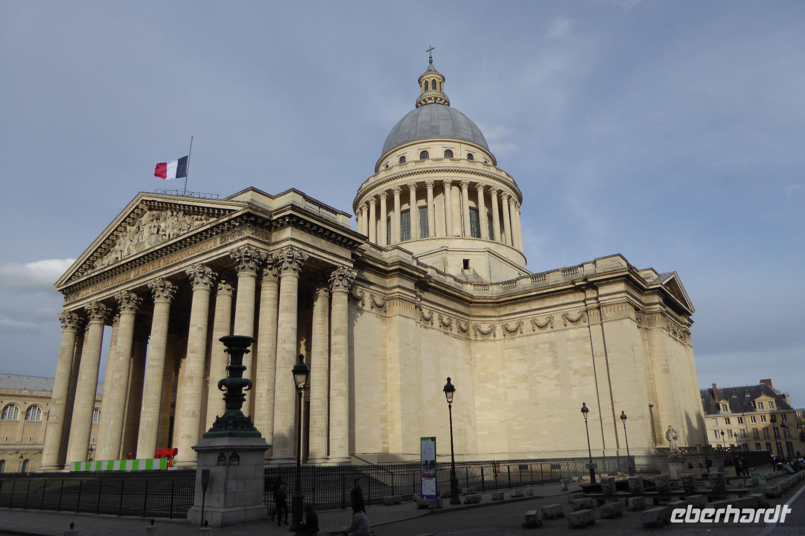In einer winzigen Crêperie sammelten wir neue Kräfte für den Aufstieg zur Kirche St. Étienne du Mont. Dort befindet sich der Reliquienschrein der heiligen Genoveva, die die Stadt vor Atilla dem Hunnen gerettet hat. Der Weg führte uns von der römischen Arena von Lutetia entlang der alten Stadtmauer hinauf zur Rue Mouffetard. Sie ist eine der ältesten Strassen von Paris und an manchen Stellen kann man noch die römische Pflasterung sehen. Ein kleiner Abstecher zum Pantheon, der Ruhmeshalle der Franzosen, durfte natürlich nicht fehlen. Letztes Jahr wurde die französische Politikerin und Holocaust Überlebende Simone Veil hier bestattet. Sie ist erst die vierte Frau, der seit 1791 diese Ehre zu Teil wurde!