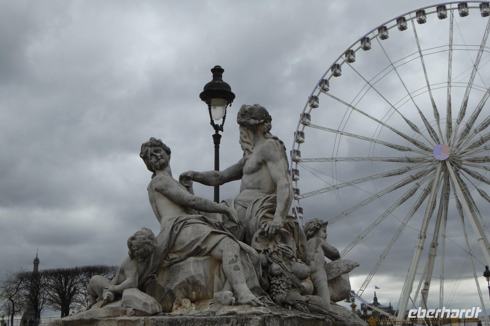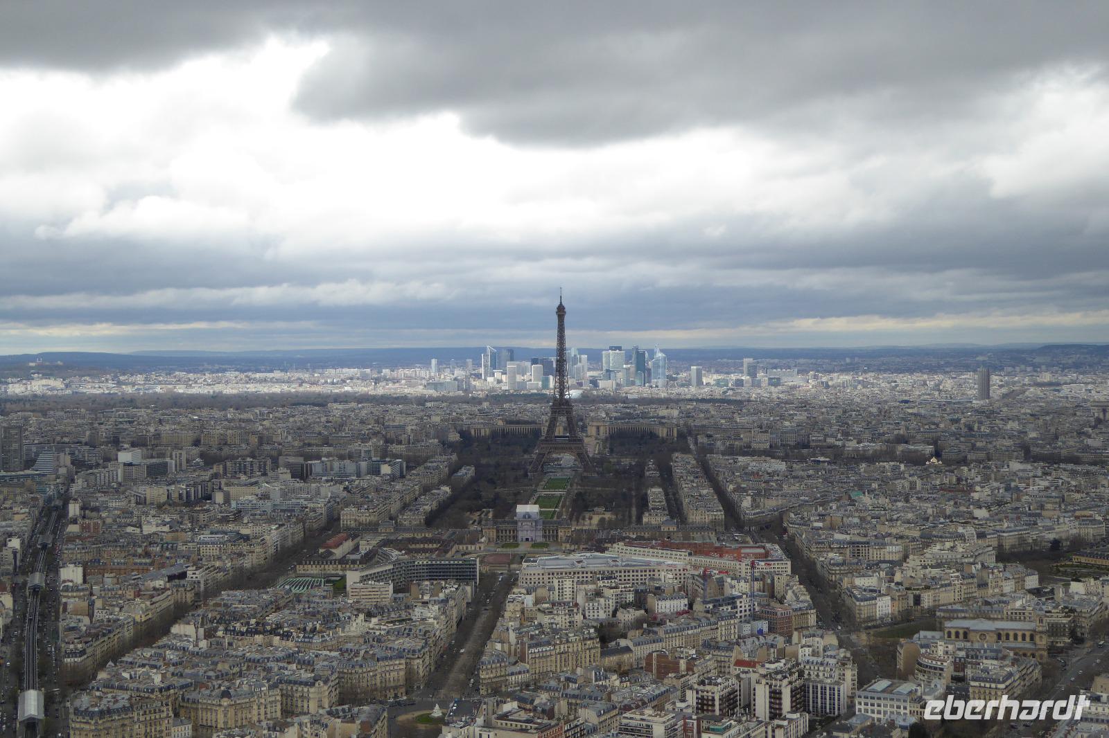Von Westen näherten wir uns wieder der Innenstadt. Der Blick vom Trocadéro auf den Eiffelturm gehört mit zu den schönsten Eindrücken von Paris und bleibt in Erinnerung, wie auch eine atemberaubende Fahrt um den Triumphbogen. Unvorstellbar, wie der Verkehr funktioniert. Zwölf Strassen treffen an diesem verkehrsreichen Kreisel der Place d´Etoile zusammen und hunderte Omnibusse, Lastwagen, PKWs und Motorräder sausen nach einer geheimen Choreographie um das Bauwerk. Die Champs Élysées mit ihren knapp zwei Kilometern Länge verbindet die beiden wichtigen Anker nationaler Idendität, die Place d´Étoile und die Place de la Concorde. Nach einer wohlverdienten Mittagspause fuhren wir mit der Métro zum Tour Montparnasse, um uns bei einem Coup de Champagne. einem Glas prickelden Champagners, die Stadt aus luftiger Höhe von 210 Metern Höhe zu betrachten.