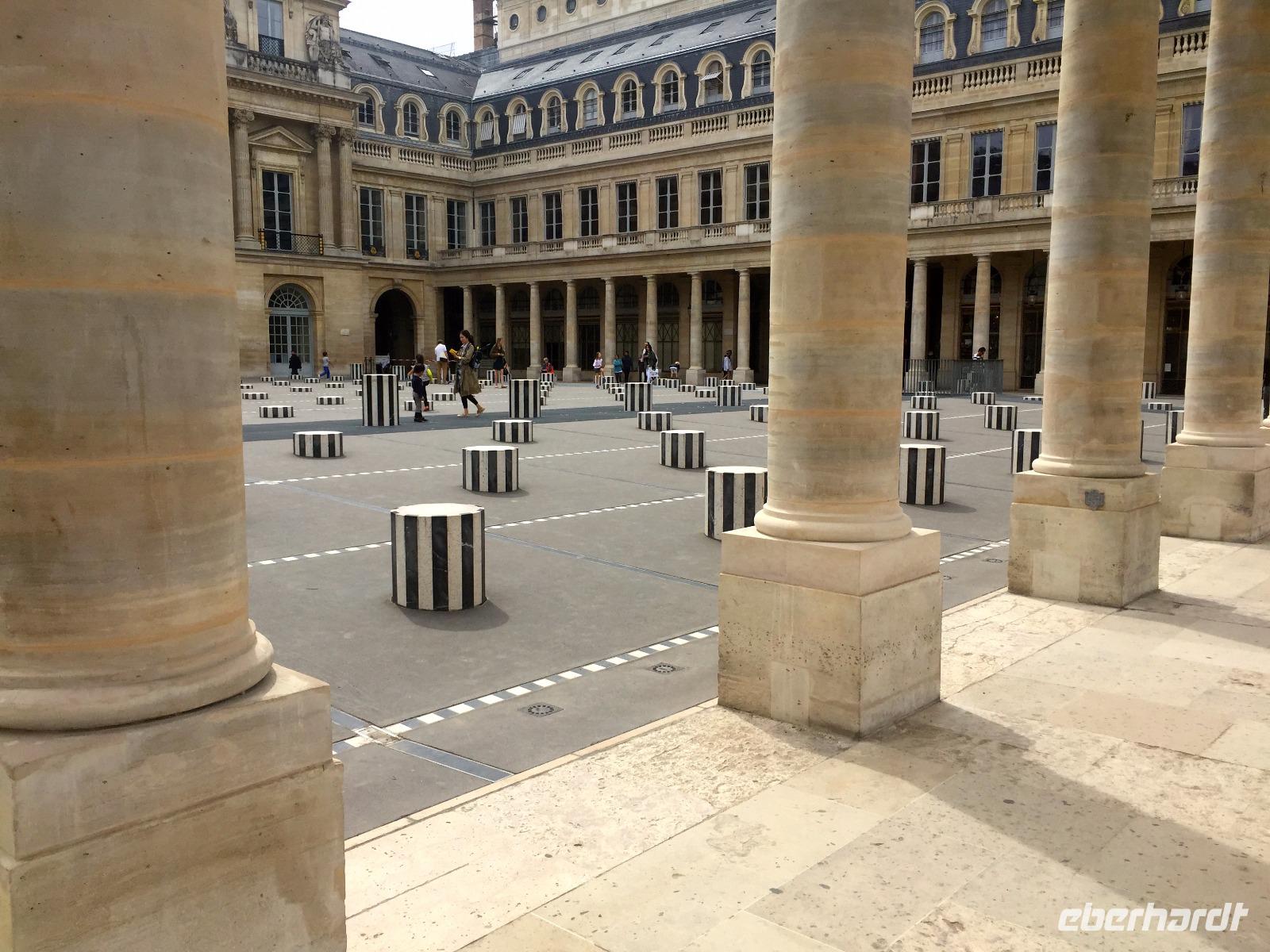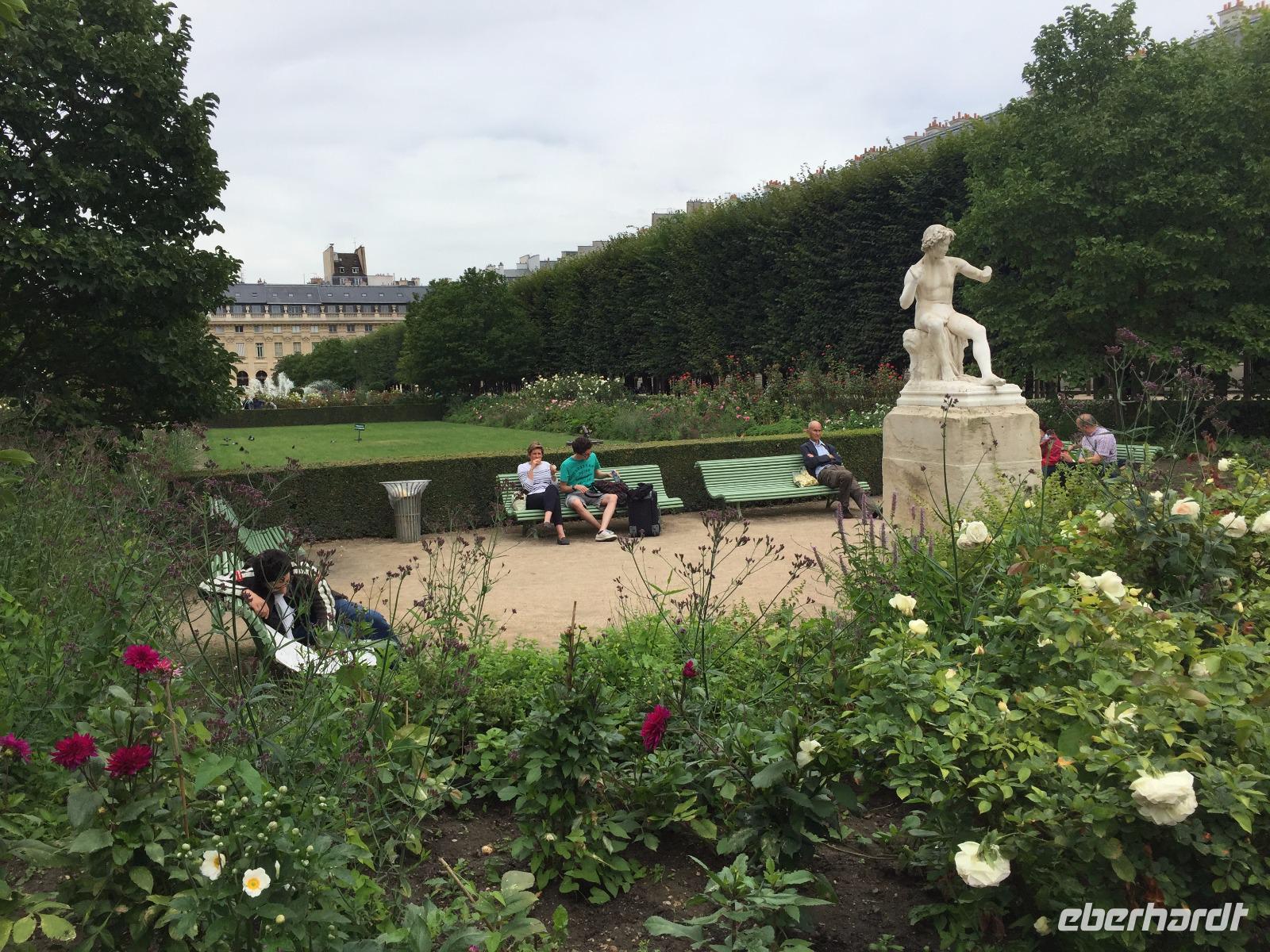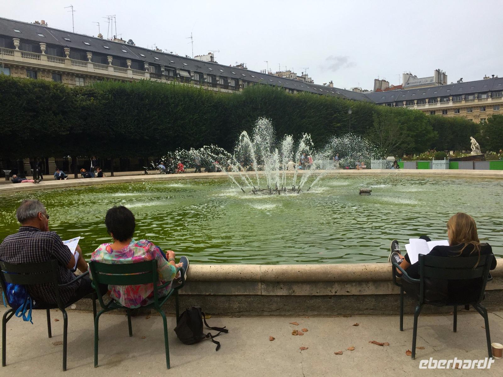Im Anschluss an den Museumsbesuch besuchen wir das benachbarte „Palais Royal", wo der Sonnenkönig Ludwig XIV. seine Kindheitsjahre verbracht hat. Der Garten des Palais ist eine willkommene grüne Oase inmitten des Häusermeeres, die Bänke innerhalb der Heckenkompartimente und rings um den Brunnen sind bei Anwohnern und Paris-Besuchern gleichermaßen beliebt.