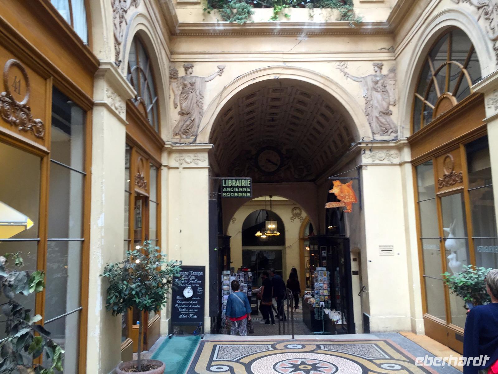 Gegen Ende des 18.Jahrhunderts begann man mit der für Großstädte wie Mailand, Moskau und natürlich Paris typischen Bauform der glasgedeckten Passage, deren Blütezeit in der ersten Hälfte des 19.Jahrhunderts lag. Dank der Erfindung des Eisenträgers konnte man lange Oberlichter konstruieren, die Böden wurden mit Mosaikteppichen im klassizistischen Stil belegt, sodass eine vornehme Atmosphäre entstand, ganz im Gegensatz zu den schmalen ungepflasterten Straßen, die laut, schmutzig und voller Gestank waren. Die Galerie Vivienne und die angegliederte Galerie Colbert sind architektonische Meisterwerke mit Flachreliefs in Holz und einem Glasdach mit mächtiger Kuppel im Kreuzungspunkt zweier Passagen.