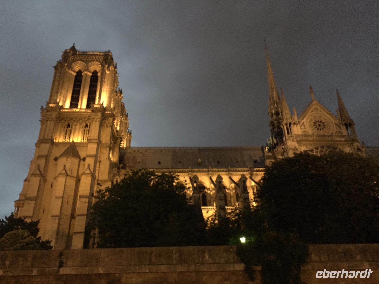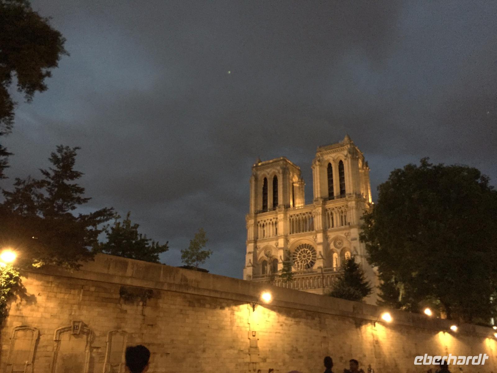 Später unternehmen wir einen kurzen Spaziergang in der noch sehr warmen, fast heißen Abendsonne. Vorbei am bekannten „Théâtre National de l'Odéon" gelangen wir zum Restaurant „Aux Charpentiers" in der Rue Mabillion. Der Name, die Dekoration mit Fotos und Modellen von Holzdachstühlen sowie eine besonders aufwändig gedrechselte Skulptur weisen heute noch darauf hin, dass das Restaurant ehemals der Treffpunkt der Zimmermanns-Zunft gewesen ist. Nach „Quenelles de brochet " (Hechtklößchen), der Spezialität des Hauses und „Baba au Rhum des Antilles" genießen wir den lauen Sommerabend bei einer Bootsfahrt auf der Seine. Wir erleben einen faszinierenden Sonnenuntergang und kurz darauf, mit Einbruch der Dämmerung sind die schönsten Bauwerke dezent angestrahlt und wir lernen die Stadt aus einer neuen, sehr stimmungsvollen Perspektive kennen.