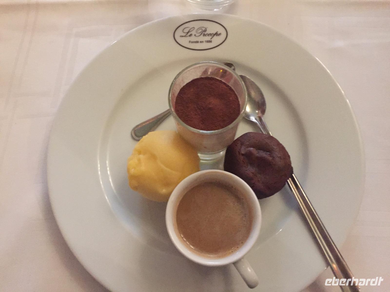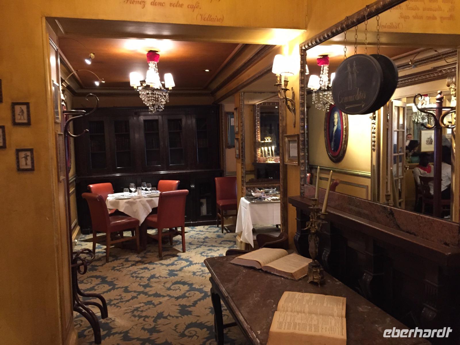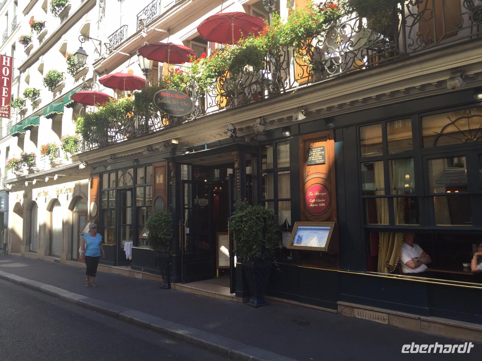 Zum Abschieds-Mittagessen treffen wir uns alle im eleganten „Café Procope" in der Rue de l'Ancienne Comédie. Das älteste Restaurant von Paris war im 17.Jahrhundert Treffpunkt der Intellektuellen, dort verkehrten die Philosophen der Aufklärung, aber auch die Verfechter der revolutionären Gedanken und später die Dichter der Romantik.