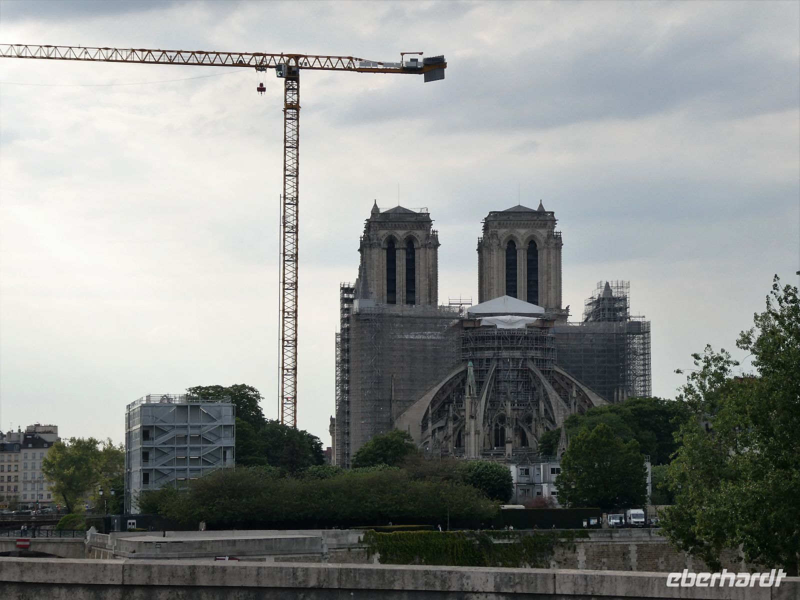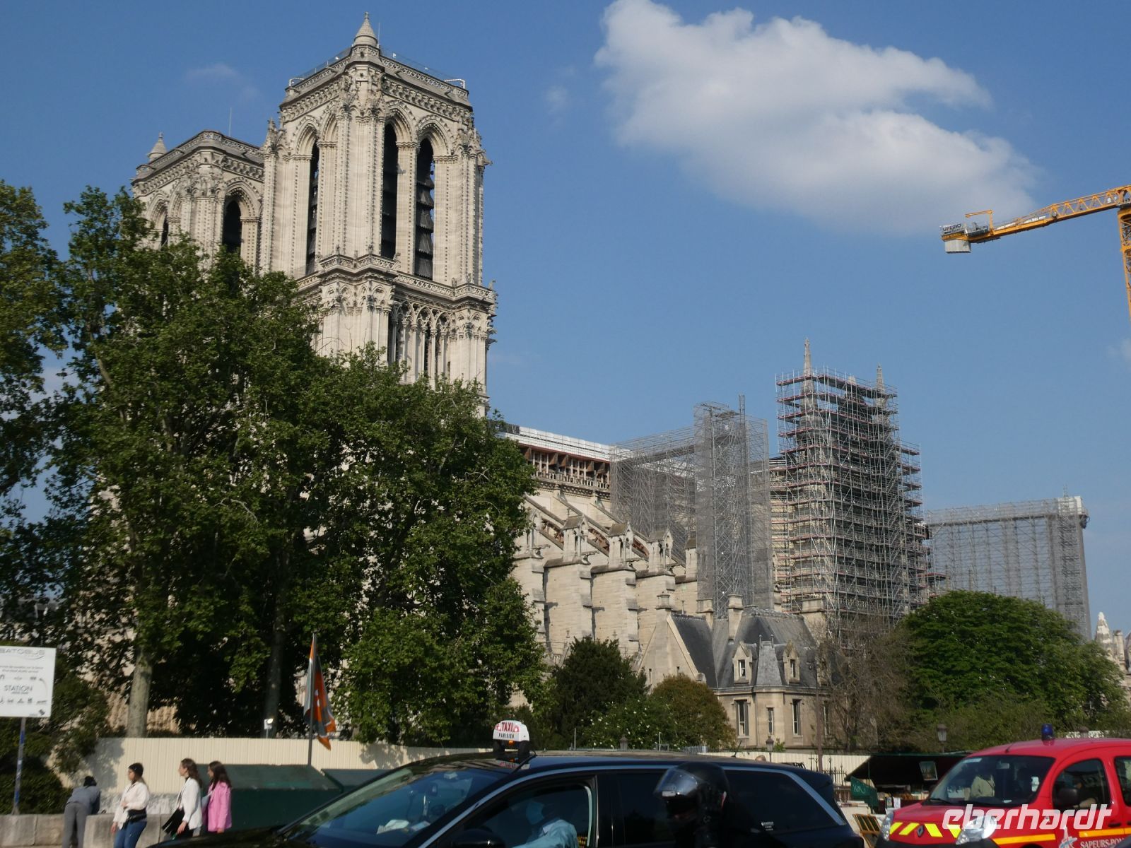 Das Wetter ist prächtig und die Vorhersage lässt ahnen, dass es so bleiben wird. Wir laufen entlang des "St.Germain de Près" wo damals und heute die Cafés der Literaten und Künstler waren und vereinzelt noch sind. Da es aber schon spät am Nachmittag ist steuern wir gleich auf die Seine zu welche die Stadt in ein linkes und rechtes Ufer teilt. Die Seine als Verkehrsweg war vielleicht auch der Grund dafür, dass es in dem "römischen Paris" keinen Decumanus gab, eine Straße welche eine römische Stadt von ost nach west durchzog. Die Römer, welche die Stadt "Lutecia" von den Kelten eroberten, bauten an diesem linken Seine-Ufer Thermen, welche heute in einem Museum integriert sind. Vorbei an der Kirch St. Germain können wir dann einen ersten Blick auf die Baustelle der "Notre-Dame" werfen. Die wunderbare gotische Kathedrale, welche ein Opfer der Flammen wurde, wird wieder aufgebaut und man kann auf die Neueröffnung gespannt sein. Baukräne künden von den Baumaßnahmen. Wir werfen von Weitem einen Blick auf das "Institut du Monde Arabe" mit dessen Bau der Architekt "Jean Nouvel" seinen Durchbruch hatte. Er hat als Krönung seines Schaffens den neuen Louvre von Abu Dhabi meisterlich konzipiert. Der Louvre von Paris allerdings wartet in den nächsten Tagen auf uns.