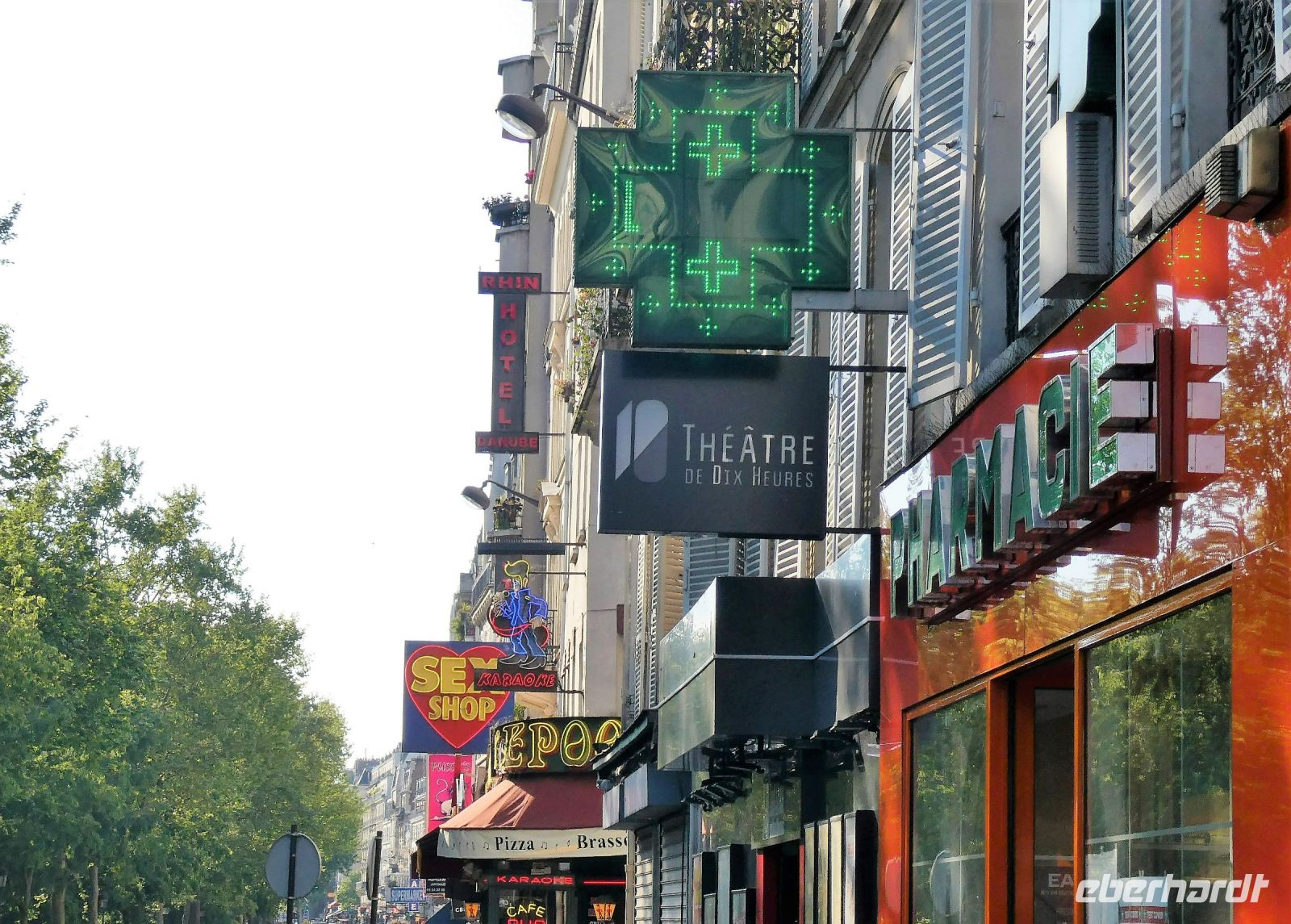 Am Abend nehmen wir für die Hinfahrt die Metro und steigen eine Station früher aus, um ein wenig Atmosphäre zu schnuppern. Unser Ziel ist heute abend nicht das ehemalige Dorf "Montmartre" sondern das berühmte "Moulin Rouge" welches schon der Maler Toulouse-Lautrec in seinen Bildern verewigt hat. Wir laufen von der "Place Pigalle" entlang des "Boulevard de Clichy" welches früher der Inbegriff des verruchten großstädtischen Lebens war.