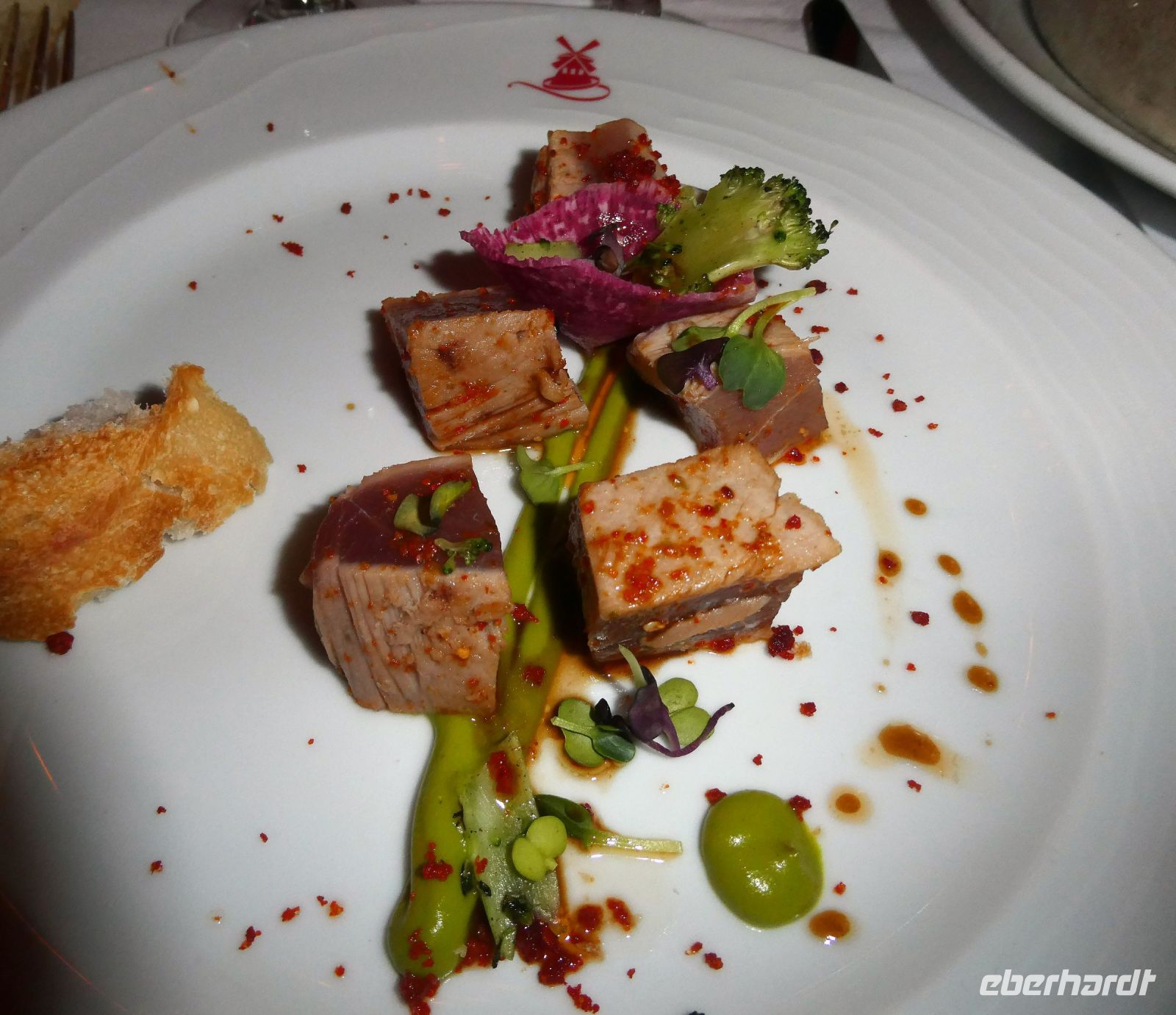 Wir bekommen einen Tisch zugewiesen und schon bald startet der erste Gang unseres Menus. Nach einer etwas leichteren, das Essen begleitenden Unterhaltung, beginnt eine rasante Bühnenshow mit Äthetik und Akrobatik die ihresgleichen sucht. Wir sind alle angenehm überrascht, haben wir doch eher diverse Cancan-Interpretationen erwartet. Federn und barbusige "Revuegirls" (und -boys) gab es auch aber die Mischung aus Tanz, perfekter Darbietung und Äthetik welche geboten wird, überrascht uns. Ein gelungener Tagesabschluß! und ................Fotografieren streng verboten!