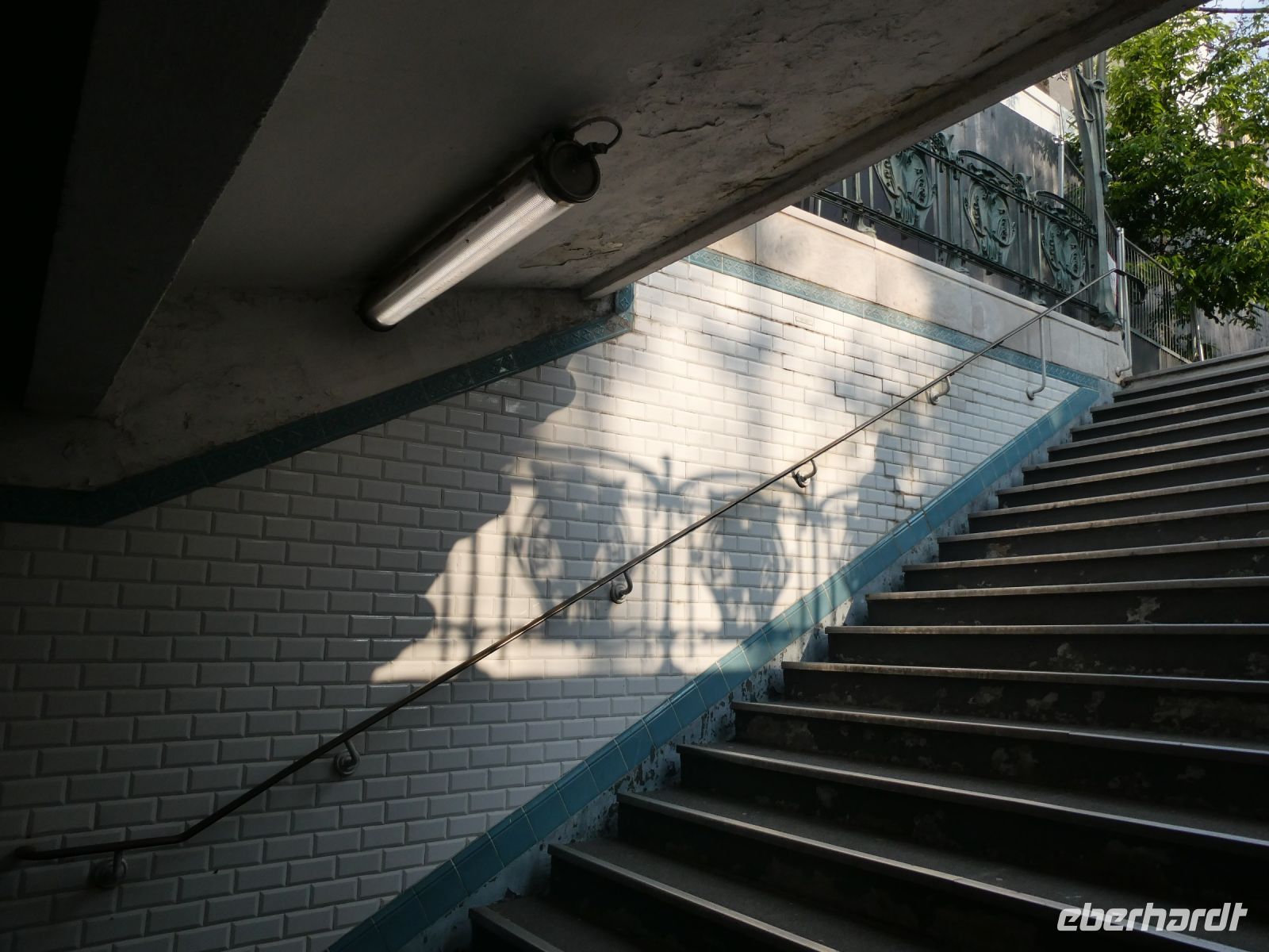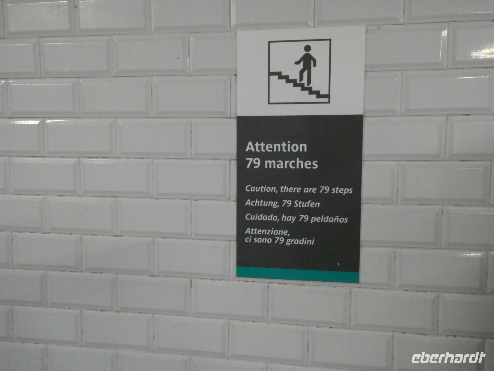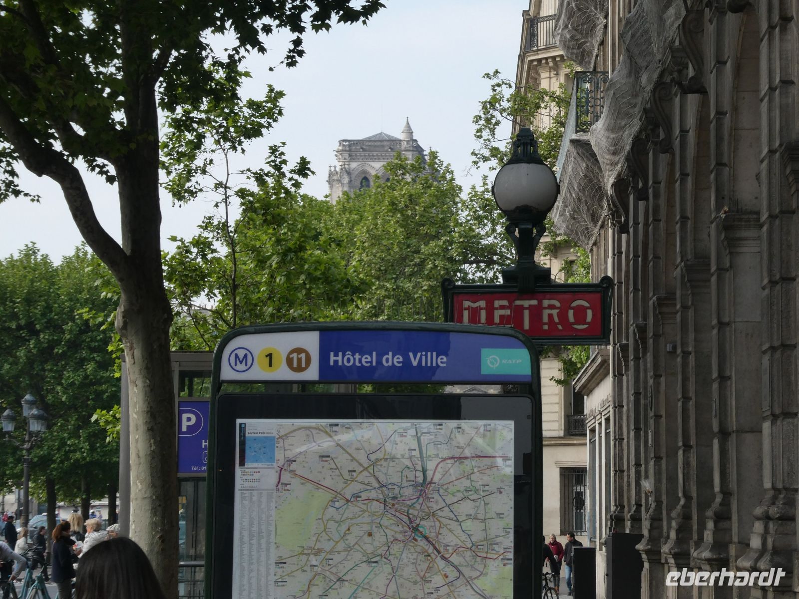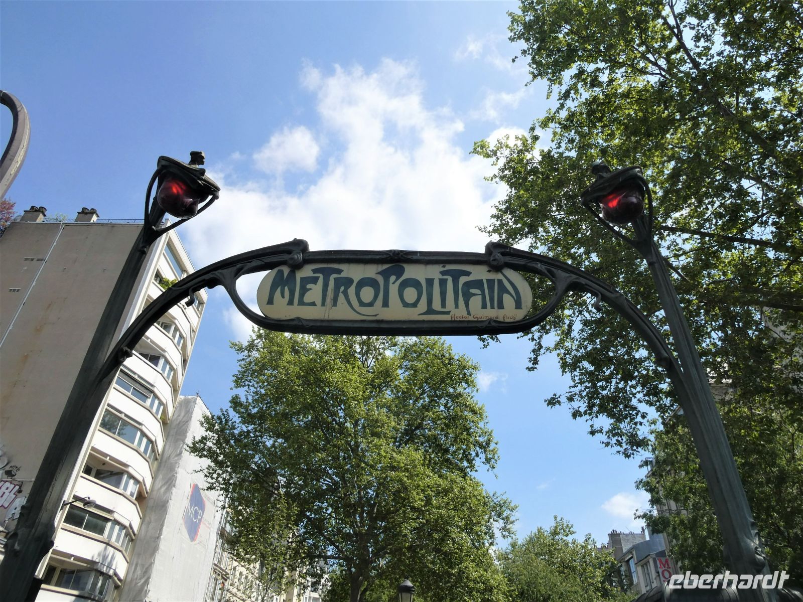 Nachdem wir uns bei einem üppigen Frühstück gestärkt haben, geht es los zu unserem ersten Metro-Abenteuer. Die Pariser Metro wurde 1900 anläßlich der Weltausstellung eröffnet und war wohl die sechste U-Bahn der Welt. überhaupt. Wir nehmen unsere Karte und bekommen erst einmal eine Einweisung für die Benutzung. Die Metro ist das beste Verkehrsmittel und man kommt so ziemlich überall hin. Die Züge haben eine hohe Frequenz und auch die Stationen sind nahe beeinander. Allerdings gibt es im Moment ein paar Bauarbeiten und demnach einige Einschränkungen, was besonders die Linie M1 betrifft. Das werden wir heute im Laufe des Tages noch merken. Für die Sicherheit der Fahrgäste hat man die meisten Bahnhöfe heute mit Plexiglasbarrieren zu den Schienen gesichert. Auch Selbstmörder sollen so vom tödlichen Sprung abgehalten werden.