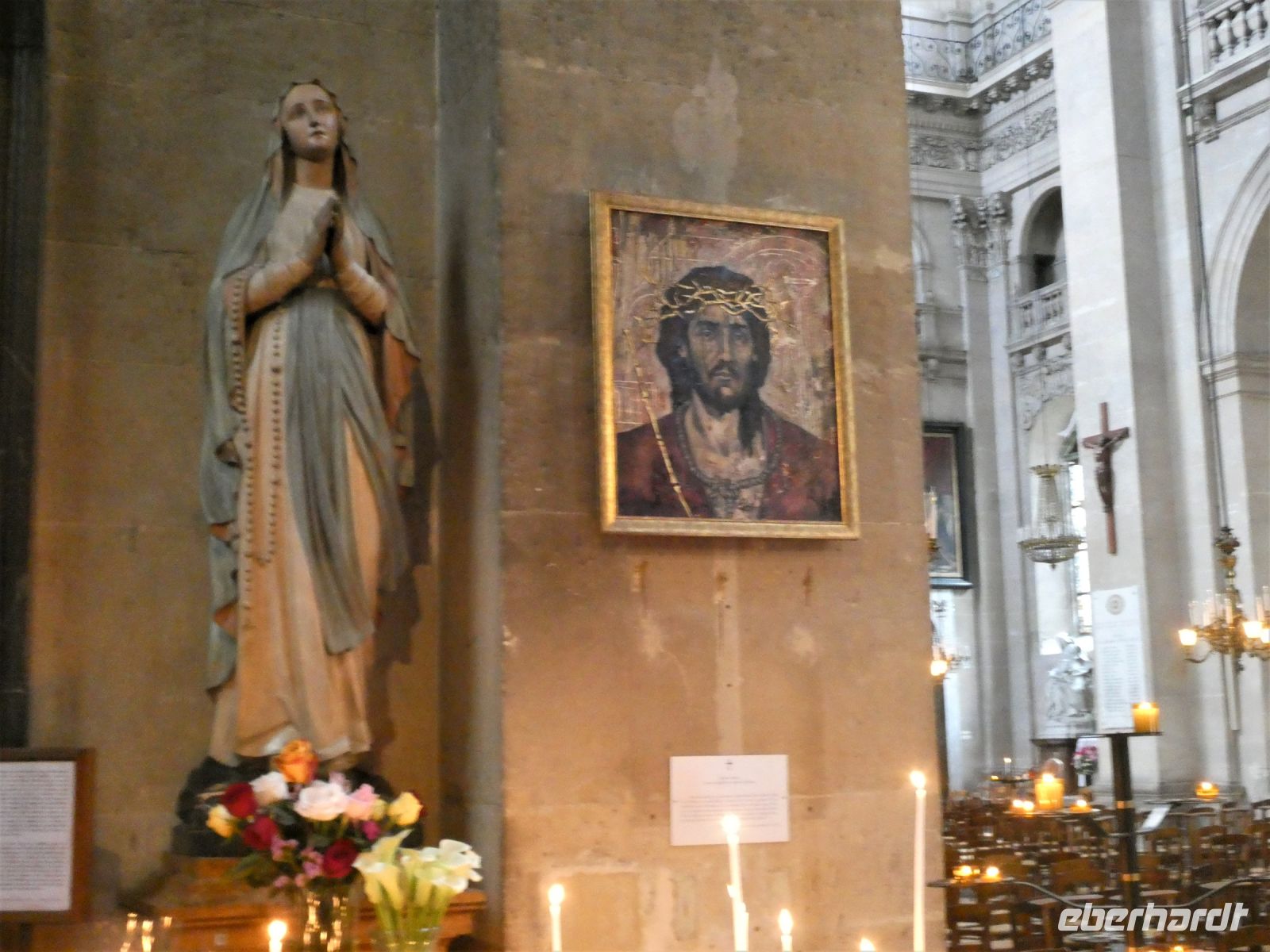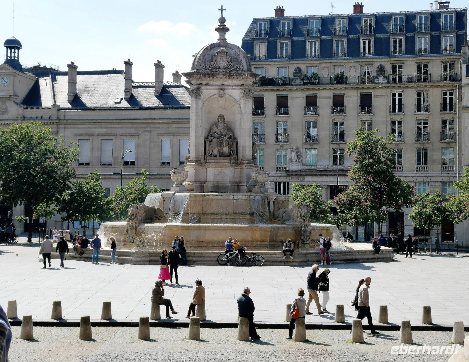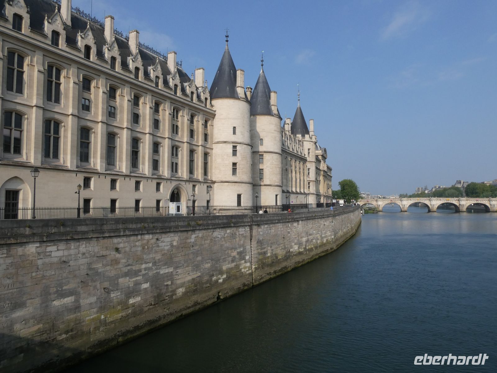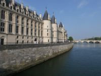 Unser erster Halt ist die Station "Cité" welche sich auf der "Ile-de-la-Cité" befindet. Wir steigen an die Oberfläche und befinden uns auf einer der Inseln von Paris, ihrem ältesten Teil. Wir befinden uns an dem Blumenmarkt, dessen Stände gerade eröffnet werden und können einen Blick auf Notre-Dame auf der einen Seite und der "Conciergerie" und der Kirche "St. Chapelle" auf der anderen Seite werfen. Hier in der Palastburg des Mittelalters und späteren Gefängnisses befand sich auch das Revolutionsgericht. Im Laufe von wenigen Jahren wurden hier insgesamt 2700 Gefangene verurteilt und dann später hingerichtet. Auch "Marie-Antoinette" die als Frau von "Ludwig XVI." ebenfalls unter dem Fallbeil landete, verbrachte hier ihre letzten Stunden. Die Kirche "St. Chapelle" gilt mit ihren gotischen Fenstern als eine der schönsten Kirchen von Paris wenn nicht von ganz Frankreich, grüßt als ein Musterbeispiel gotischer Kunst. Hier werden heilige Reliquien verwahrt. Die riesigen Glasfenster sorgen für ein besonderes Licht. Wir verlassen die Insel und gehen zu Fuss zu dem Ziel der Jakobspilger sollten sie nach Paris kommen. Der "Tour St.Jacques", welcher ein Überbeibsel der gleichnamigen Kirche ist, gehörte zur offiziellen Kirche der Schlachter. Trotz ihrer Widmung war sie die Versammlungskirche der Jakobspilger die sich hier auf dem Weg nach Santiago de Compostella trafen. Blaise Pasqual führte hier Luftdruckmessungen durch.