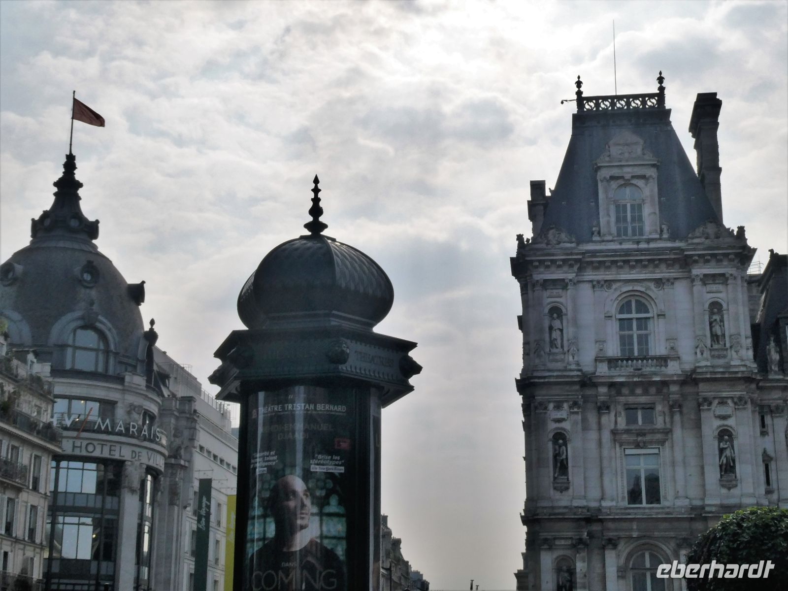 Wir werfen noch einen Blick auf das "Hotel de Ville" aus dem 16.Jahrhundert, was Rathaus bedeutet. Es wurde im 19.Jahrhundert nach einem Brandanschlag in seinem ursprünglichen Stil wieder aufgebaut. Hotel hat in Frankreich in den meisten Fällen nichts mit einem Hotel in herkömmlichem Sinne zu tun, sondern bezeichnet ein großes Palais. In dem hier beginnenden Viertel des Marais gibt es zahlreiche solcher Stadtpaläste, deren Besuch wir am vorletzten Tag auf unserem Programm haben. Wir steigen hier wieder in die Metro bis zum Palais Royal/Louvre.