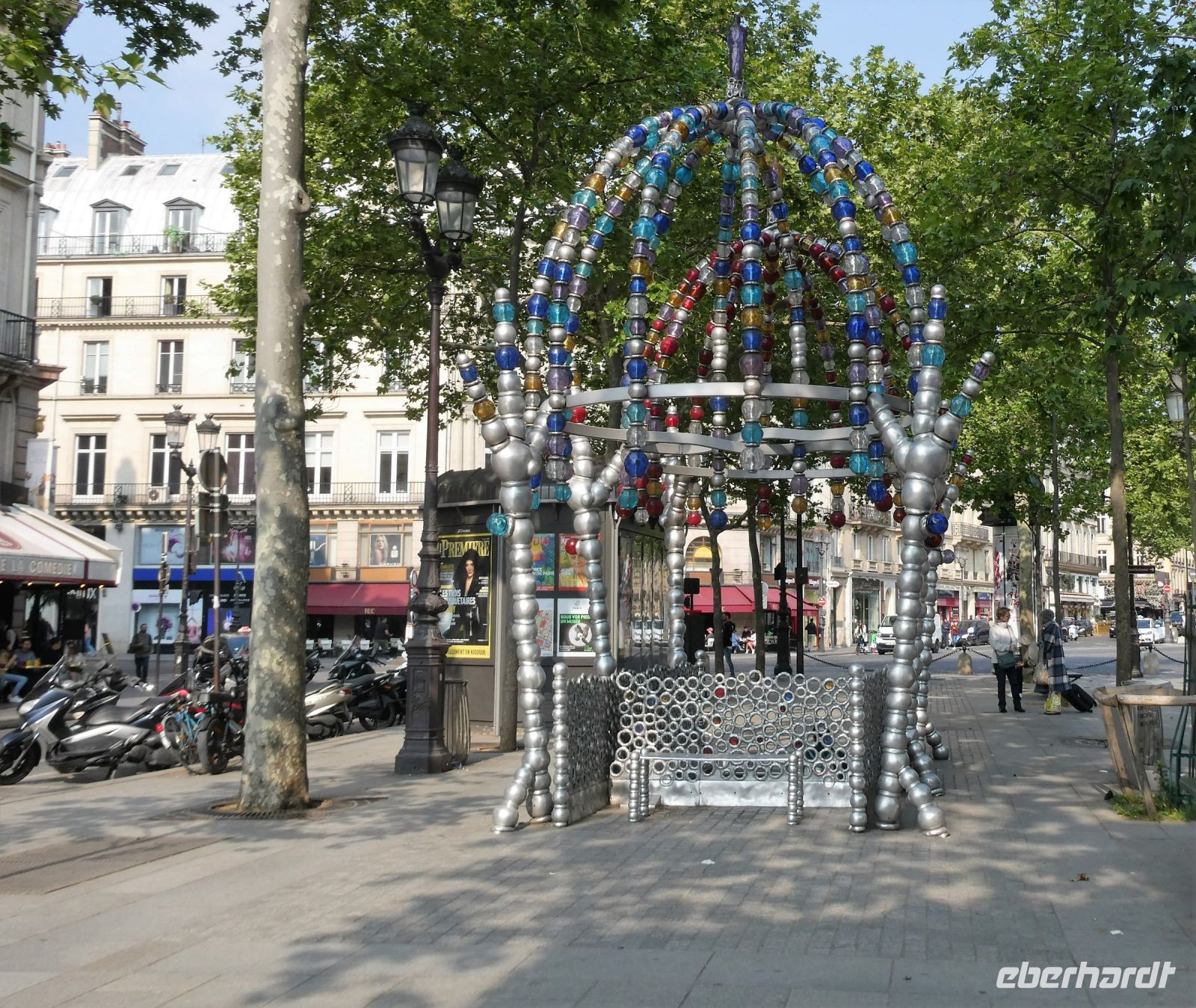 Hier im Palais Royal hatte einst der "Kardinal Richelieu" seine Residenz, später war es ein Ort des Vergnügens und des Lasters. Auf dem Place Colette vor der "Comédie Francaise" hat ein Künstler einen Metro-Eingang mit Kugeln aus Murano-Glas gestaltet ("Le Kiosqu des Noctambules").