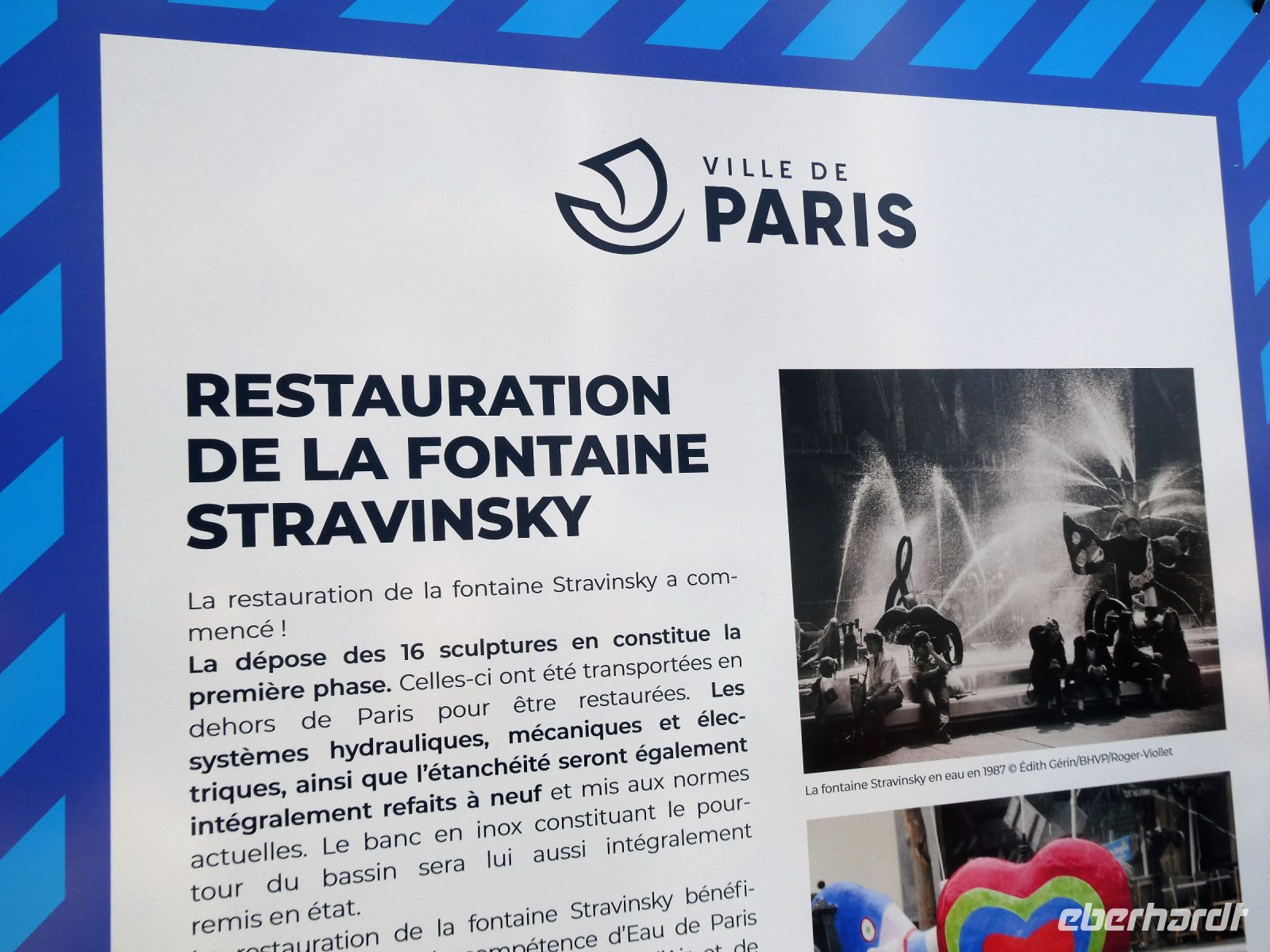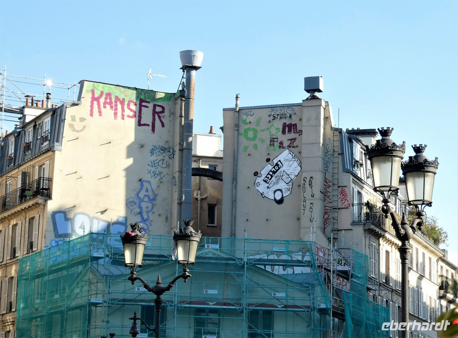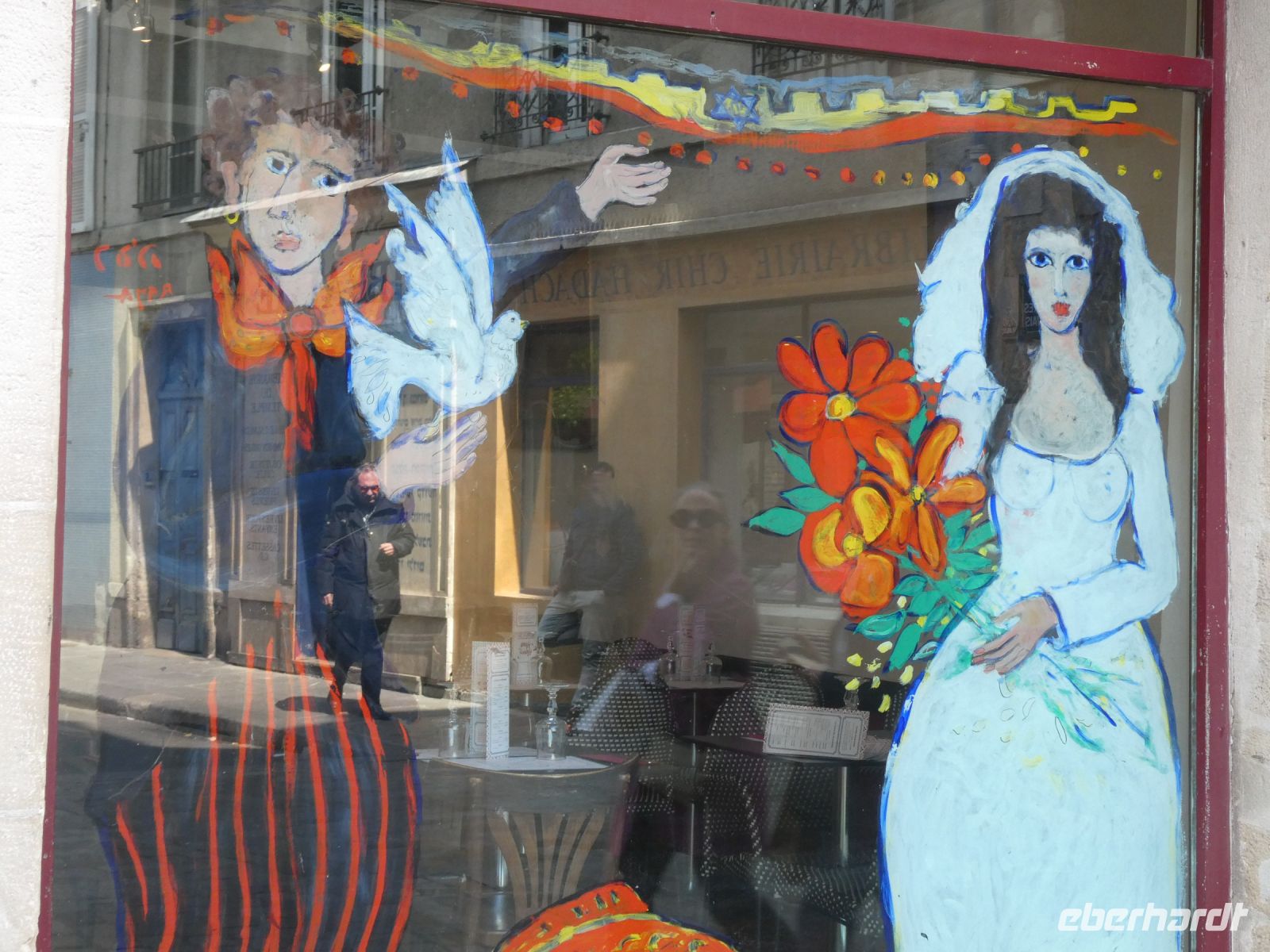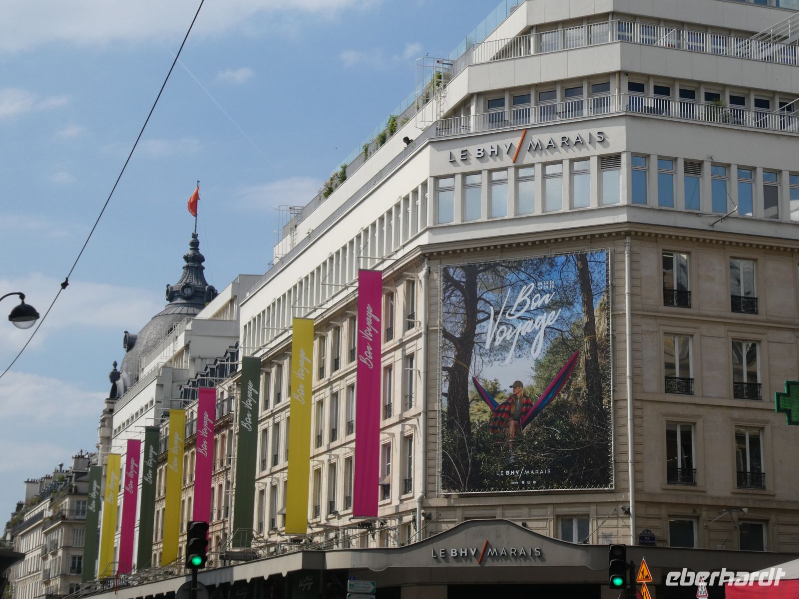 liegt ebenfalls auf dem Weg. Die Architekten haben im Auftrag von Georges Pompidou mit diesem Gebäude ein avantgardistisches Bauwerk mit Stahlgerüst, Glaswänden und intensiver Farbgebung realisiert. Die Versorgungsleitungen und Heizungsschächte hat man bewußt nach Außen verlegt um im Innenbereich Platz zu schaffen: pro Etage 7500 qm. Die Farben der Versorgungsleitungen bestimmen die Funktion. Blau: Heizung und Entlüftung, Grün: Wasser- und Gasleitung, rot: Aufzüge und Rolltreppen, Gelb: Elektrik. An der Außenwand: eine Rolltreppe in Plexiglasröhre. Das Gebäude wurde generalsaniert und der von dem Schweizer Bildhauer Jean Tinguely zusammen mit seiner Lebenspartnerin, der französischen Künstlerin Niki de Saint Phalle, entworfene Brunnen ist leider im Moment nicht an seinem Platz. Weiter kommt man in das heutzutage sehr turbulente Viertel des Marais. Bis zum 17.Jahrhundert ein Viertel des Adels und er reichen Leute findet man sehr viele sog. Hotels, Palastartige Residenzen. Das ehemals sumpfige Gelände (Marais bedeutet Sumpf) wurde von den Templern und anderen Ordensgemeinschaften ab dem 12.Jahrhunder urbar gemacht. Nachdem Henr IV. den Place de Vosges hatte anlegen lassen wurde das Viertel zum Zentrum der Intellektuellen und Kunst und Literatur konnte sich entfalten. Zur Thronbesteigung Ludwigs XIV. erlebte das Viertel seine Blütezeit, mit seinem Umzug nach Versailles begann der Verfall. Seit dem Gesetz zur Erhaltung französischen Kulturgutes erlebt das Viertel eine Renaissance. Auch die Juden fanden im Marais-Viertel eine Heimat. Die "Rue des Rosiers" kündet mit ihrem kosheren Restaurantangebot, Bäcker und Buchläden von jüdischer Kultur.