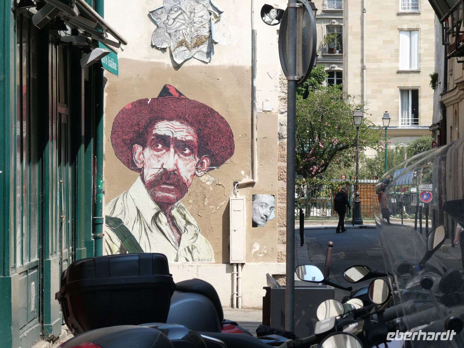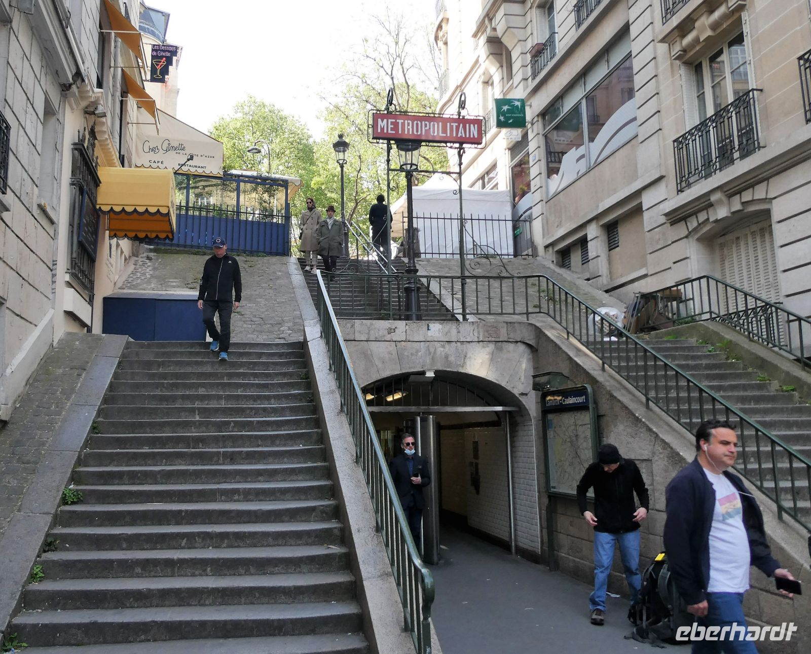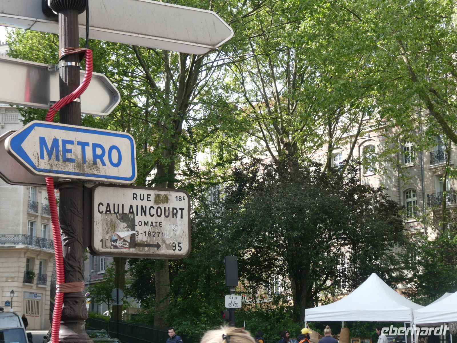 Heute schlafen wir etwas länger, denn der Abend gestern war es ebenfalls. Heute wollen wir den oberen Teil des Montmartre erkunden. Der Bezirk blieb eines der Pariser Dörfer, in welchem die Zeit ein wenig stehen geblieben zu sein scheint. An der Metro-Station Lamarck-Coulaincourt steigen wir 79 Stufen nach oben. Vor dem Bahnhof steht eine Blumenverkäuferin mit Maiglöckchen: heute ist der 1. Mai der hier, ebenso wie bei uns, mit Demonstrationen und Krawallen begleitet wird. Wir bekommen allerdings davon wenig mit. Doch Achtung: jetzt in die richtige Richtung laufen. Erst geht es einmal nach oben auf einen kleinen Platz wo uns ein Flohmarkt erwartet. Wir nehmen uns 20 Minuten um ein wenig über den Markt zu spazieren. Liebhaber für alte, kostbare oder einfach nur witzige Dinge werden in Paris allemal fündig. Allerdings muss man sich dafür mehr Zeit nehmen als wir haben und so bleibt es einfach beim Schauen. Wir besuchen anschließen den schönen, kleinen Friedhof, den "Cemetière St. Vincent". Neben dem berühmten "Cemetière de Monmartre" wo zahlreiche Berühmtheiten wie u.A. Heinrich Heine, Emile Zola und die Sängerin Dalida ("Parole, parole, parole" mit Alain Delon) begraben sind (und dem ebenso berühmten Friedhof Père Lachaise dessen Insassenverzeichnis sich wie das who'is who der Welteliten aus Politik und Kunst liesst - nur ein Beispiel: Grab von Jim Morisson (Leadsänger der Doors)) ist das hier ein kleiner Friedhof mit zahlreichen Familien- und Künstlergräbern. Sie alle lebten hier und waren mit ihrem "Viertel" eng verbunden so wie der Maler Utrillo, der ist als einziger bekannter Künstler hier beerdigt ist. Es ist schön an diesem sonnigen Morgen hier herumzuspazieren.