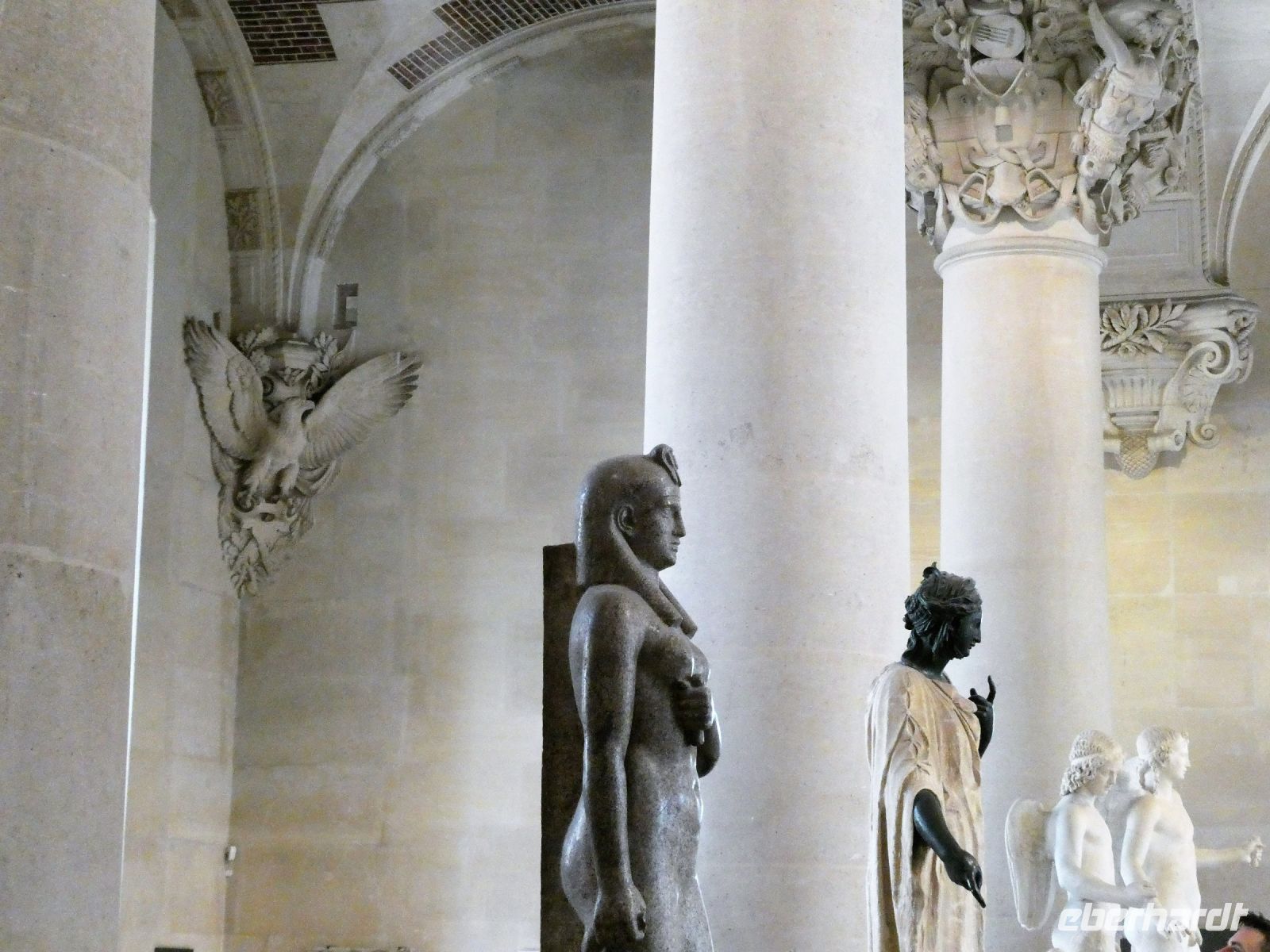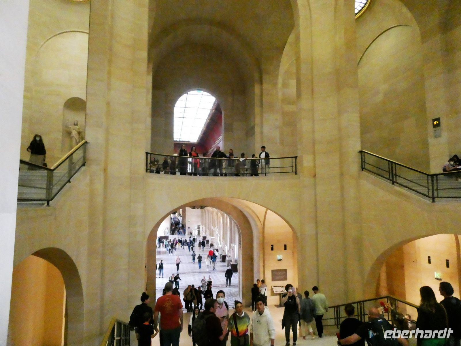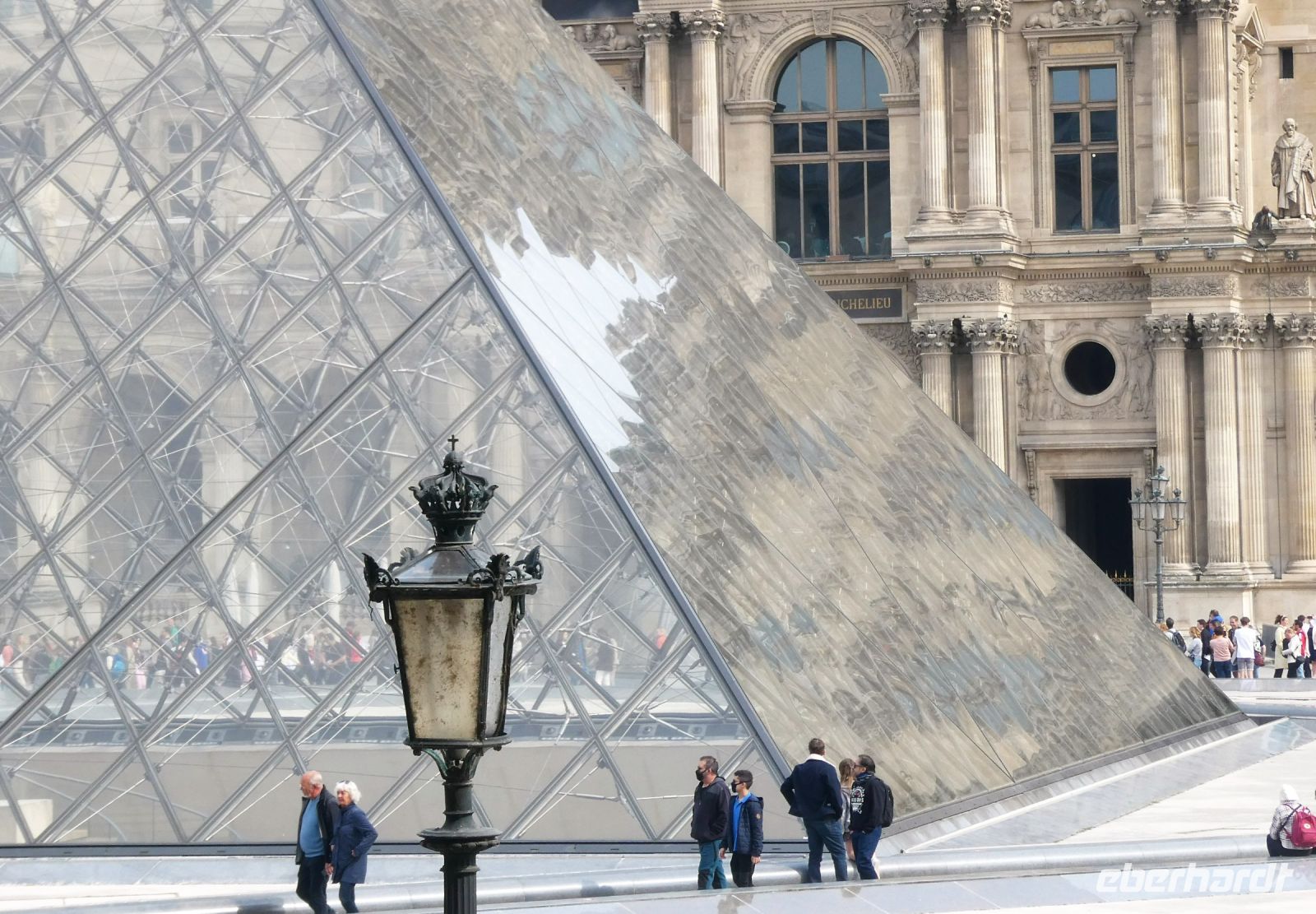 Am heutigen Montag steht der Besuch des wohl berühmtesten Museums von Paris auf dem Programm. Mit den vorreservierten Eintrittskarten für die Ausstellung des Louvre betreten wir das Museum von der Einkaufsgalerie die sich unterhalb des Gebäudes befindet. Luxuriöse Ausstattung der Einkaufspassage und der Empfangshalle an den Rolltreppen zeugen von einem erlesenen Geschmack der Institution. Alles verläuft glatt und wir sind froh zu den früheren Gästen zu gehören. Am Anfang hält sich der Besucherstrom noch in Grenzen, was sich im Laufe des Vormittags ändert.