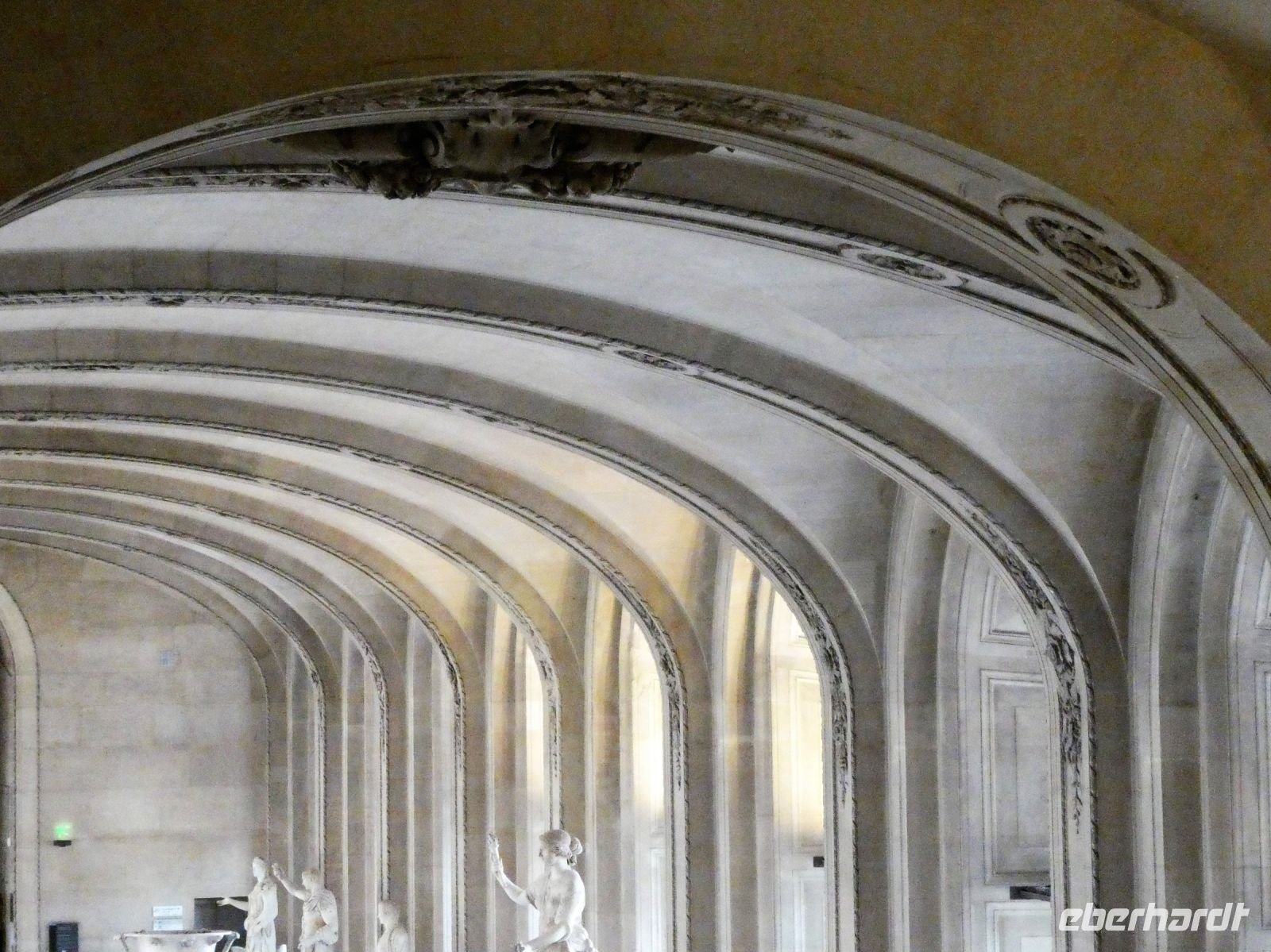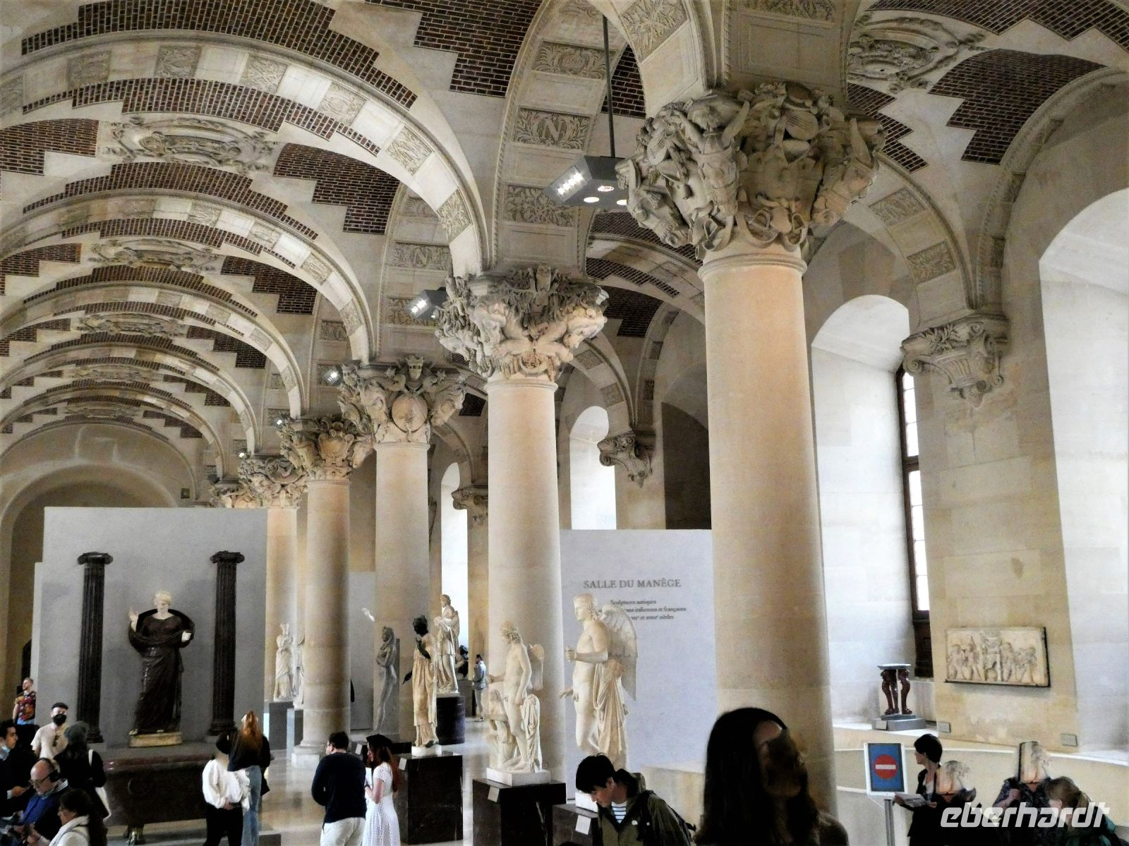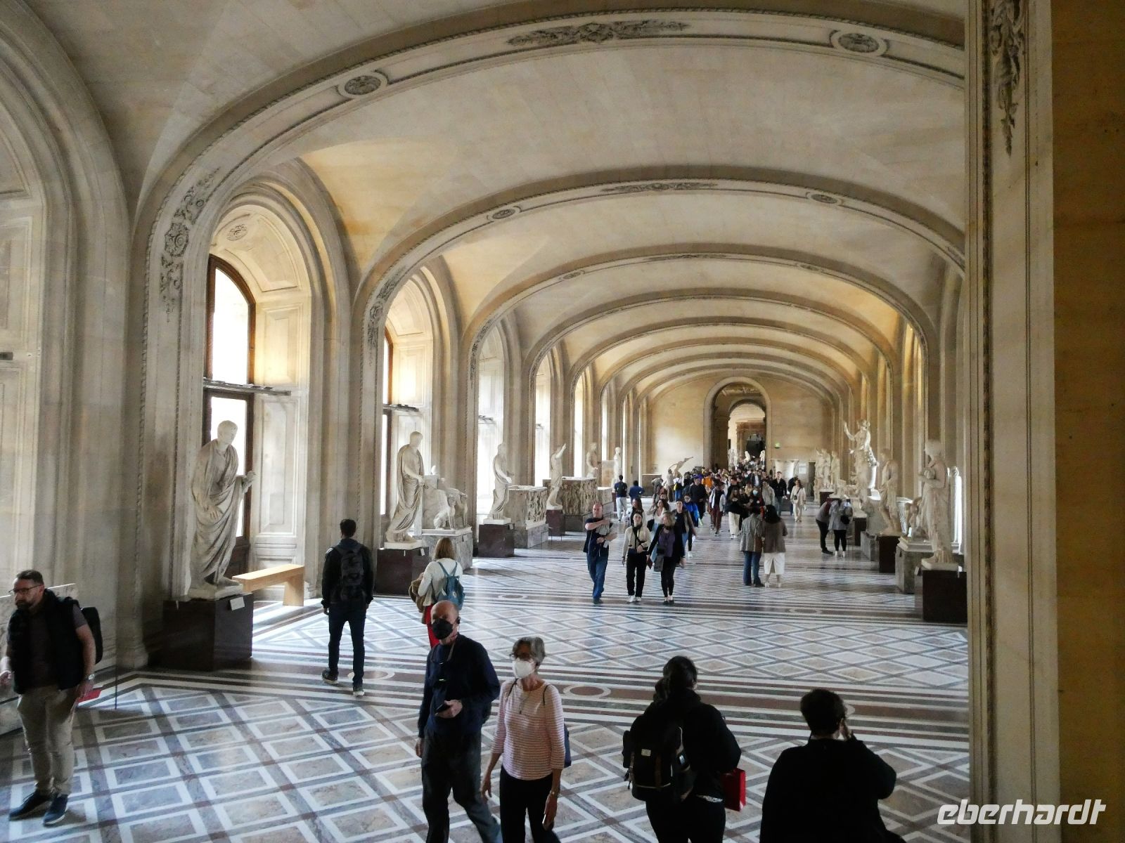 Am heutigen Montag steht der Besuch des wohl berühmtesten Museums von Paris auf dem Programm. Mit den vorreservierten Eintrittskarten für die Ausstellung des Louvre betreten wir das Museum von der Einkaufsgalerie die sich unterhalb des Gebäudes befindet. Luxuriöse Ausstattung der Einkaufspassage und der Empfangshalle an den Rolltreppen zeugen von einem erlesenen Geschmack der Institution. Alles verläuft glatt und wir sind froh zu den früheren Gästen zu gehören. Am Anfang hält sich der Besucherstrom noch in Grenzen, was sich im Laufe des Vormittags ändert.