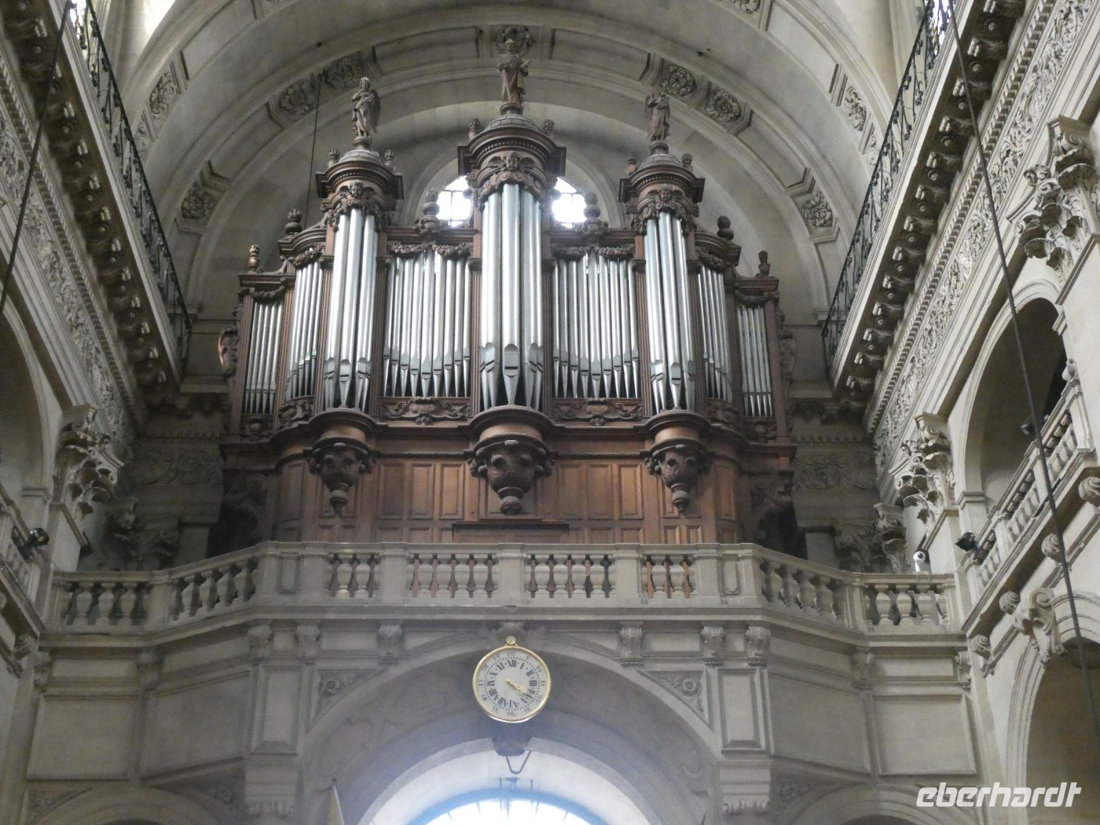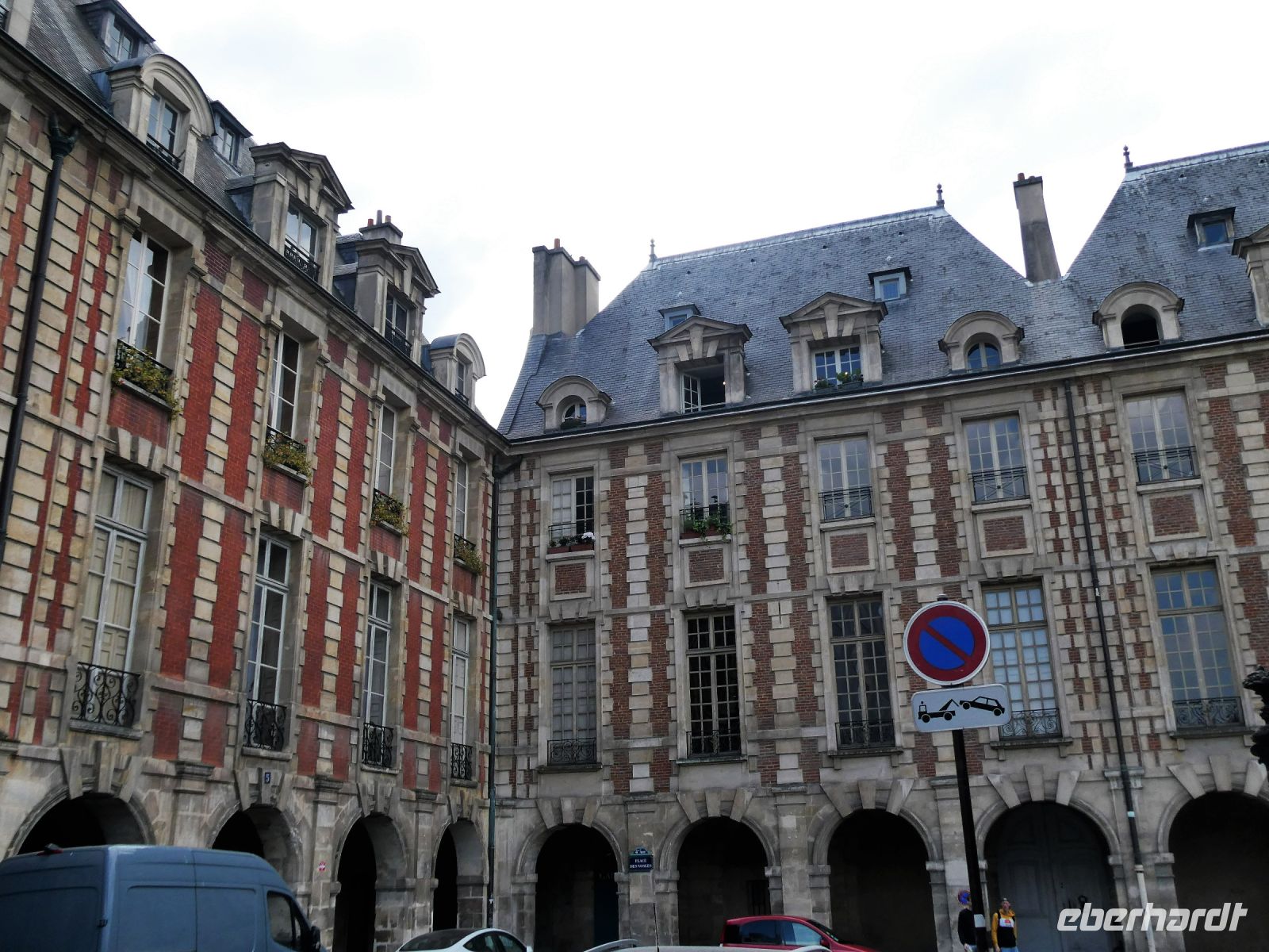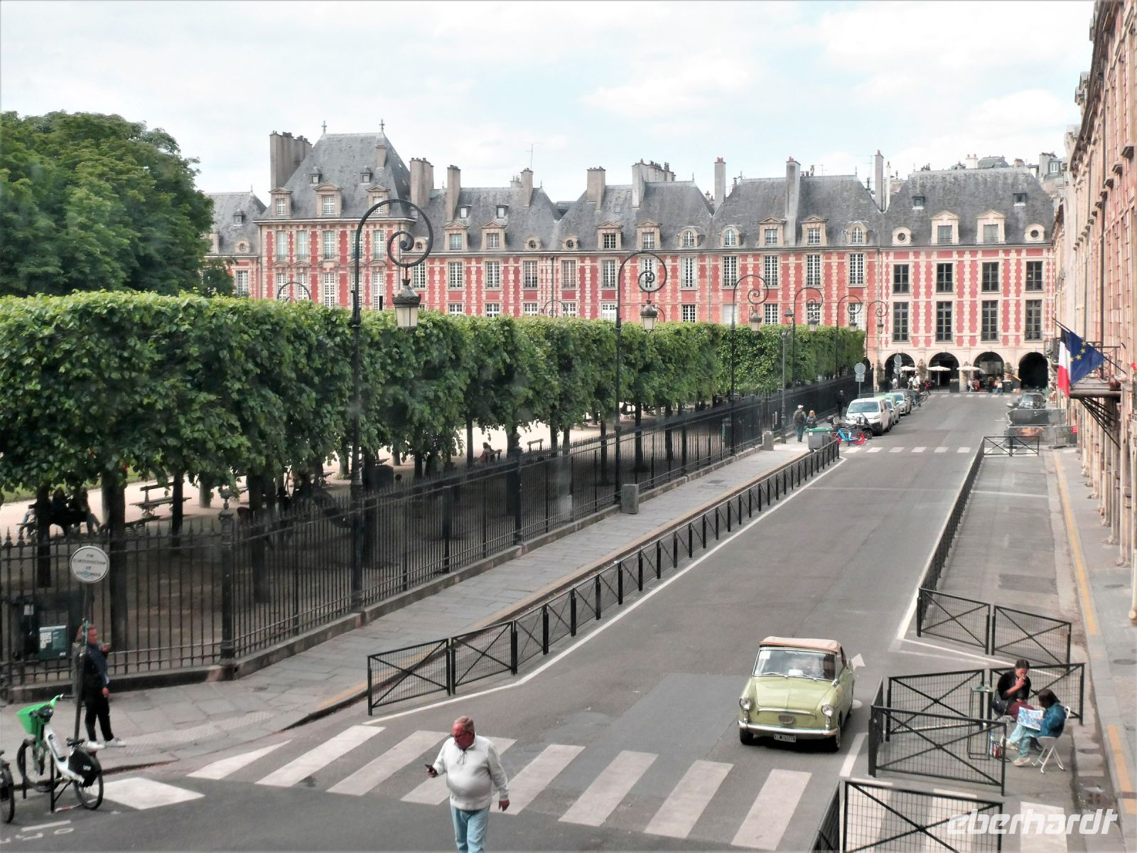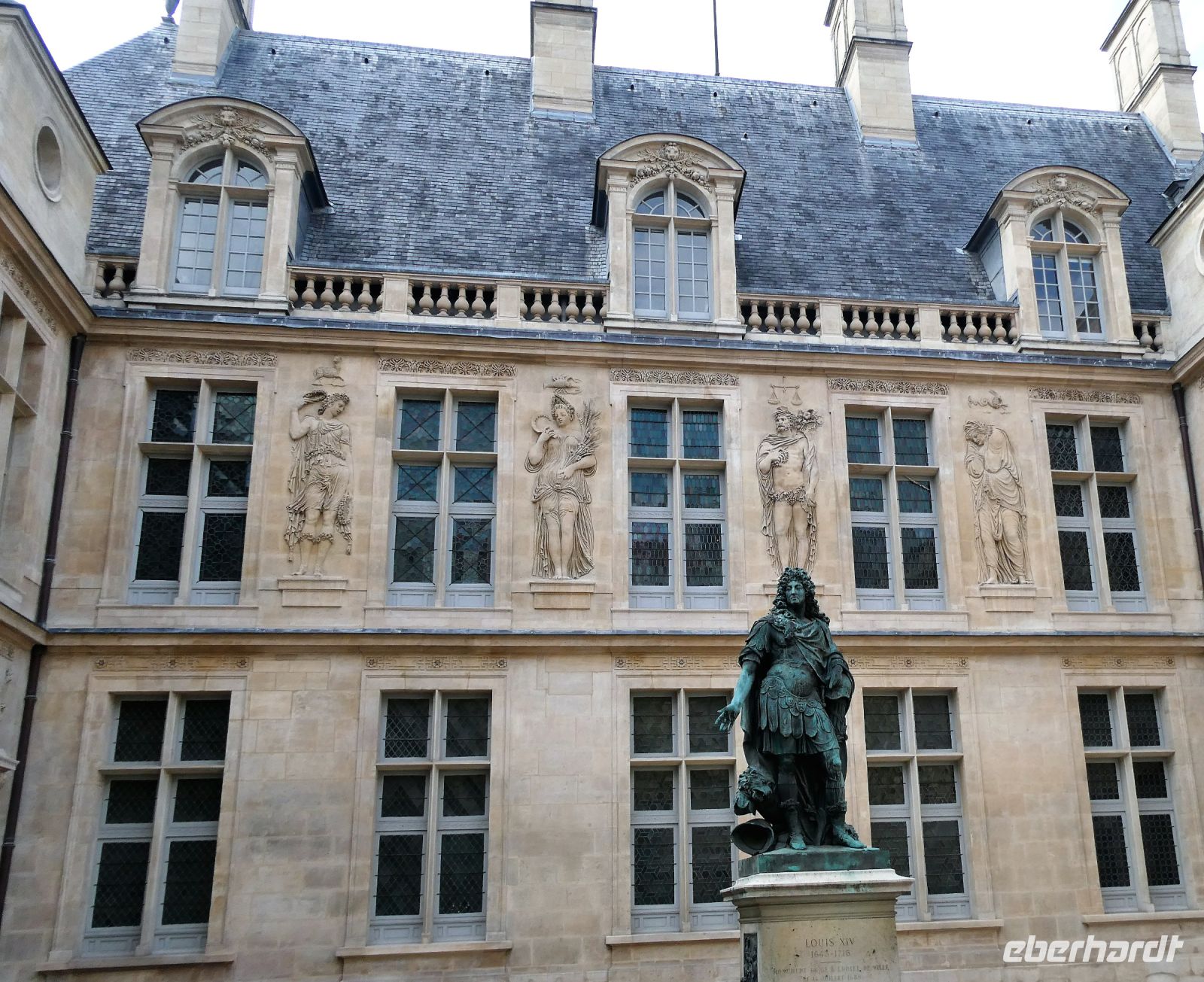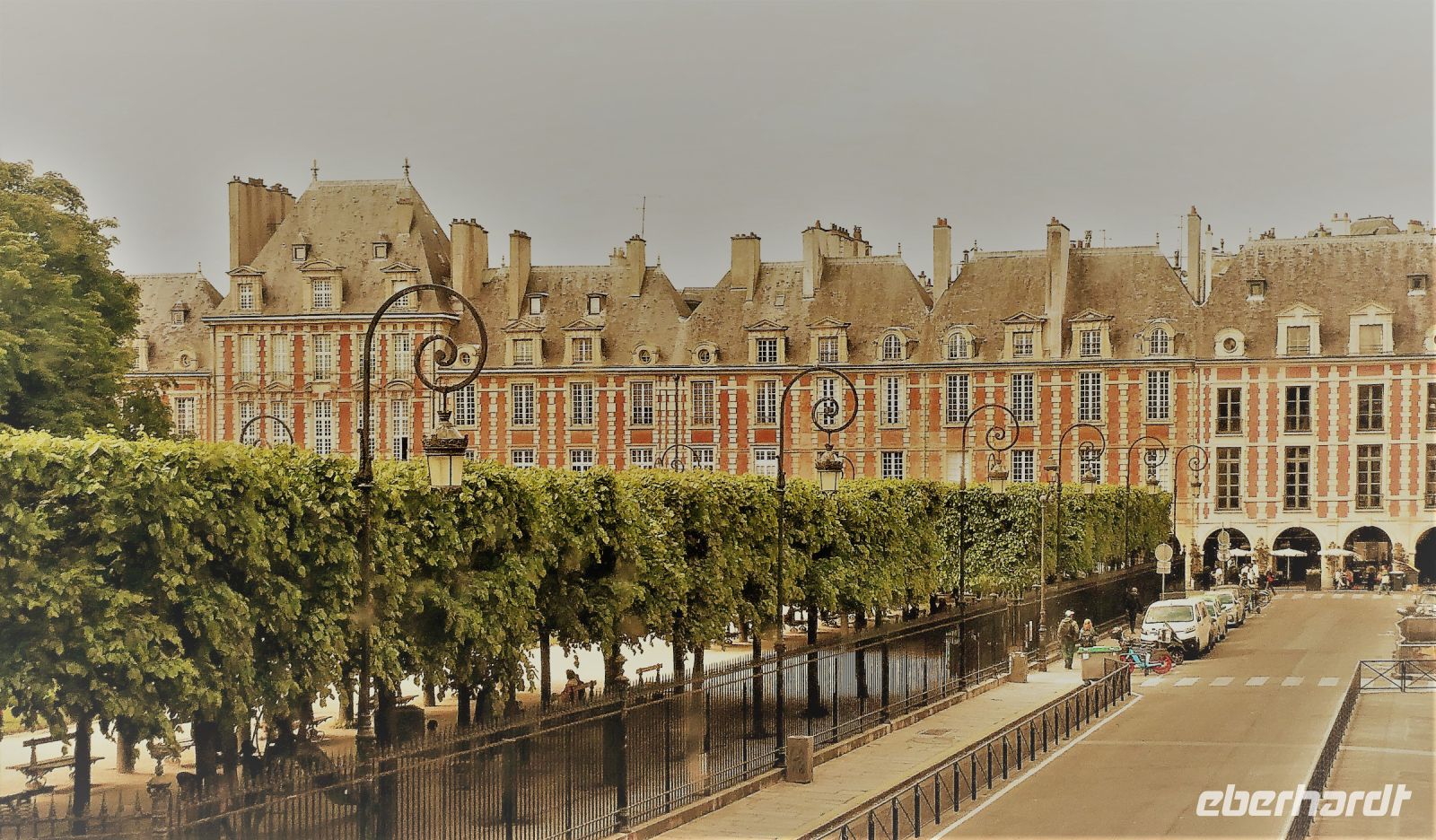 Nach unserem Treffen am Rathaus von Paris spazieren wir weiter in die außergewöhnliche Kirch St.Paul mit ihrer besonderen Orgel. Hier werden heute noch Konzerte veranstaltet. Gerade werden die "Vier Jahreszeiten" von Vivaldi angekündigt. Schade, da werden wir uns schon wieder verabschiedet haben. In Richtung unsere nächsten Ziels streifen wir das "Musée Carnavalet", ebenfalls ein Stadtpalast in dem die Pariser Stadtgeschichte in Bildern und Möbeln eindrücklich dargestellt wird. Im Innenhof grüßt ein Standbild Ludwigs XIV. Durch den Garten des "Palais Sully" gelangen wird zu dem wohl berühmtesten Platz des Marais, dem "Place des Vosges". Hier im Garten fällt auf, dass die Gebäude an manchen Stellen etwas schief sind, sie sind auf Sumpf gebaut. Der "Place des Vosges" ist der älteste Platz in Paris mit einem exakten Maß von 140 x 140 Metern. Die Vogesen hatten im Jahr 1800 die Revolutionssteuer komplett bezahlt (1789 franz.Rev.) und so wurde der Platz nach ihnen benannt. Hier am Platz fand auch der damals schon bekannte Schriftsteller Victor Hugo. Er hatte 1832 seinen ersten großen Erfolg mit dem Roman "Notre Dame de Paris" gefeiert und konnte für sich, seine Frau und seine 4 Kinder hier in diesem noblen Viertel eine Wohnung von 240qm mieten. Bis 1848 dem Jahr der revolutionären Unruhen wohnte er hier. Er war eher den royalisten zugeneigt und ging dann nach Guernsey ins Exil (dort gibt es auch ein Victor Hugo Museum). Das Museum welches anlässlich seines 100. Geburtstags eröffnet wurde zeigt in einer kostenlosen Ausstellung Gegenstände aus seinem Leben. Nach dieser Reise in das 19.Jahrhundert stärken wir uns in dem netten Café des Museums bei einem Gläschen Wein für dem Rückmarsch in das Hotel.