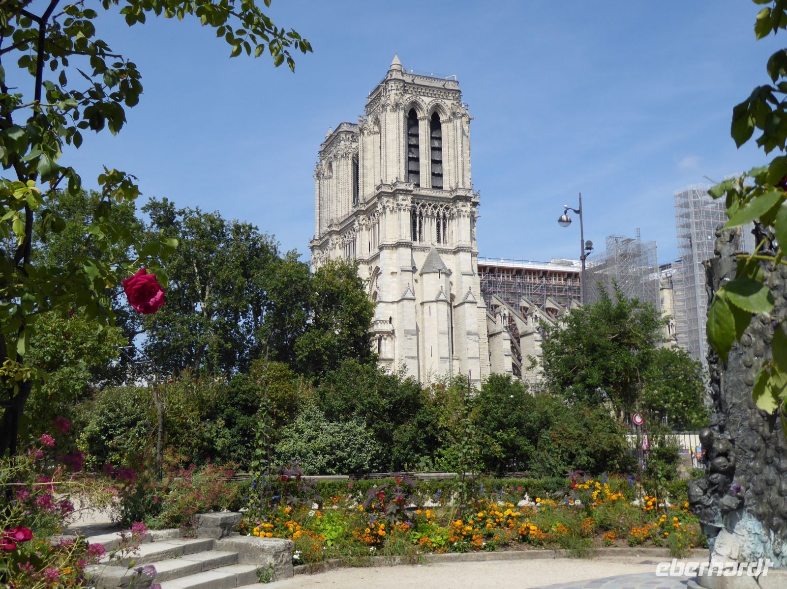 Mit unseren Fluggästen aus Leipzig und Dresden, die mit den Morgenmaschinen der Lufthansa bereits um die Mittagszeit in Paris eingetroffen sind, verabredeten wir uns nach einer kleinen Erfrischungspause in unserem gemütlichen Boutique Hotel Saint Paul im Quartier Latin zu einem ersten Entdeckerspaziergang durch die Viertel des linken Seineufers. Versorgt mit wichtigen Informationen, einem gut lesbaren Métroplan und den Eintrittskarten für die Museumsbesuche waren wir gespannt, was uns in der Stadt in den nächsten Tagen erwarten wird. Froh gestimmt zogen wir bei hochsommerlichen Temperaturen los und stießen bereits wenige Meter von unserem Hotel entfernt auf geballtes Pariser Leben am Boulevard Saint-Michel. An der Kreuzung zum Boulevard Saint-Germain, dem in Ost West Richtung verlaufenden längsten Boulevard der Stadt, befinden sich die Reste einer römischen Therme. Vor 2000 Jahren bauten die Römer in Lutetia, so der antike Name von Paris, diese imposante Badeanlage, die einst die größte ihrer Art nördlich der Alpen war. 500 Jahre später errichteten die Äbte von Cluny an derselben Stelle einen repräsentativen Palastbau, der heute ein Museum für die Kunst und Geschichte des Mittelalters beherbergt. Durch die engen Gassen des Quartier Latins mit seinen pittoresken Restaurants spazierten wir vorbei an den verführerischen Angeboten der Lokale: Üppige Étagèren mit frischen Austern, Spanferkel am Spieß, Froschschenkel, edle Schokoladenkreationen und frisch zubereitete Crêpes suzettes machten neugierig auf die berühmte französische Küche. Vorbei am Theater La Huchette und der Kirche Saint Séverin öffnet sich die enge Straße zu einem schattigen Park. Von dort aus hat man den schönsten Blick auf Nôtre-Dame. Durch einen Rosenbogen fotografieren wir die imposanten Türme der Kathedrale, die im April 2019 einer Brandkatastrophe zu Opfer gefallen ist. Wenige Meter später sieht man das Ausmaß der Schäden an dem Gotteshaus und die riesige Baustelle. Bis zu den Olympischen Spielen in Paris 2024 soll das Bauprojekt abgeschlossen sein… Auf der Spitze der Île de la Cité befindet sich ein wichtiger Erinnerungsort, das Mahnmal für 200.000 im Zweiten Weltkrieg deportierte und getötete Menschen aus Frankreich. Wir setzten unseren Weg fort und spazierte zur Île St. Louis, wo wir uns ein leckeres Eis schmecken ließen. So gestärkt spazierten wir gemächlich zurück zu unserem Hotel. Unterwegs kamen wir vorbei am riesigen Brunnen St. Michel vorbei, warfen noch einen kurzen Blick in das legendäre Restaurant Prokop und ließen kurz vor dem Odéon Theater die pulsierende Zeit der sechziger Jahre wieder aufleben. Erfrischt von einer kühlen Dusche mit den wohl duftenden Pflegeprodukten von Occitane spazierten wir am Abend, mit einem kleinen Abstecher durch den Jardin de Luxembourg und einem kurzen Besuch bei der Freiheitsstatue, zu unserem ersten gemeinsamen Abendessen im Restaurant "La Cuisine de Philipp". Die Küche ist vorzüglich und die leckeren Soufflées würden von uns sofort einen Gourmetstern erhalten! Auf dem Rückweg bewunderten wir noch die seltsam dimensionierte Kirche St. Sulpice, in der Victor Hugo seine Adèle und Heinrich Heine die Schuhverkäuferin Mathilde heiratete. Auch in Dan Browns Roman "Sakrileg" spielt die Kirche eine wichtige Rolle.