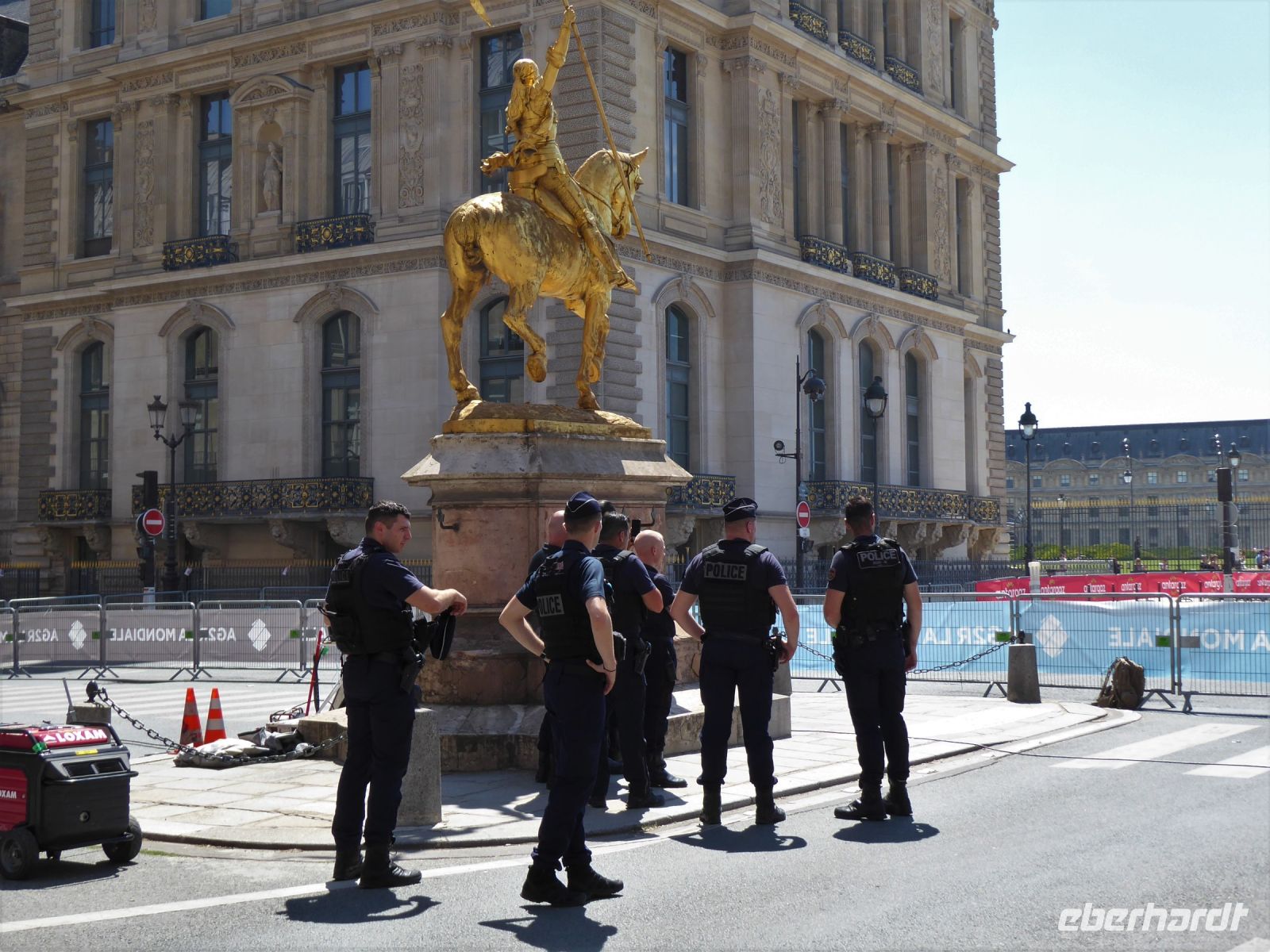 Noch in der gestrigen Nacht sind unsere Nachzügler gut im Hotel angekommen und heute Morgen nun war unsere Reisegruppe komplett. So starteten wir gemeinsam zu einer Stadterkundung zu Fuß und mit der Métro. Schon die wunderschönen Métro Eingänge von Hector Guimard aus dem Jahre 1900 sind sehenswert und der reibungslose Ablauf des U-Bahn Systems, das eines der größten und ältesten der Welt ist, ist überraschend, nutzen doch 1,5 Milliarden Fahrgäste jährlich dieses Nahverkehrssystem. Doch zuerst wollten wir uns die Íle de la Cité noch etwas genauer anschauen. Vorbei an Nôtre-Dame und dem prachtvollen Justizpalast erreichten wir die sogenannte Consièrgerie, die Residenz der französischen Herrscher seit dem neunten Jahrhundert. Während der französischen Revolution diente die Concièrgerie als Gefängnis für bis zu 1200 Gefangene. Auch Marie-Antoinette verbrachte dort die letzten Tage ihres Lebens, bevor sie, als Witwe Capet verspottet, am 16. Oktober 1793, erst siebenunddreißigjährig, auf dem Schafott hingerichtet wurde. Um den ehemaligen Richtplatz, die Place de la Concorde, scharten sich heute wie damals die Schaulustigen. Heute allerdings wegen eines anderen Großereignisses: der Tour de France! Um dem ganzen Trubel zu entgehen, entschieden wir uns, mit der Métro nach Vincennes, ganz ans Ende der Linie 1 zu fahren. Ländliche Idylle umgibt das Château de Vincennes. Der Ort hat gerade mal 50.000 Einwohner. Die Gegend war schon immer ein beliebtes Jagdgebiet der französischen Könige und der hier geborene König Karl V. machte das Schlosses zum Zentrum seiner Verwaltung. 1361 lässt er den Donjon errichten, der mit 50 m Höhe einer der höchsten Wohntürme Frankreichs ist. Auf der Rückfahrt machten wir noch kurz Halt am Gare du Lyon, um das Restaurant „Le Train Bleu“, mit seiner opulenten Fin-de-siècle Ausstattung zu bewundern. Das Restaurant diente in zahlreichen Filmen als Kulisse und lebt von der Geschichte seiner legendären Stammgäste, wie Coco Chanel, Brigitte Bardot, Jean Gabin, Colette, Jean Cocteau und Salvatore Dali. Nach einer entspannten Mittagspause neben dem Palais Royal wagten wir uns Richtung Rue Rivoli und ergatterten mit Charme und Chuzpe einen der begehrten Plätze, gleich beim goldenen Reiterstandbild der Jungfrau von Orléans, wo wir den Rundkurs der Tour de France der Frauen in der ersten Reihe miterleben durften. Mit einem Eis von Angelina in der Hand schlenderten wir weiter zur Place Vendôme, der Topadresse französischer Juweliere und Uhrmacher, an dem sich auch das berühmte Hotel Ritz befindet. Auf der Mitte des Platzes steht die 44 Meter hohe Siegessäule, gekrönt mit er Statue Kaiser Napoleons. Die Tranjanssäule in Rom diente als Vorbild.