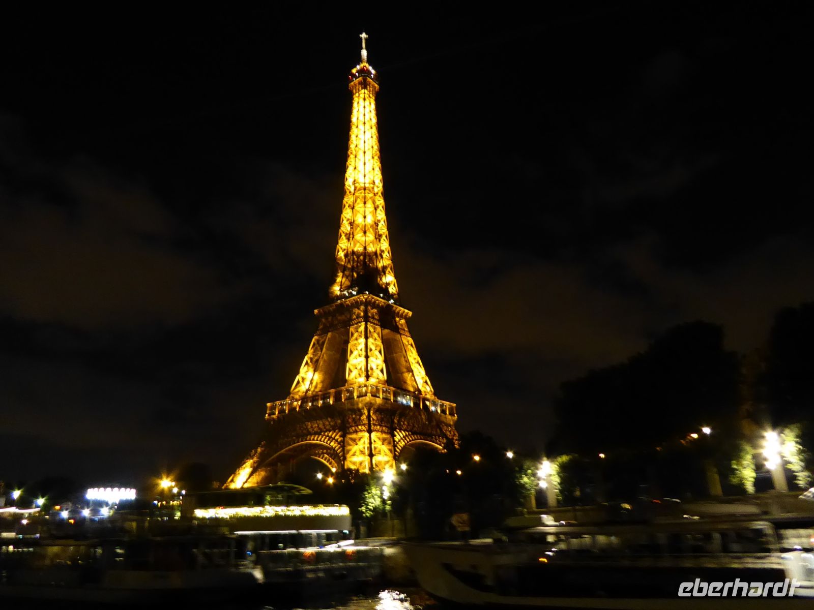 Den Abend verbrachten wir bei einer exklusiven Dinner Cruise auf dem Schiff Diamant der Gesellschaft Bateaux Parisiens. Foie gras de Canard du Sud-Ouest, Escargots et petits pois à la francaise, Coeur de saumon mi-fumé, avocat au piment d´Espelette, pommes vertes et mangue, die Speisekarte liest sich wie ein Gourmet Kochbuch-und das waren erst die Vorspeisen! Begleitet von mehreren Flaschen Chardonnay AOP Corbieres Domaine Georges Bertrand und Chansons, dargeboten von einer jungen charmanten Sängerin, gelitten wir sanft über die Seine, vorbei an den illuminierte Prachtbauten und schlemmten uns durch das festliche Drei Gänge Menü. Pünktlich mit dem Glitzern des Eiffelturms endete die Kreuzfahrt und kurz vor Mitternacht fielen wir erschöpft in unsere Betten. Lang waren die Tage in Paris und unsere Nächte waren kurz!
