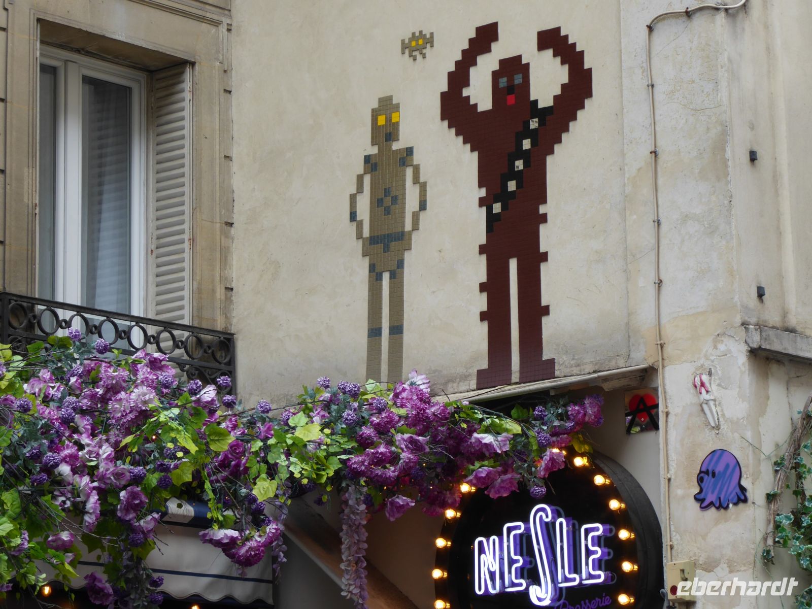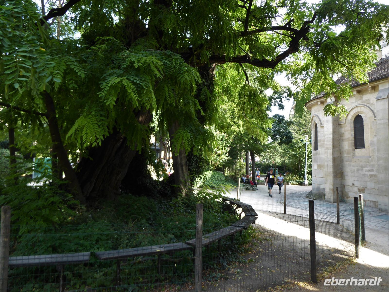 Mit der Métro ging es heute in das berühmte Künstlerviertel auf dem Montmartre. Auf dem Berg thront weithin sichtbar die berühmte Basilika Sacré-Coeur, die sich schneeweiß vom Himmel abhebt. Ihre imposanten Kuppeln scheinen die Anhöhe des immerhin 130 Meter hohen Hügels zu verlängern. Die Vorhalle des Gebäudes wird von zwei monumentalen Reiterstandbildern flankiert: Ludwig IX, der Heilige und Jeanne d´Arc. Nach der Grundsteinlegung im Jahre 1875 vergingen fast vier Jahrzehnte, bis die im neobyzantinischen Stil gebaute Kirche des Architekten Paul Abadie fertiggestellt wurde. Die Wallfahrtskirche wurde erst 1919 geweiht. Wir entschieden uns, zu Fuß zur Basilika hinaufzugehen. Oben wurden wir von einer grandiosen Aussicht belohnt. Bei einem Entdeckerspaziergang durch das alte Dorf Montmartre sahen wir noch die letzten der alten Gipsmühlen und bestaunten den berühmten Weinberg, in dem jährlich gut 350 Liter Wein produziert werden. In den Kabaretts wie dem Lapin Agil, wird noch immer Programm angeboten, das an die gute alte Zeit erinnert, als die heute berühmten Maler hier oben auf dem Berg ein freies, jedoch armes Leben führten. Hier schlug auch die Geburtsstunde des Can-Can: Louise Weber, die legendäre La Goulue, startete in der Mulin de la Galette ihre Karriere als Tänzerin. Ein Mann geht durch die Wand - so lautet der deutsche Titel eines Romans des französischen Schriftstellers Marcel Aymé. Wir sehen ihn oben am Berg, wie er gerade aus einer Wand kommt - eine bizarre Skulptur. Aber die Menschen auf dem Montmartre sind einiges gewöhnt. In einem kleinen Park steht die Statue von Sankt Dionys, dem Bischof von Paris. Er hält sein abgeschlagenes Haupt in Händen. Nach seiner Enthauptung soll er seinen Kopf aufgehoben und ihn sechs Kilometer nach Norden getragen haben an die Stelle, wo er begraben werden wollte. Wir schlenderten weiter durch die zauberhafte Welt der Amelie, entdeckten lustige Streetart Kunstwerke, statteten der großen Sängerin Dalida einen Besuch ab und kehrten in einem kleinen Restaurant ein, wo wir landestypisch leckere, einfache Speisen, wie Croques Monsieur zu einem leckeren Weinchen speisten. Der kleine Park gegenüber der Kirche St. Jean de Montmartre birgt dann noch eine echte Überraschung: eine blau gekachelte Wand, auf der die Kalligraphin Claire Kito eine Idee des aus Paris stammenden Sängers Frédéric Baron umgesetzt hat. In 250 Sprachen liest man dort 300 mal je t´aime - ich liebe dich. Aus gegebenem Anlass gab es dort für uns einen feierlichen Umtrunk, und wir stießen an auf das Wohl unserer Mitreisenden, die heute einen Ehrentag feiern durften. Auf der belebten Place de Tertre herrscht reges Treiben. Künstler und Karikaturisten drängen sich dicht an dicht, dazwischen tänzeln emsige Kellner mit beladenen Tabletts, um Touristen und Einheimische mit Café au Lait, einem Coupe de Champagne oder einem Pichet du Vin zu versorgen. Am frühen Abend erwartete uns ein weiterer Höhepunkt der Reise: das Abendessen nach Wahl auf dem Eiffelturm in luftiger Höhe von 58 Metern. Das Restaurant Madame Brasserie wartete mit leckeren Speisen auf und ein kunstvoll verzierter Nachtisch krönte unser Sterne Menü. Die Aussicht beim Essen ist atemberaubend, die Speisen waren vorzüglich und der Champagner gut gekühlt. So ging unser letzter gemeinsamer Abend schnell vorüber. Voller wunderschöner Eindrücke kehrten wir dem leuchtenden Eiffelturm den Rücken und fuhren zurück in unser Hotel.