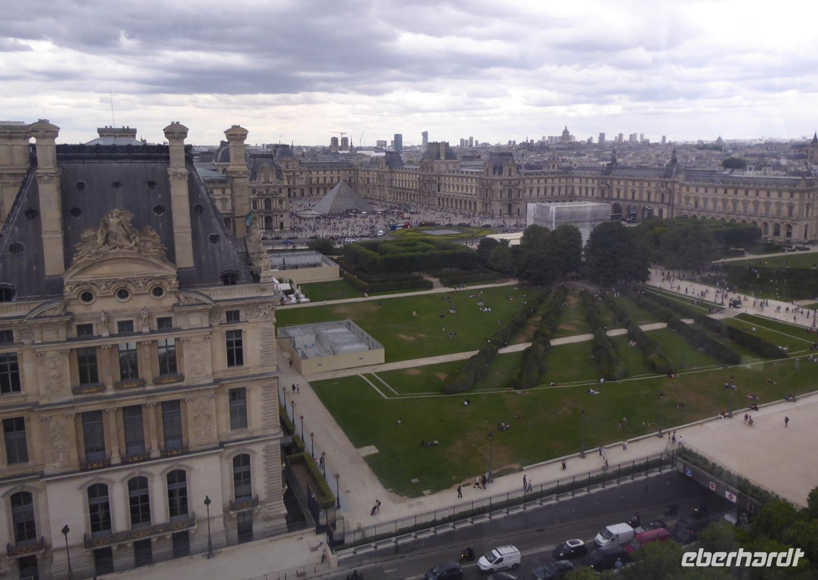 In Paris gibt es eine Vielzahl großer und kleiner Museen. Gut und gerne 180 museale Einrichtungen zählt die Stadt, und jährlich kommen neue dazu. Das bekannteste Museum ist sicherlich der Louvre, in der ehemaligen Residenz der französischen Könige. Von seiner Sammlung von 380.000 Werken sind nur ca. 10 % ausgestellt, darunter die weltberühmte „Mona Lisa“ von Leonardo da Vinci. Ohne Schlange stehen zu müssen, wurden wir direkt durch die Sicherheitskontrolle geschleust und während andere Besucher noch in der Sonne auf Einlass warteten, konnten wir uns schon dem Kunstgenuss hingeben. Obwohl das Museum schon am Morgen brechend voll war, gewährte uns eine freundliche Aufsicht ein paar Sekunden der direkten Begegnung mit einer der rätselhaftesten Frauen der Kunstgeschichte. Was für ein bewegender Moment, kurz alleine das Lächeln der Gioconda genießen zu dürfen. In anderen Abteilungen fristen die Werke berühmter Maler, die weniger in der Publikumsgunst stehen, ein beschauliches Dasein und man kann die Spitzenklöpplerin von Vermeer oder die Anatomie der drei Grazien Cranachs in aller Ruhe betrachten. Wir widmeten uns intensiv den großen Werken der französischen Kunstgeschichte, darunter „Das Floß der Medusa“ von Théodore Géricault aus dem Jahre 1819 und „Die Freiheit führt das Volk“ aus dem Jahr 1830 von Eugène Delacroix. Mit einem kurzen Exkurs zu Jeanne d´Arc, vor dem Historiengemälde von Ingres, beendeten wir unseren gemeinsamen Rundgang und ließen uns von unseren individuellen Interessen durch die weitläufigen Korridor des Museums treiben. Zur Mittagspause gab es einen kleinen Imbiss im Tuilerien Garten. In der Sonne sitzend und auf die künstlich angelegten Wasserbecken schauend, ließen wir uns belegte Baguettes und kleine Törtchen munden. Dann lockte uns das Riesenrad und wir drehten entspannt unsere Runden. Doch ein unvermittelt einsetzender Sturm mit Regen machte die Fahrt zu einem echten Abenteuer! Danach schlenderten wir entlang der Rue Rivoli zur Place Vêndome, dem Terrain der Reichen und Schönen. Rund um die Platzanlage haben sich die teuersten Juweliere und Uhrmacher sowie das Hotel Ritz angesiedelt. Wieder setzte ein kleiner Regenschauer ein und wir eilten vorbei an der Opéra Garnier zum Kaufhaus Lafayette, wo wir zuerst die wunderschöne Glaskuppel aus der Zeit des Jugendstils betrachteten und anschließend von der Dachterrasse aus die gewaltigen schwarzen Wolken beobachteten, die schnell über die Silhouette der Stadt hinweg zogen. Die 360° Aussicht von hier oben ist einmalig. Ein Platzregen mit dicken Tropfen beendete unseren nachmittäglichen Spaziergang. Am Abend kehrten wir ein im legendären Restaurant Polidor, dem Woody Allen in seinem Film „Midnight in Paris“ ein filmisches Denkmal gesetzt hat. Das Lokal befindet sich genau neben unserem Hotel und berühmte Literaten wie André Gide, James Joyce, Ernest Hemingway, Antonin Artaud, Paul Valéry, Boris Vian, Julio Cortázar, Jack Kerouac, Henry Miller, Knut Hamsun und Raymond Queneau waren dort, gleich uns, in netter Gesellschaft bei gutem Essen und viel Wein zu Gast.