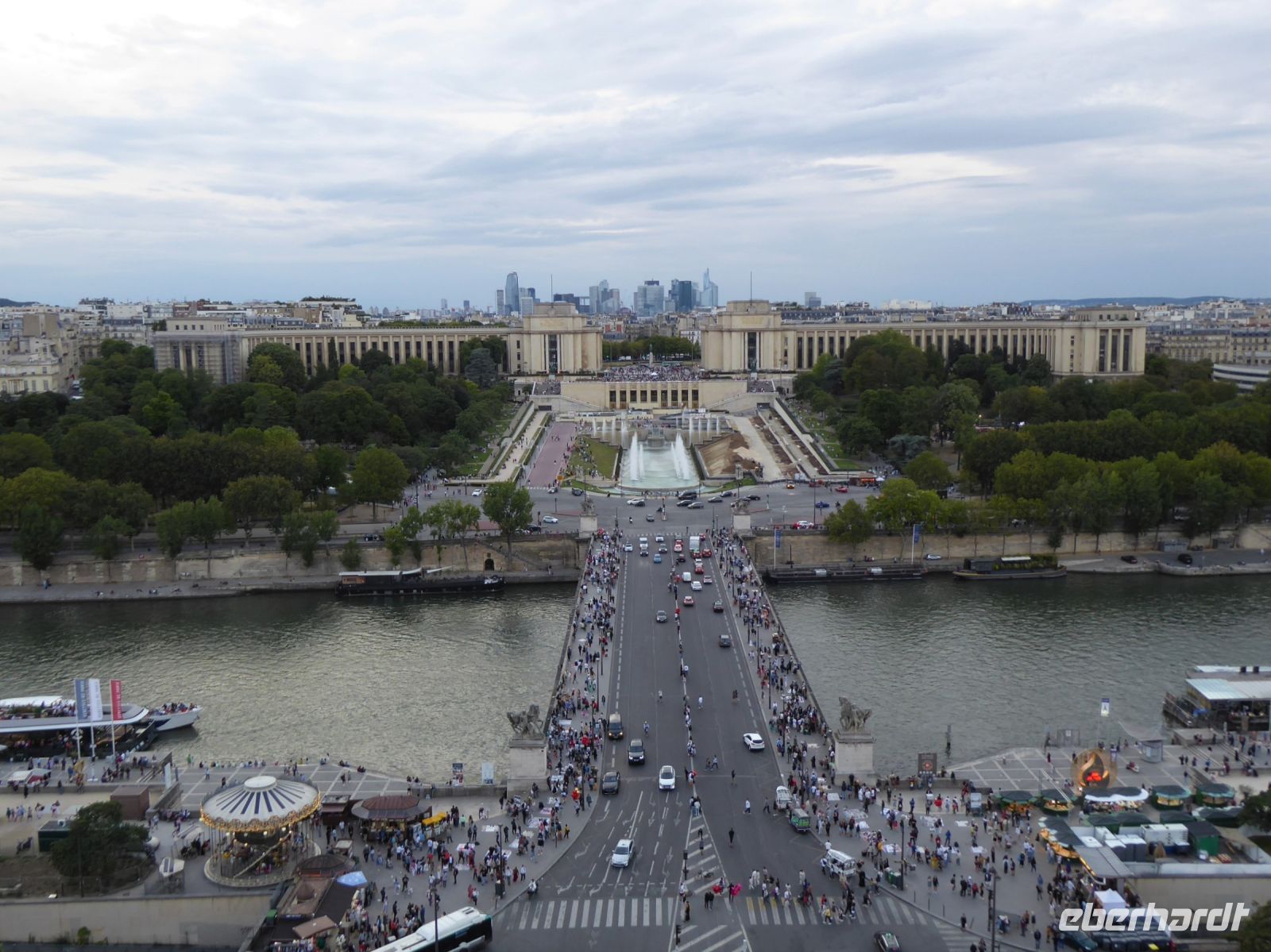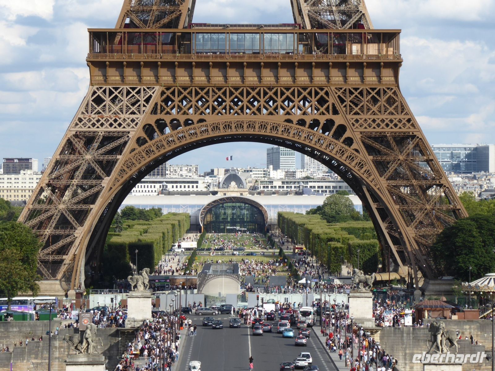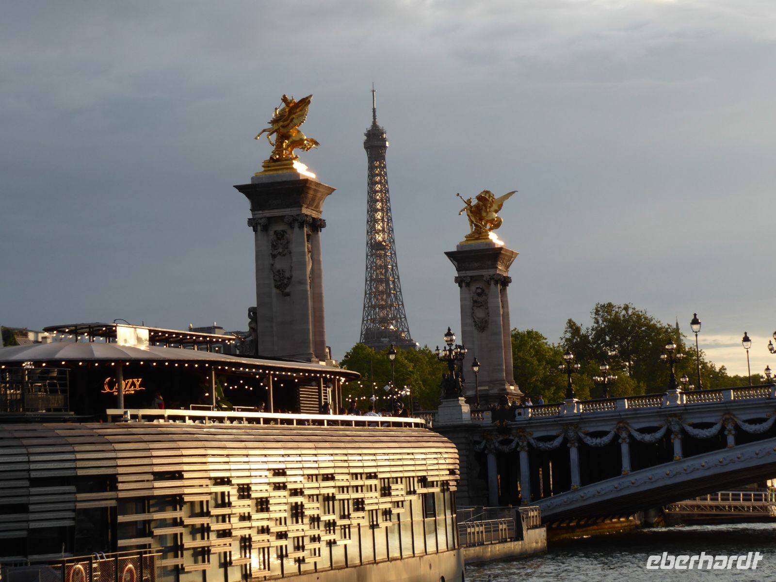 Unser heutiges Besichtigungsprogramm startete gemütlich: mit der Métro Linie 1, fuhren wir direkt zum Arc de Triomphe. So früh am Morgen konnten wir genau von der Mitte der Champs-Élysées unsere Fotos machen. Normalerweise muss man für dieses begehrte Foto lange Schlangen in Kauf nehmen. Für Fußgänger ist übrigens das Überqueren der Ringstraße um das Monument strengstens verboten! Durch die Unterführung kamen wir in die Mitte des Platzes, an dem sternförmig zwölf große Avenuen zusammenkommen. Daher stammt auch der Name des Platzes: Place d´Étoile, Sterne Platz. Seit 1970 heißt der Platz offiziell „Place Charles de Gaulle“. In seinem Zentrum steht der berühmte Arc de Triomphe, ein von 1806-1836 errichtetes Denkmal zu Ehren der siegreichen Schlachten Napoleons. Seit 1921 befindet sich unter dem Bogen das Grabmal des unbekannten Soldaten aus dem Ersten Weltkrieg mit der ewigen Flamme im Gedenken an die nicht identifizierten Toten dieses furchtbaren Krieges. An diesem Ort finden feierliche staatliche Zeremonien statt, Festumzüge paradieren daran vorbei und die jährlich stattfindende Tour de France findet dort ihren glanzvollen Höhepunkt. Das Monument ist Teil der historischen Achse von Paris. Von dem leicht erhöhten Platz sieht man auf der einen Seite über die Prachtstraße der Champs-Élysées das goldene Pyramidon des Obelisken auf der Place de la Concorde und dahinter die Palastanlage des Louvre. Wenfet man sich auf die andere Seite des Bauwerks, schaut man über die Avenue de la Grande Armée und erblickt in ca. 5 km Entfernung die futuristisch anmutende Vorstadt La Défense mit der Grande Arche, einer modernen Interpretation eines Triumphbogens, mit dem sich in den achtziger Jahren der damalige Präsident François Mitterrand ein Denkmal gesetzt hat. Die Métro Linie 1 hat genau unter dem Gebäude ihre Endstation. Beeindruckt von der grandiosen Aussicht, der Architektur und den vielen Kunstwerken, spazierten wir über die Esplanade und ließen uns einen leckeren Café au Lait schmecken. In Paris ist alles einen Tick größer als anderswo, und so ragt auch der Daumen von César Baldaccini zwölf Meter in den Himmel. Daneben finden sich die Monumentalstatuen des polnisch-französischen Künstlers Igor Mitoraj. Unsere nächste Station, Champs-Élysées-Clemenceau, liegt direkt an der Prachtstraße. Auf dem kleinen Platz davor steht eine Statue von Charles de Gaulle, der zum Élysée Palast hinüber blickt. In der anderen Richtung beginnt die Avenue Winston Churchill, die von den beiden zur Weltausstellung 1900 errichteten Ausstellungsgebäuden, dem Grand Palais und dem Petit Palais, flankiert wird. Über die Seine führt der Pont Alexandre III und gleich dahinter erblickt man die gewaltige Kuppel des Invalidendoms, unter der sich der Sarkophag mit den sterblichen Überresten Kaiser Napoleons befindet. Wir statteten dem Petit Palais mit seiner beeindruckenden Kunstsammlung einen Besuch ab, bevor wir wieder zum Hotel zurückkehrten. Am Abend fuhren wir wieder mit der Métro, dieses Mal zum Trocadéro. Von der Plattform aus hat man den schönsten Blick auf den Eiffelturm. Dieser 10100 Tonnen schwere Eisenfachwerkturm hat heute eine imposante Höhe von 330 Metern. Er ist ein Überbleibsel der Weltausstellung 1889. Leider ist man hier oben nicht allein, Touristen aller Herren Länder, Straßenhändler mit bunten Eiffeltürmen im Angebot und bedauerlicherweise auch Taschendiebe bevölkern die Terrasse mit der begehrten Aussicht. Schnell zogen wir weiter hinunter zum Fluss, wo uns am Schiffsanleger bereits die „Étoile“ erwartete, ein Schiff aus der Flotte der Bateaux Parisiens. Freundlich empfangen, wurden wir zu unseren Plätzen geführt und genossen über vier Stunden bei einer herrlichen Kreuzfahrt über die Seine die festliche Atmosphäre und die köstlichen Speisen sowie den leckeren Wein. Eine hübsche Sängerin begleitete unsere Fahrt mit französischen Chansons und internationale Evergreens. Am Ende der Fahrt hob die Freiheitsstatue ihre Fackel in den Himmel und der Eiffelturm glänzte mit unseren Augen um die Wette.