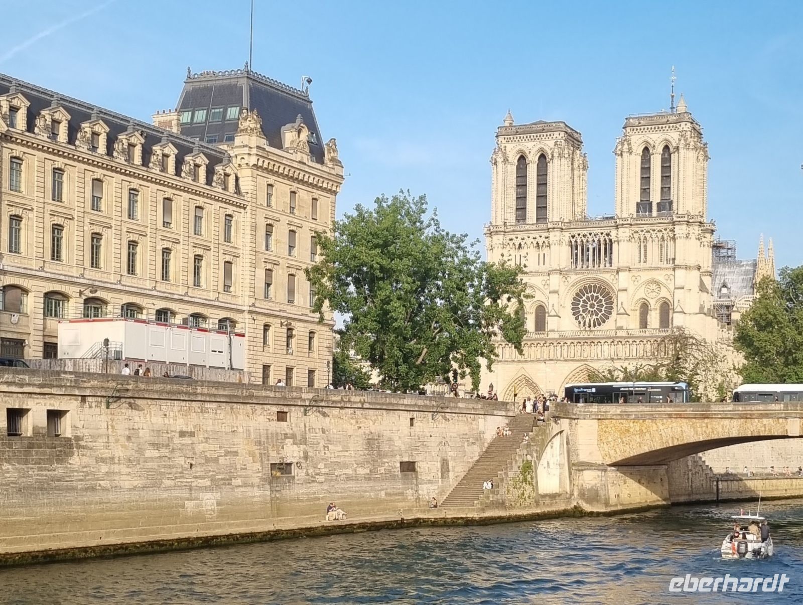 Anschließend gelangen wir ohne Wartezeit direkt in das Innere der wiederauferstandenen Kathedrale, die seit rund 800 Jahren das Gesicht der Hauptstadt prägt. Bei dem verheerenden Brand 2019 stürzte der Vierungsturm und das darunterliegende Gewölbefeld ins Kirchenschiff. Dass bei dem Unglück die Spitzbogenfenster und Rosetten mit den teils noch mittelalterlichen Scheiben, die Dornenkrone Christi als bedeutendste Reliquie der Christenheit und auch die berühmte Madonnenfigur am Vierungspfeiler nicht zu schaden kamen, wird als Wunder angesehen. Dank der Spenden aus aller Welt konnte die Kathedrale nach 5 ½ Jahren Bauzeit, nun hell und strahlend schön, wieder Besucher empfangen.
