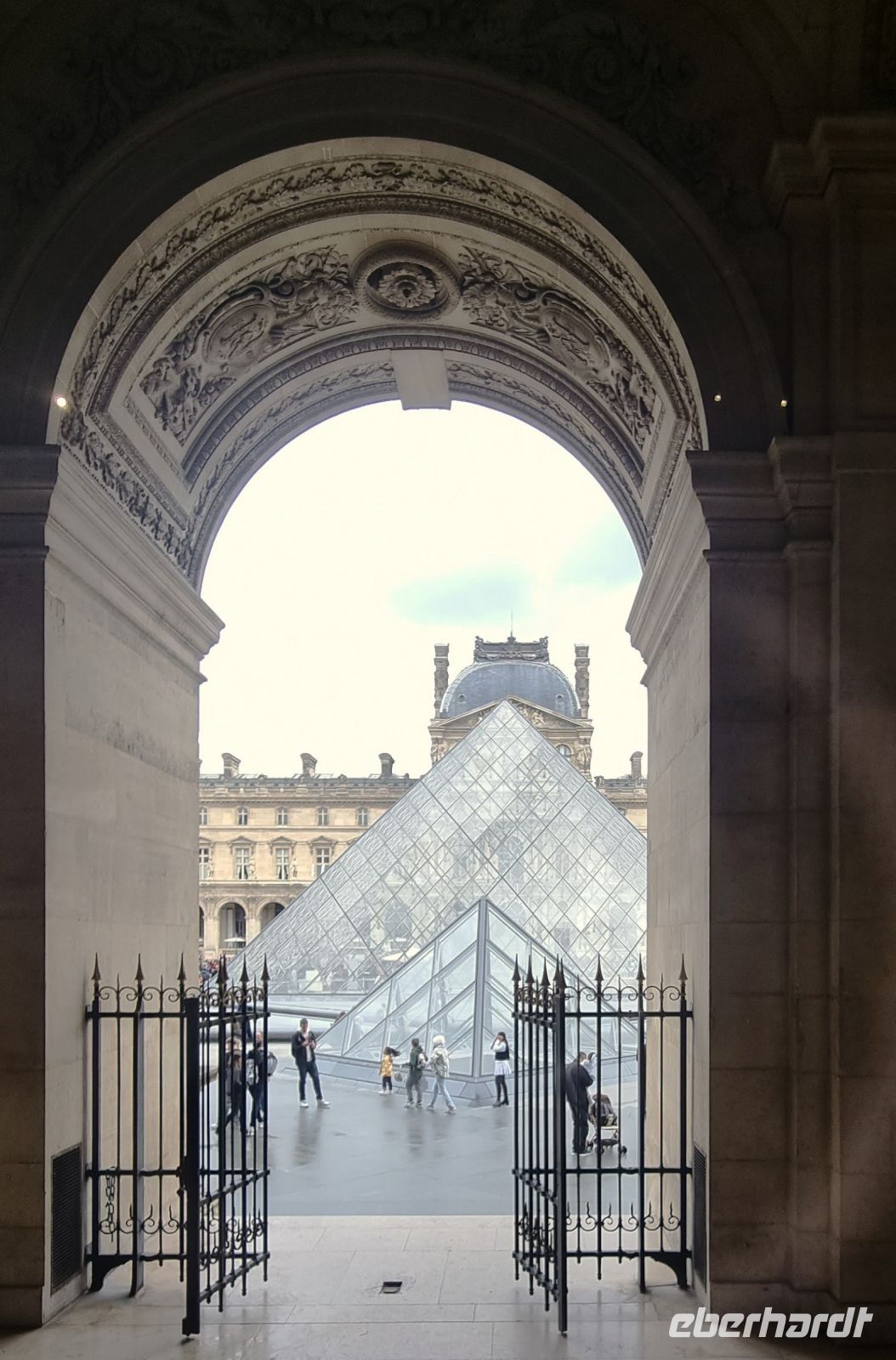 Frisch gestärkt und ausstaffiert mit Kopfhörern erobern wir nun den Louvre, der aus einer Befestigungsanlage heraus zum Schloss entwickelt ungefähr 300 Jahre lang Residenz der französischen Könige war. Zunächst durchwandern wir die Fundamente der mittelalterlichen Burg, bevor wir uns auf die Spur der drei berühmten Frauen des Louvre begeben. Neben der Venus von Milo, der Nike von Samothrake und der Mona Lisa bestaunen wir im Apollo-Saal die Krone Ludwigs XV., ergründen das Geheimnis des Hermaphrodits im früheren Thronsaal und entschlüsseln Veroneses raffinierte Symbolik im größten Gemälde des Louvre. Nach dem skandalösen Schiffbruch der Medusa geleitet uns Delacroix‘ Marianne über die Barrikaden des Juliaufstands wieder hinaus.