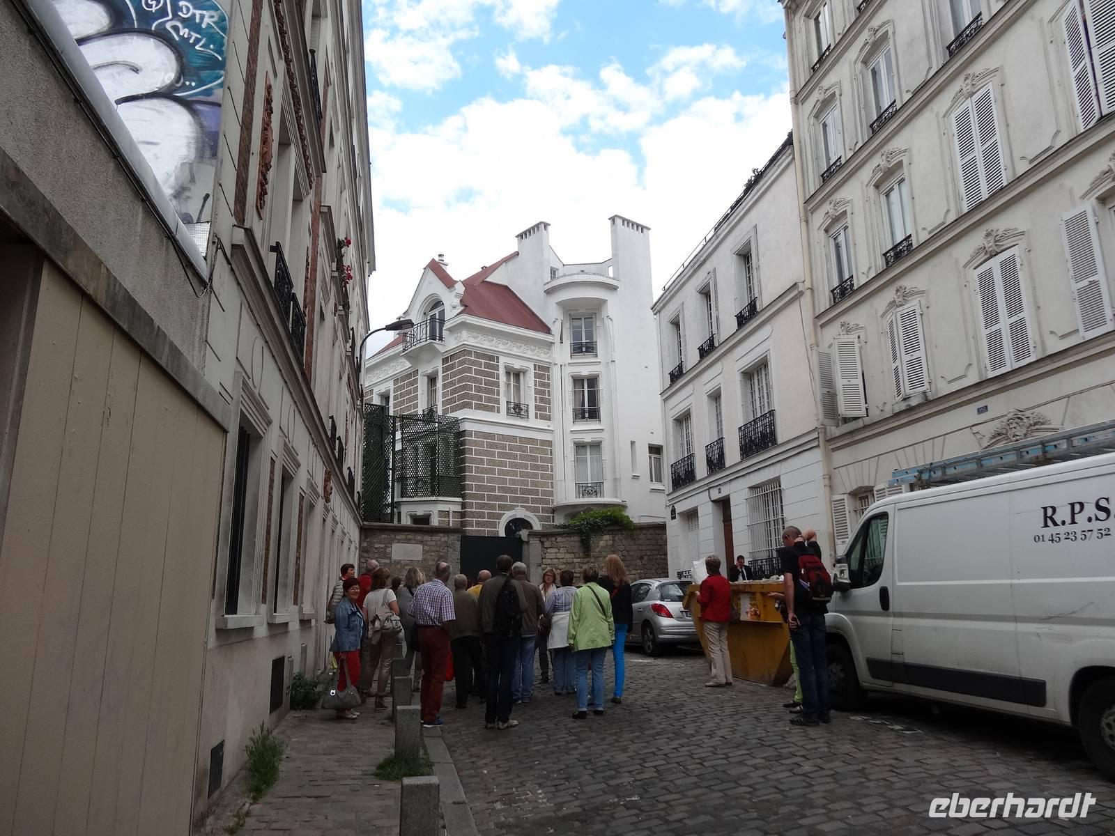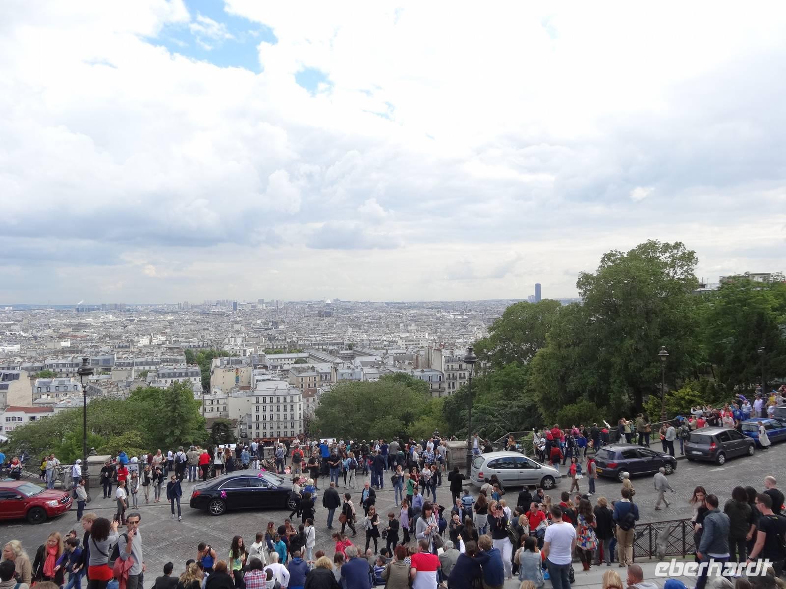 Am Nachmittag begrüßte uns dann wieder die Anna zusammen mit ihrer Kollegin Sabine, um uns das Montmatre-Viertel näher zu zeigen. Dieses ist nicht nur bekannt durch das Moulin Rouge, sondern auch durch die vielen Künstler, die sich dort nieder gelassen haben. Immer bergauf spazierten wir durch das schöne Viertel entlang der Häuserreihen. Am Place du Tertre angekommen, konnten wir einen Blick auf die Arbeiten der Maler werfen, bevor wir dann am Höhepunkt dieses Rundgangs ankamen, an der Basilika Sacré Coeur, die direkt auf dem Montmartre Hügel liegt. Von dort hatten wir auch einen tollen Blick auf die Stadt, sodass sich der Aufstieg definitiv gelohnt hat.