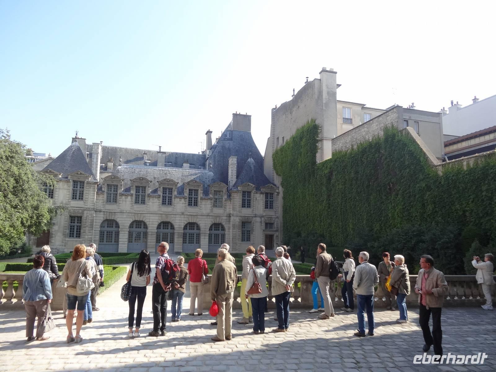Heute Vormittag hatten wir die Möglichkeit, das Marais-Viertel zu besuchen, die auch ungefähr die Hälfte der Gruppe angenommen hat. Marais bedeutet auf Deutsch „Sumpf", der dann trocken gelegt und bebaut wurde. Früher war es das Viertel der Adligen, bevor die Residenz des Königs nach Versailles verlegt wurde. Einige dieser Bauten sind noch erhalten, wie beispielsweise das „Hôtel de Soubise", welches wir von außen besichtigt haben. Heute ist es vor allem als jüdisches Viertel bekannt, und man findet viele jüdische Restaurants sowie Bistros. Des Weiteren sind wir an Konditoreien vorbei gekommen, dessen Kreationen einem das Wasser im Mund zusammen laufen lassen.