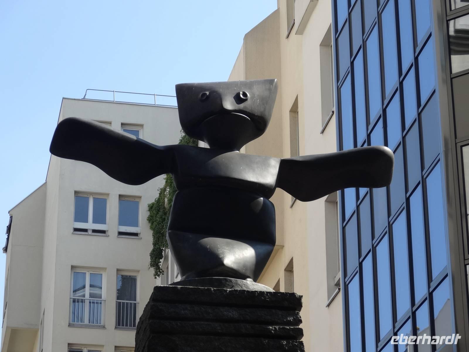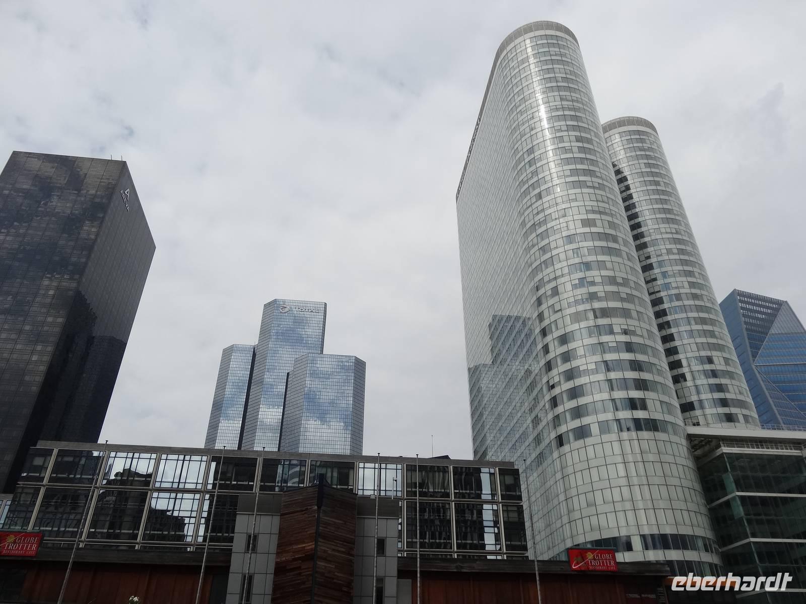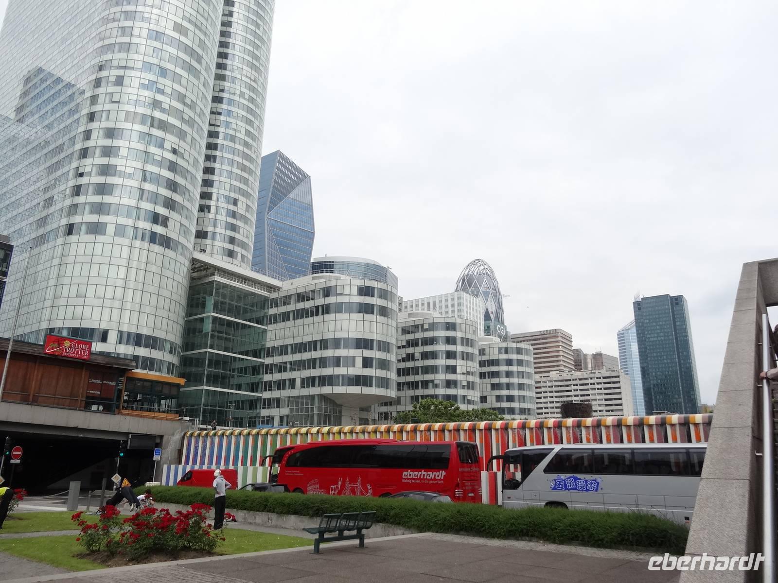 Nach diesem kleinen Ausflug auf dem Wasser trafen wir wieder auf Anna, die mit ca. der Hälfte unserer Gruppe zur 2. Stadtrundfahrt aufbrach, das Ziel war diesmal das Viertel „La Defense". Dieses neu gebaute Büroviertel sticht ab der Pariser Innenstadt. Der neue Triumphbogen, genannt „la grande Arche" ist viermal größer als der Triumphbogen in der Stadt, aber es gibt eine Sichtachse dahin. Bei schönem Wetter kann man dann sogar noch den Obelisk vom Place de la Concorde erkennen.