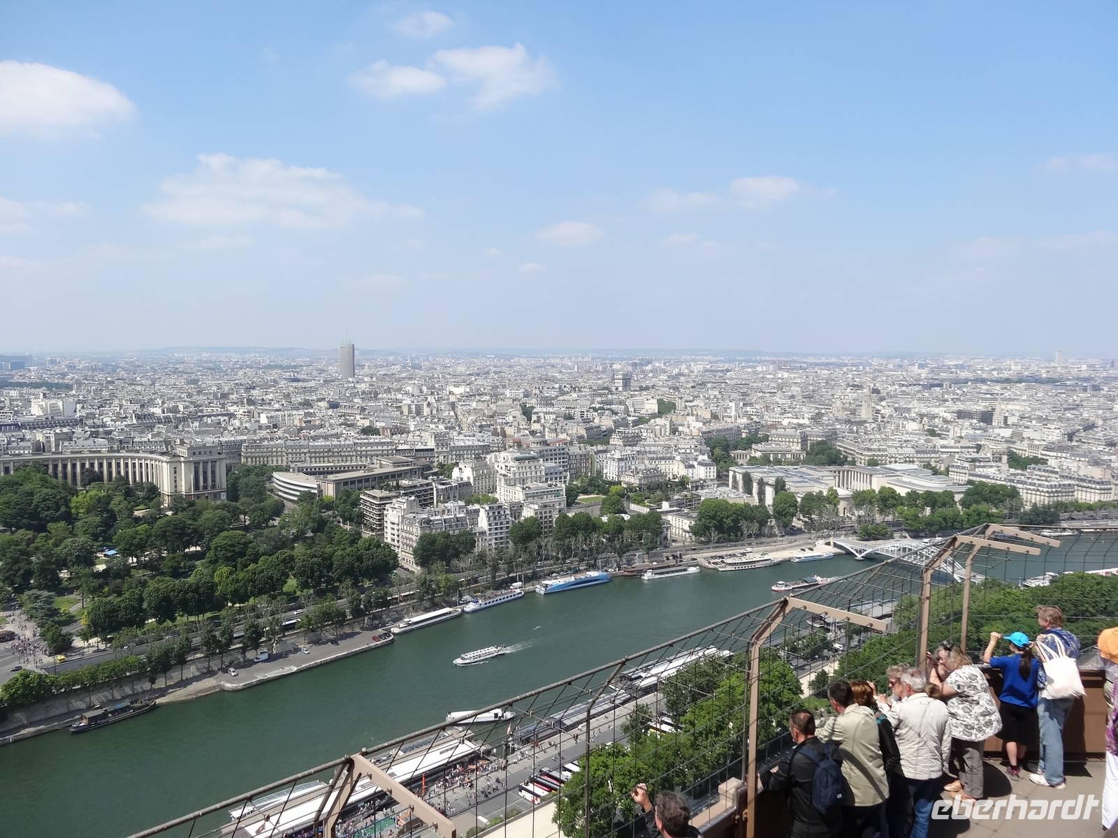 Nach individueller Freizeit hat uns Roy an der Brücke „Pont Neuf" abgeholt und wir sind zum Eiffelturm gefahren. Dort war wie immer sehr viel los, aber dank den vorreservierten Tickets mussten wir nicht lange warten und konnten gleich nach oben. Aber so schnell wie gedacht ging es dann doch nicht, denn an den Fahrstühlen war auch viel Betrieb und wir mussten uns in Geduld üben. Aber als wir dann oben ankamen, wurden wir mit einem tollen Blick über Paris entschädigt.
